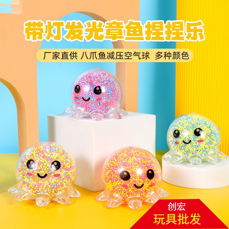 带灯发光章鱼捏捏乐外贸厂家八爪鱼发泄减压空气球TPR玩具批发