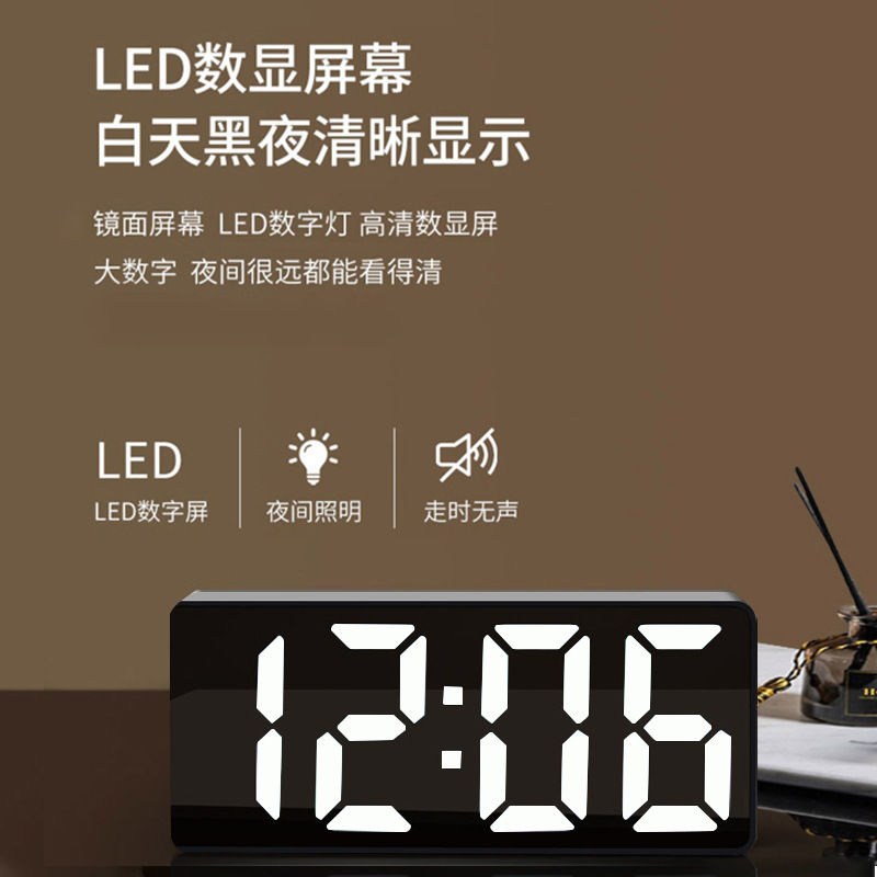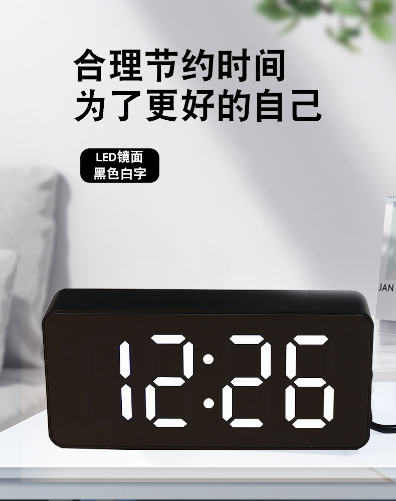 简约led电子钟数字时钟 创意七彩闹钟台式夜光钟表镜面床头钟批发