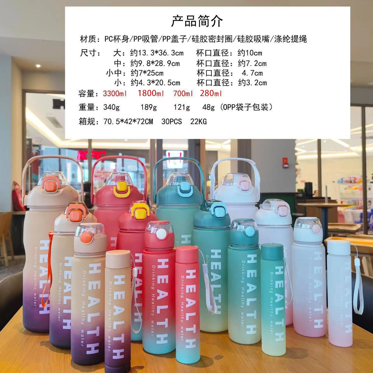 超大容量四件套户外运动吸管水杯情侣母子便携太空杯塑料大水壶