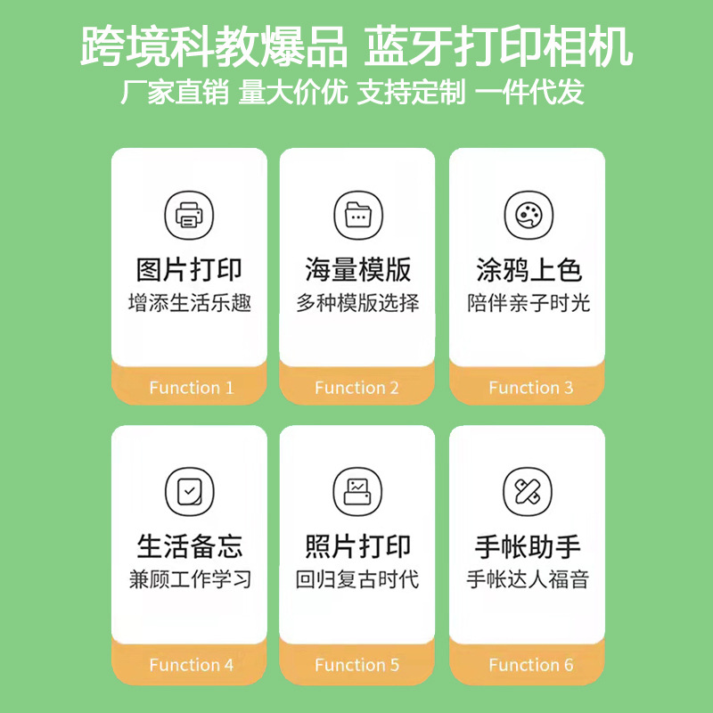 ④内置800MAH电池,可持续拍照2000张,连续打印50分钟