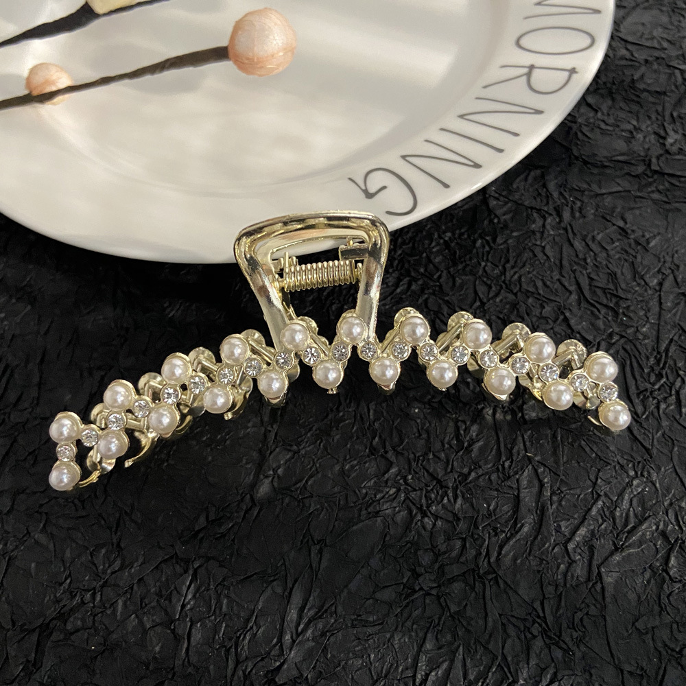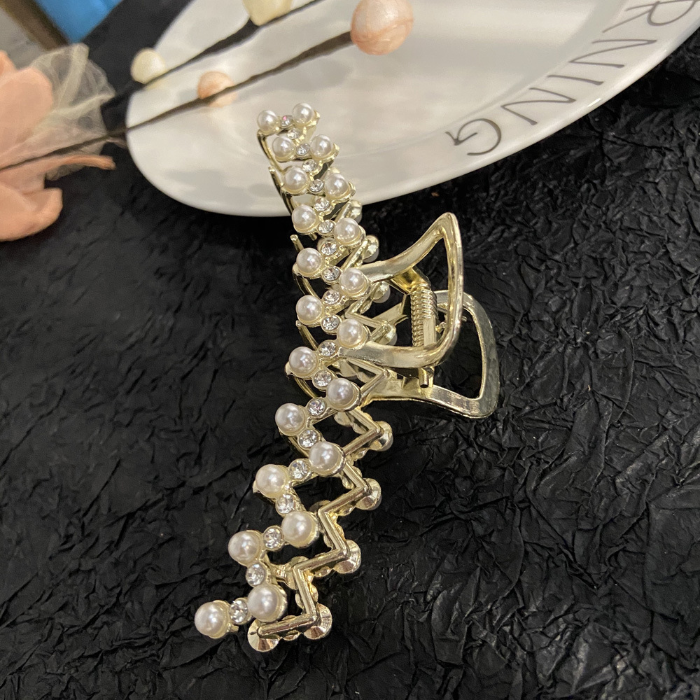 珍珠鲨鱼夹女 网红珍珠盘发抓夹几何发抓