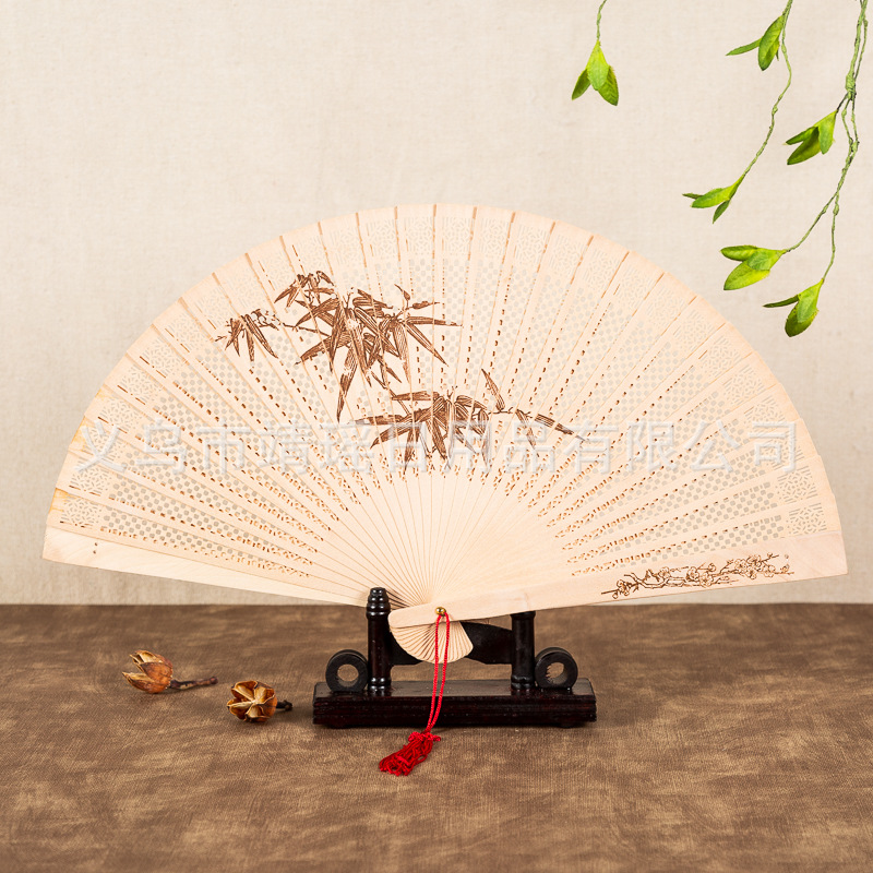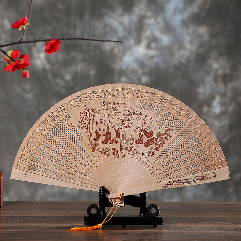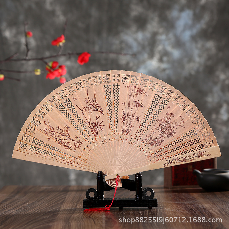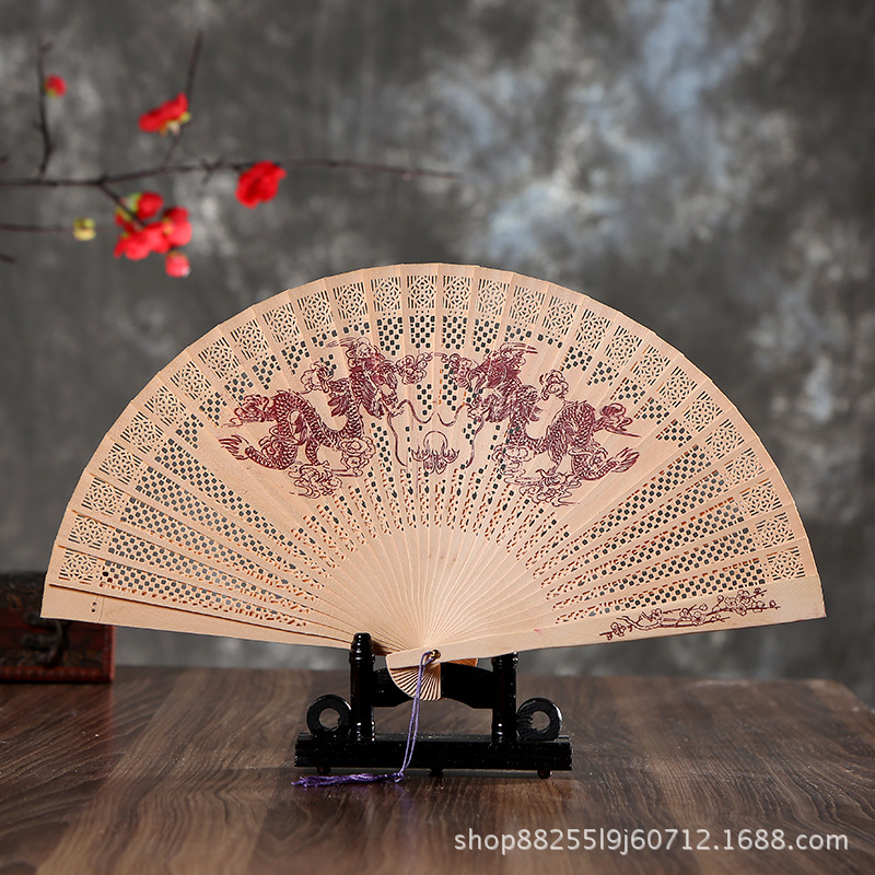 新款礼盒香木扇雕刻双面镂空折叠扇中国风古典女士文艺扇厂家直销