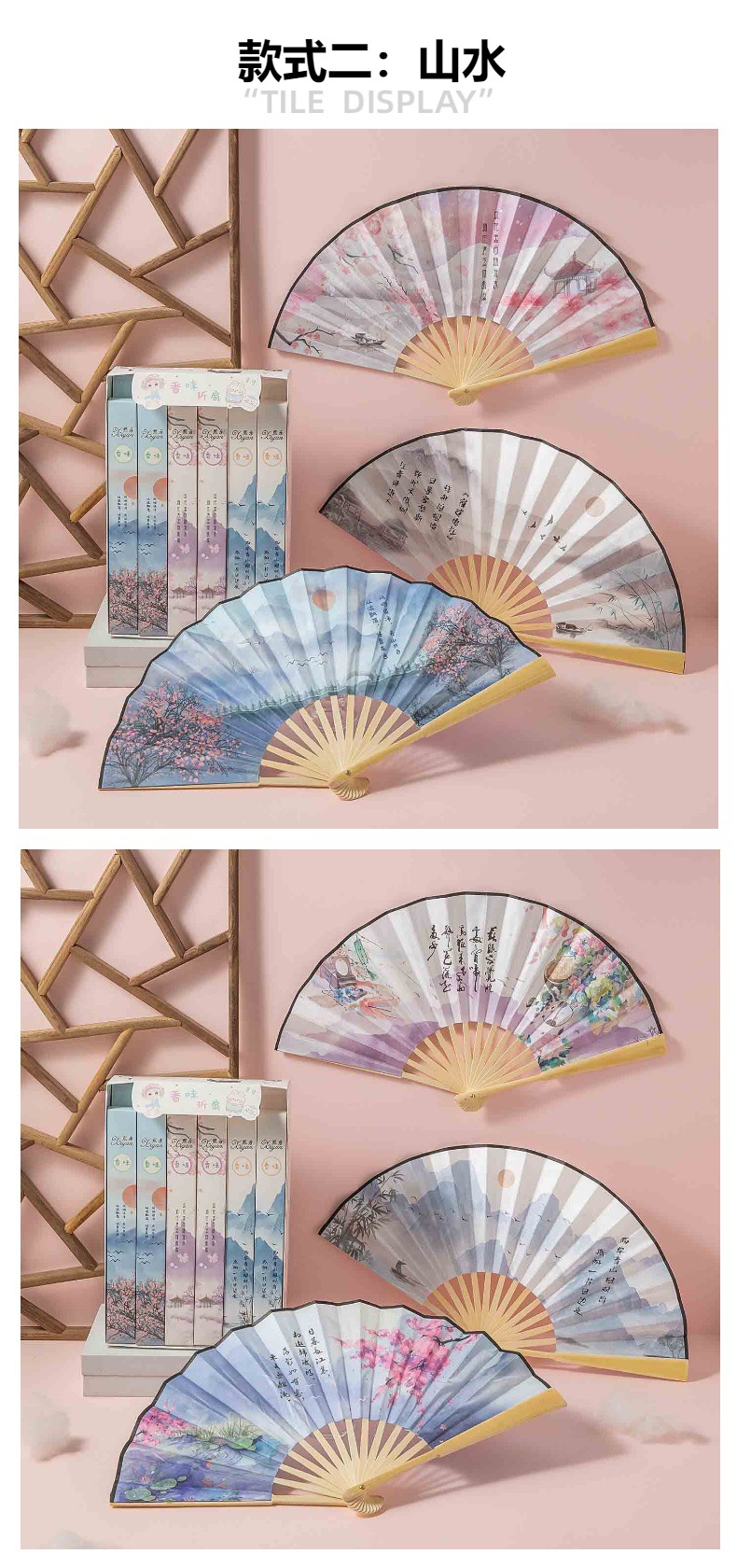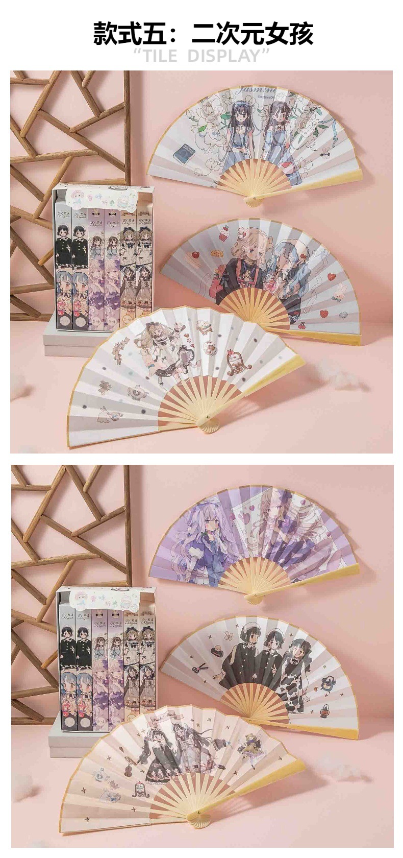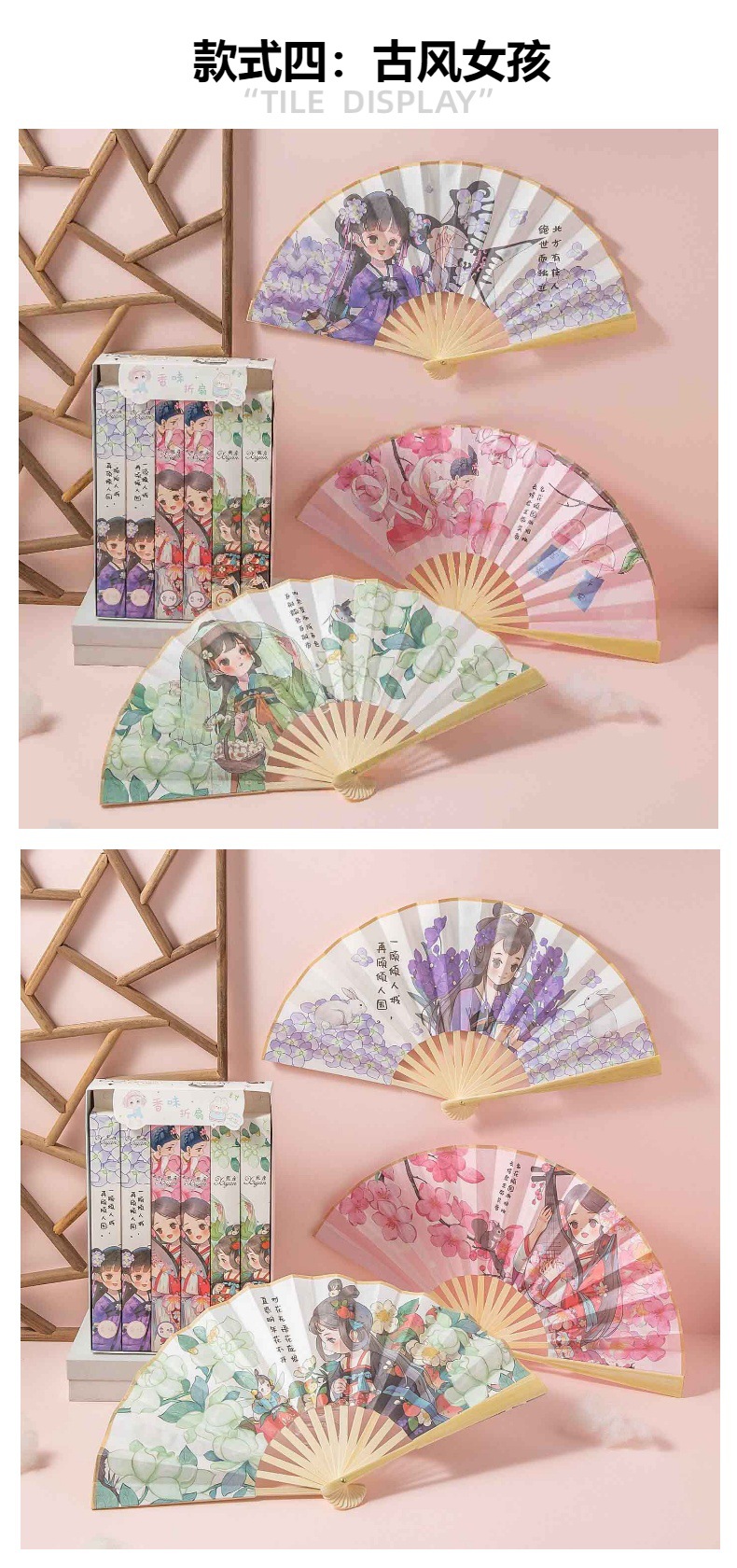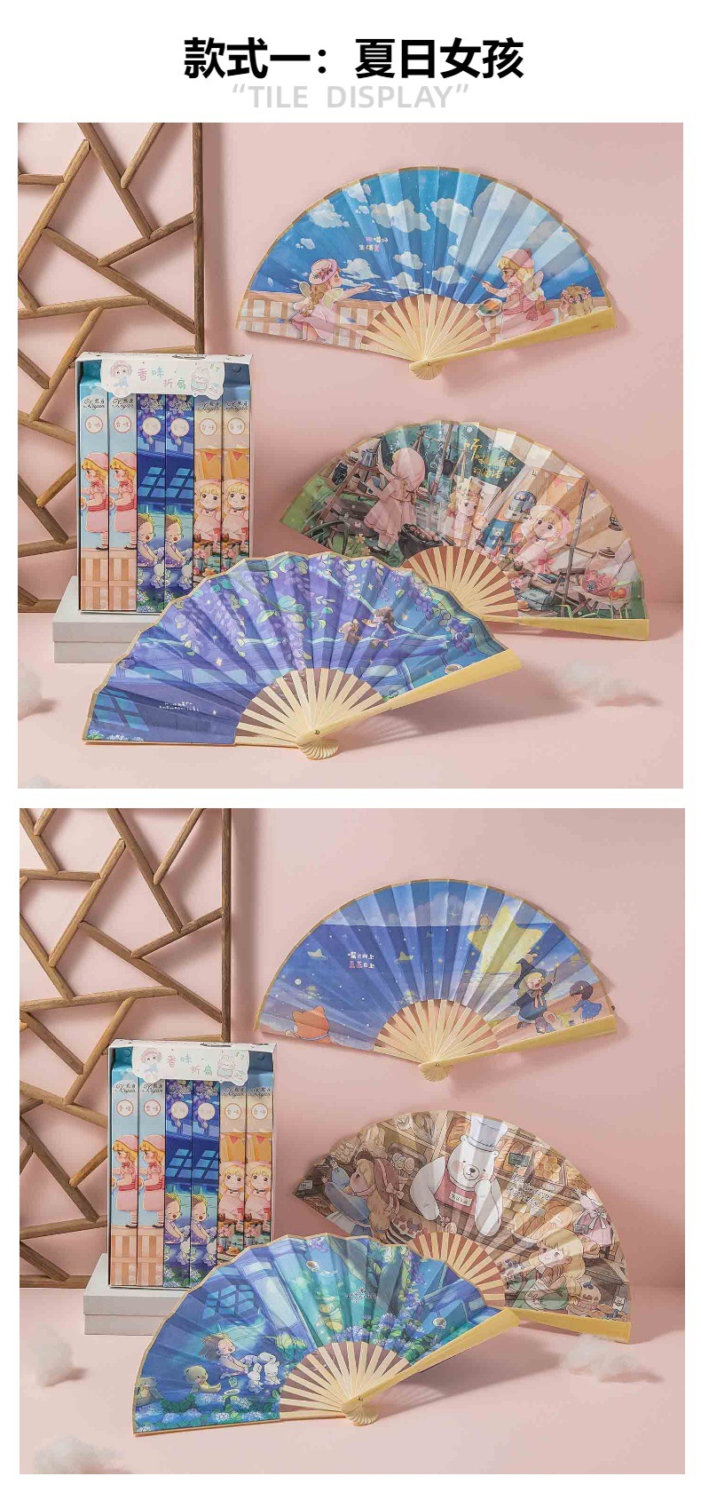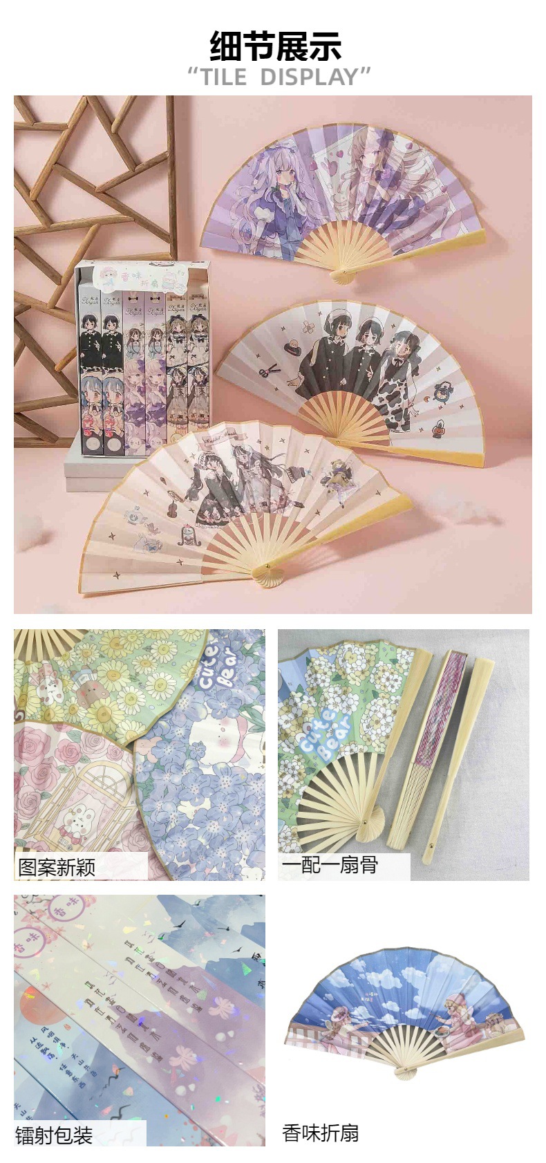 8寸卡通折扇古风女孩学生扇子批发双面绢布动漫扇子香味折扇夏