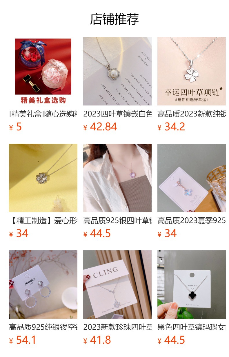 高品质夏季新款四叶草满钻镶锆石项链925纯银饰品ins网红吊坠颈链