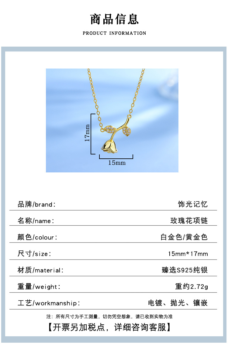 银杏树下S925纯银玫瑰交响项链女女简约闪钻微镶设计感锁骨链女