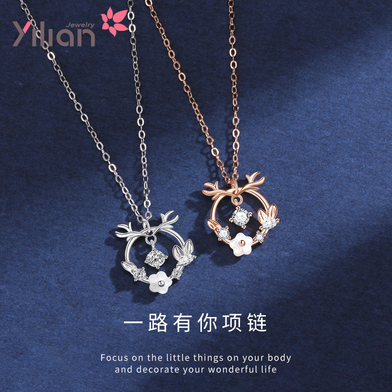 999纯银项链女双圈银饰吊坠小众设计感配饰简约轻奢气质爆款批发