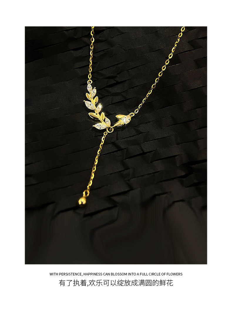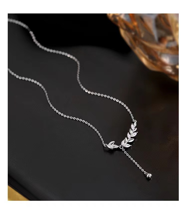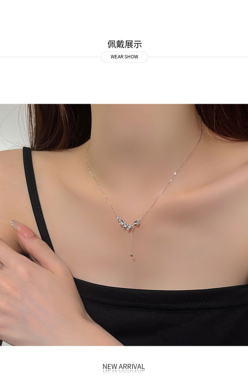 S925纯银小清新树叶流苏项链气质轻奢感麦穗颈链网红银饰锁骨链潮