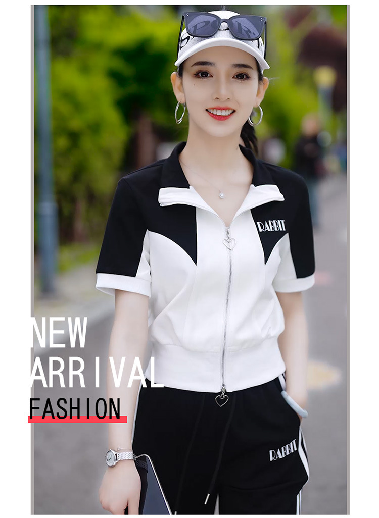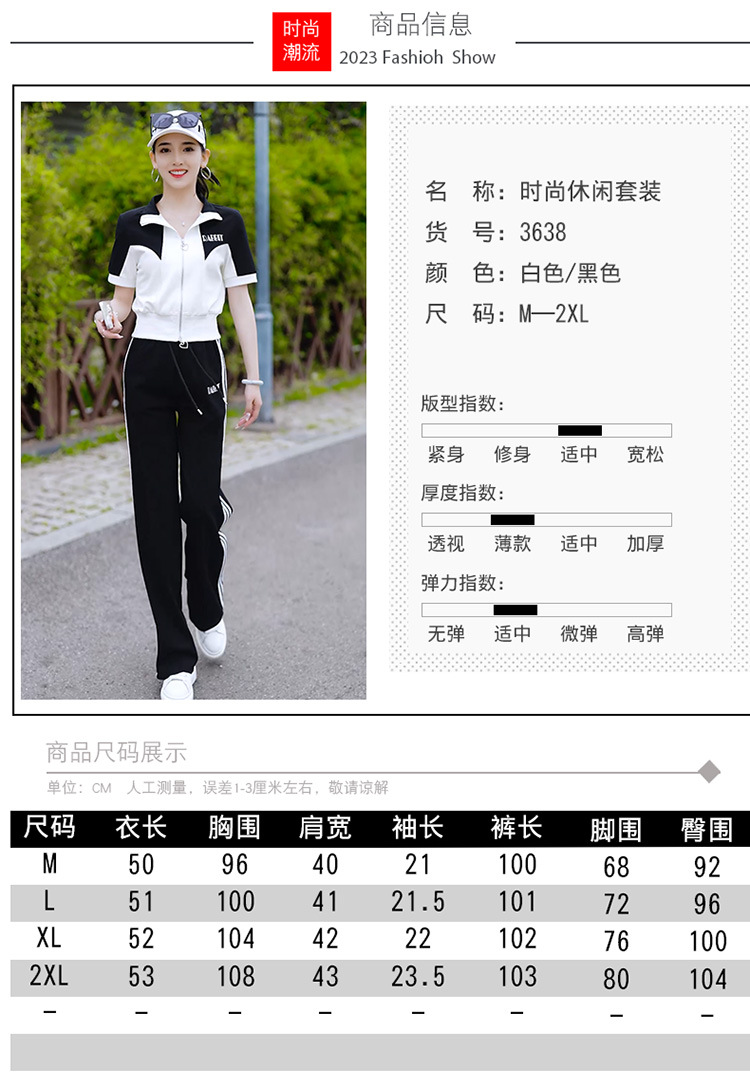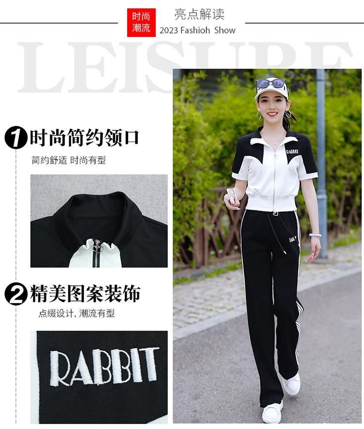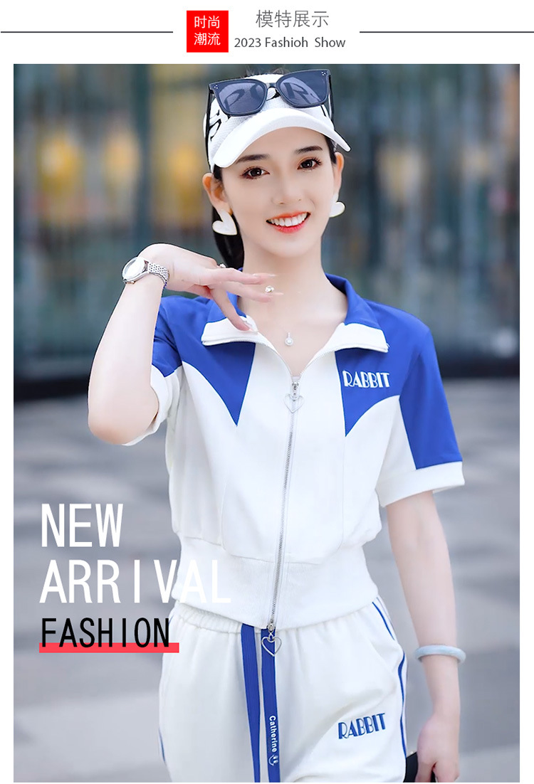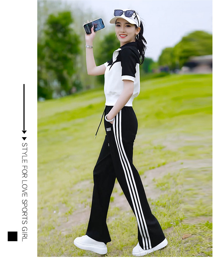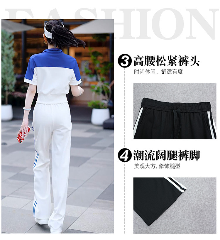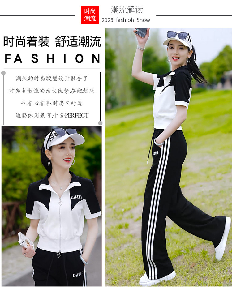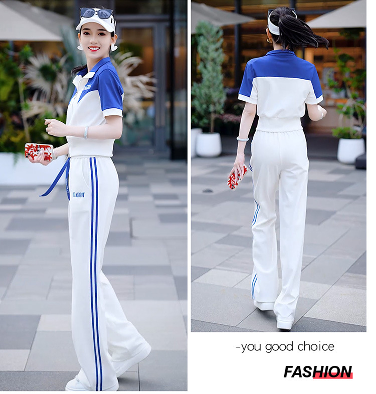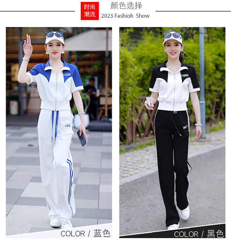休闲运动服套装女夏2023新款气质收腰显瘦小个子时尚阔腿裤两件套