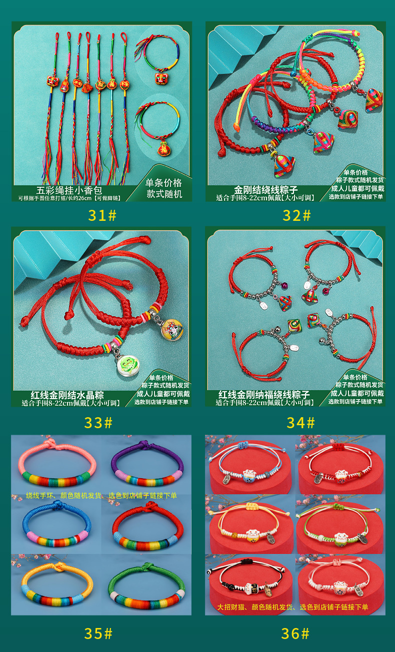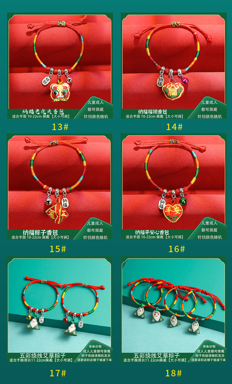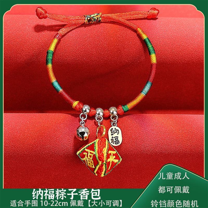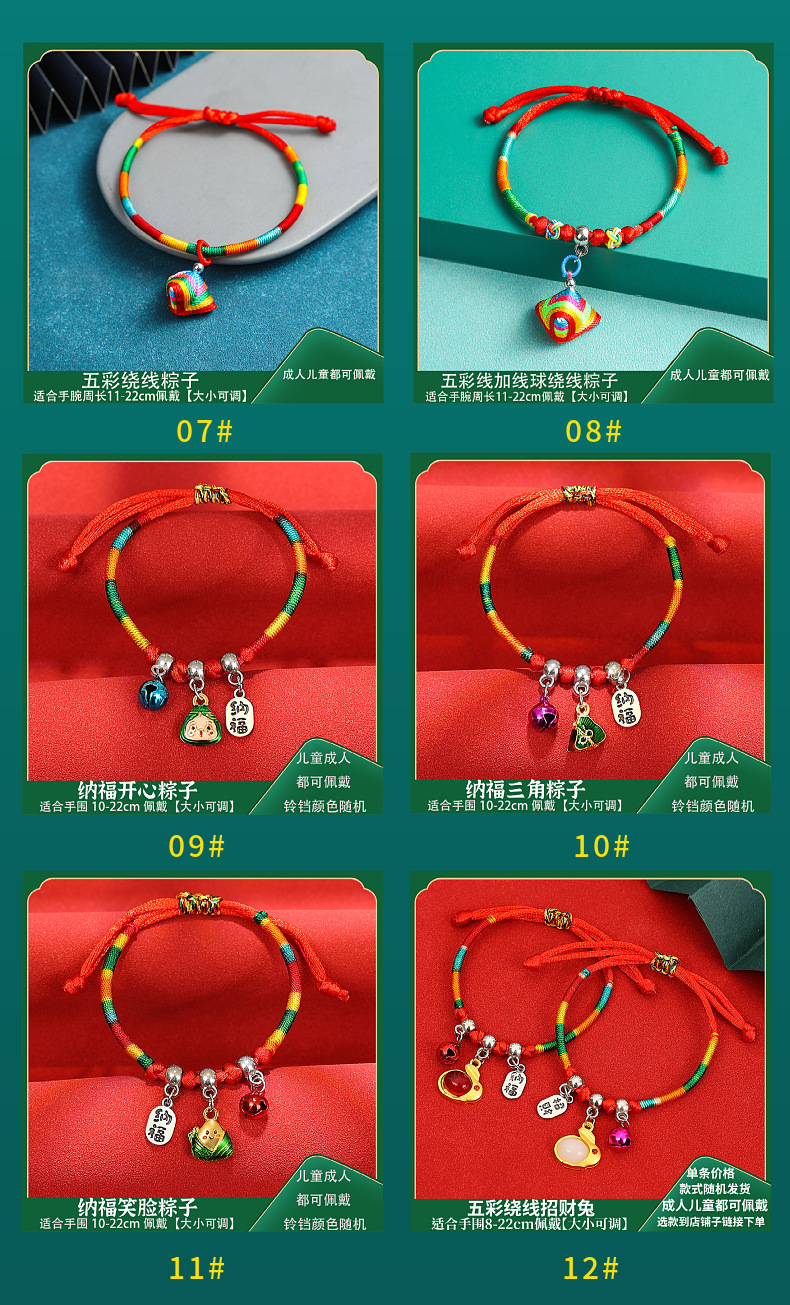 端午节五彩绳小粽子手链民族风手工编织儿童宝宝纳福老虎香包手绳