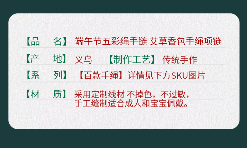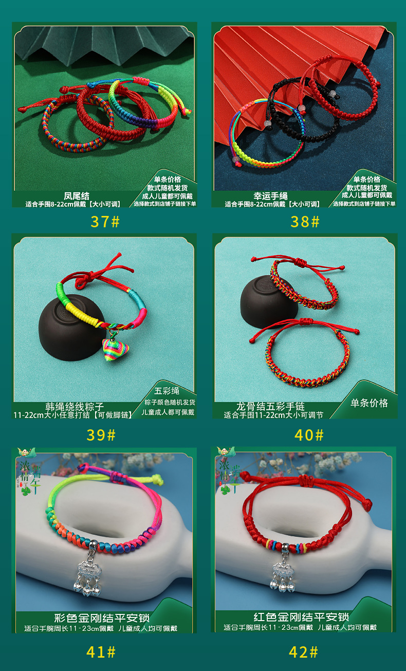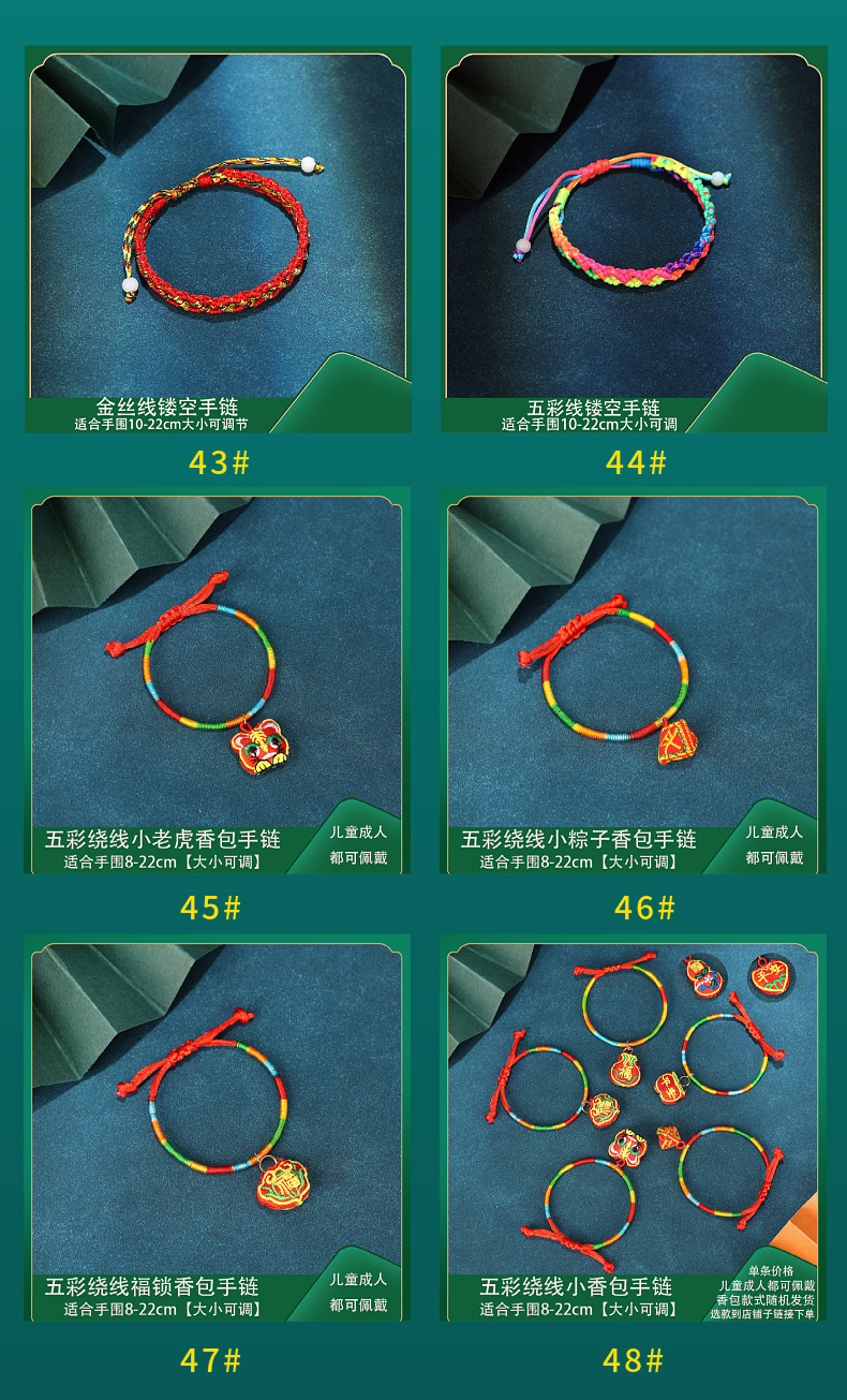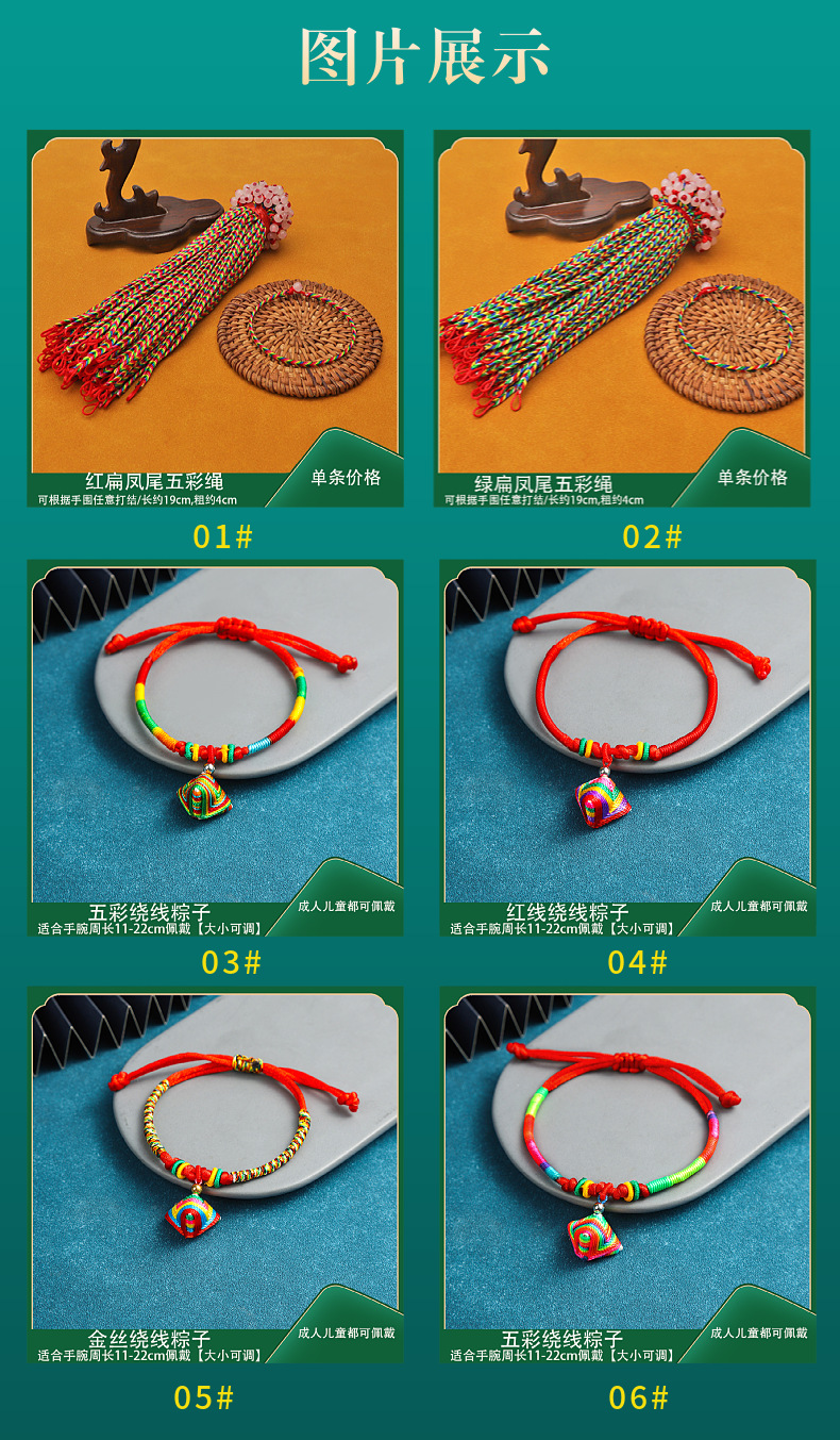 端午节五彩绳小粽子手链民族风手工编织儿童宝宝纳福老虎香包手绳