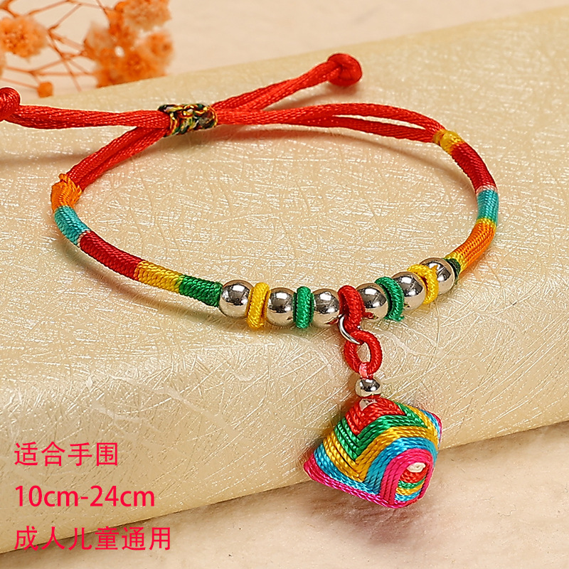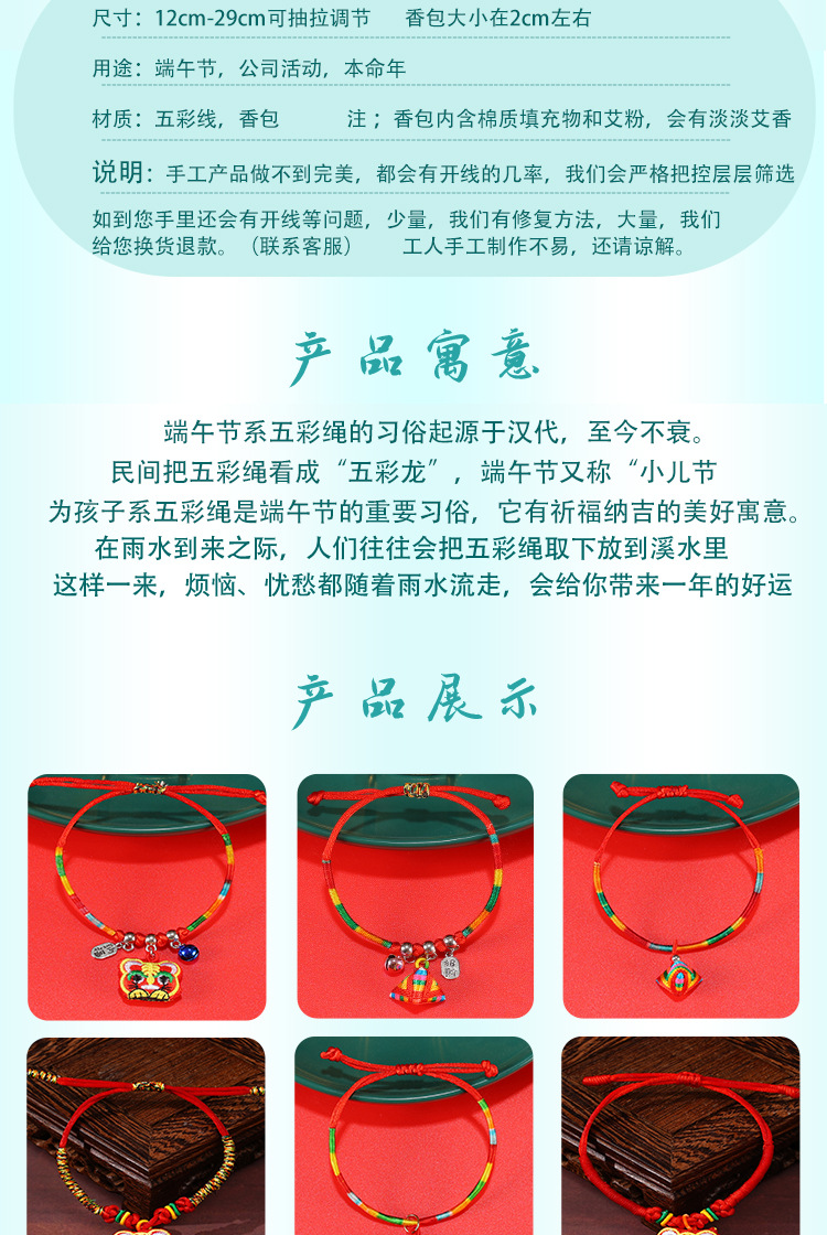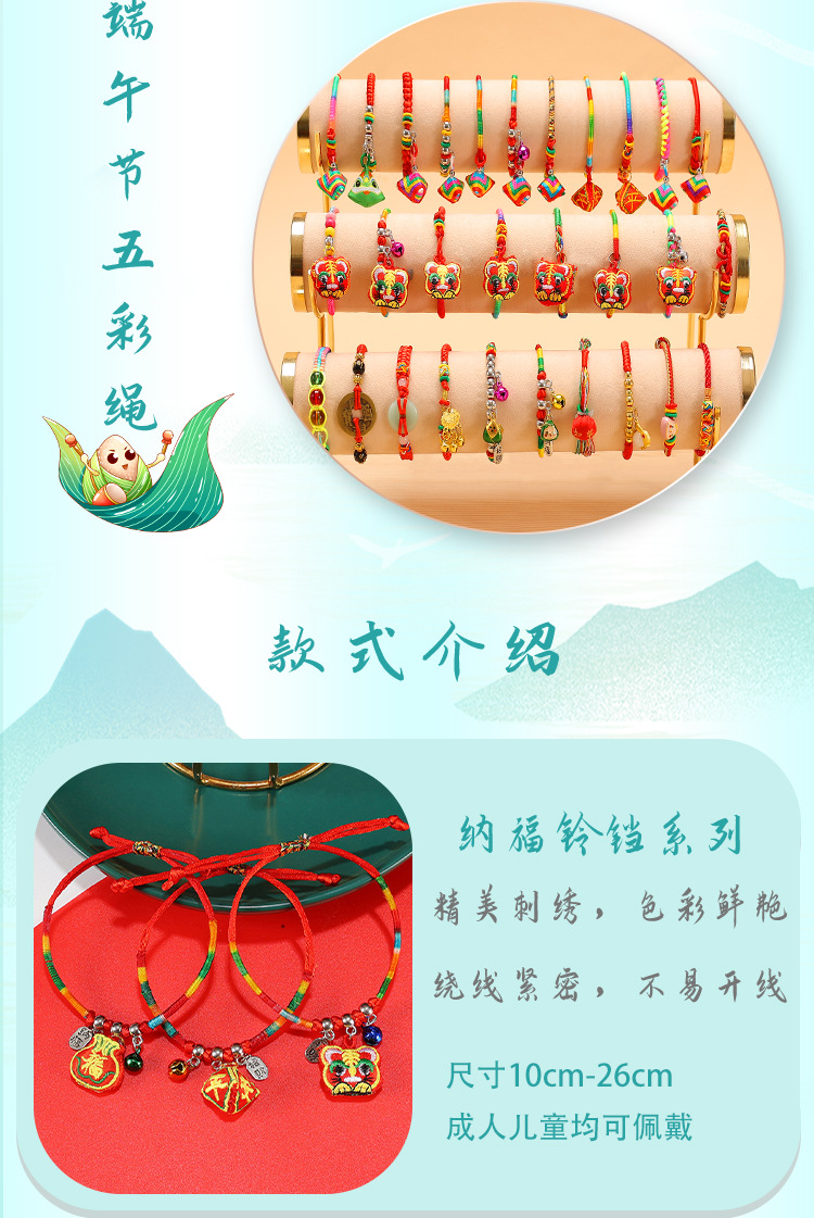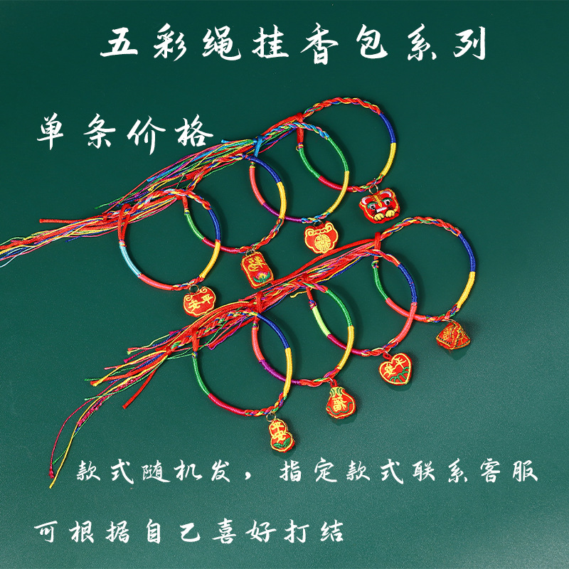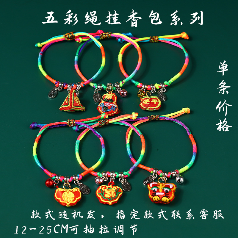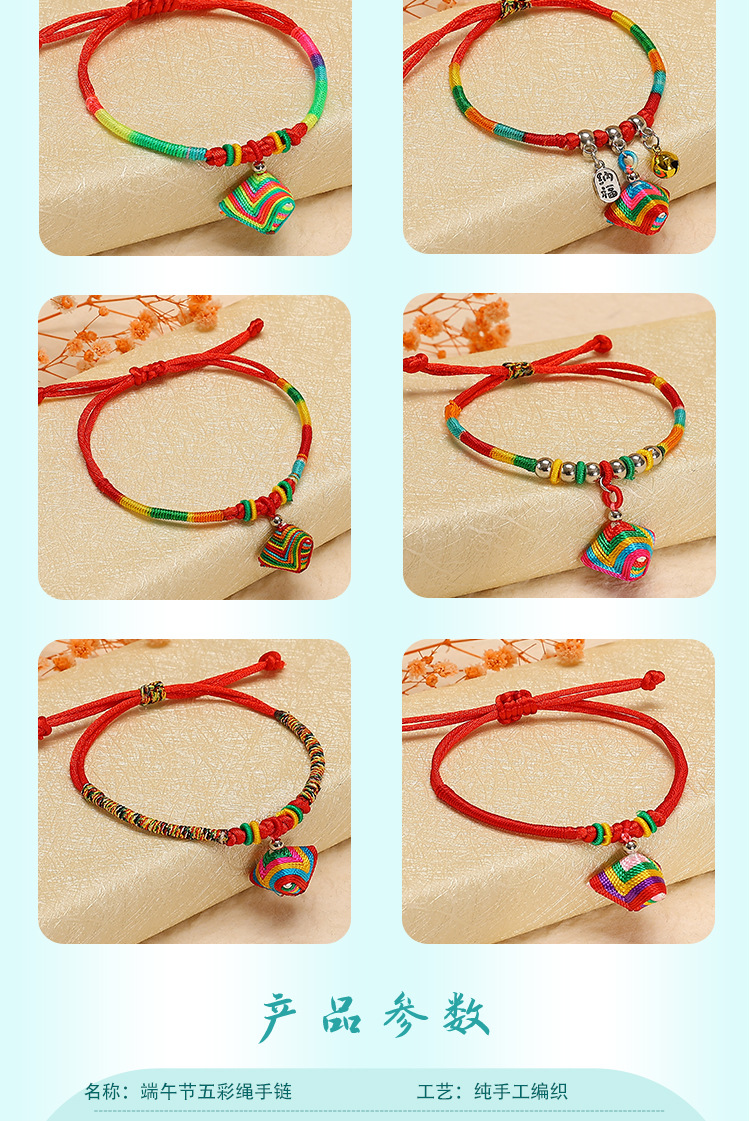 端午节五彩绳手工编织手链儿童宝宝绕线红绳手环老虎粽子香包手绳
