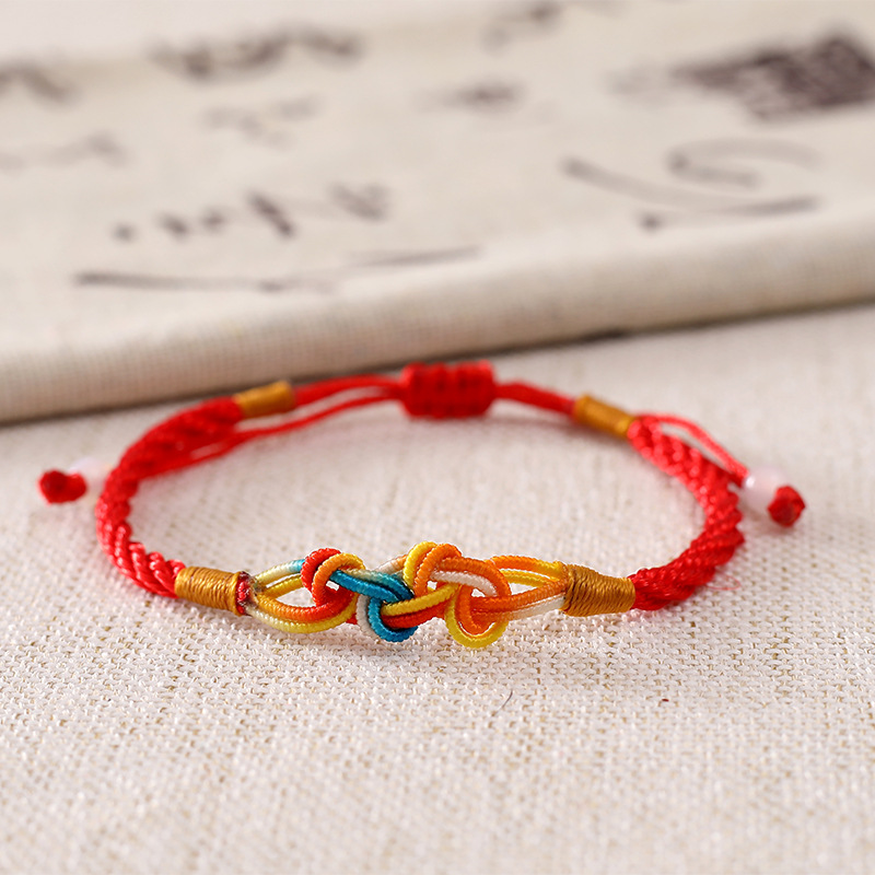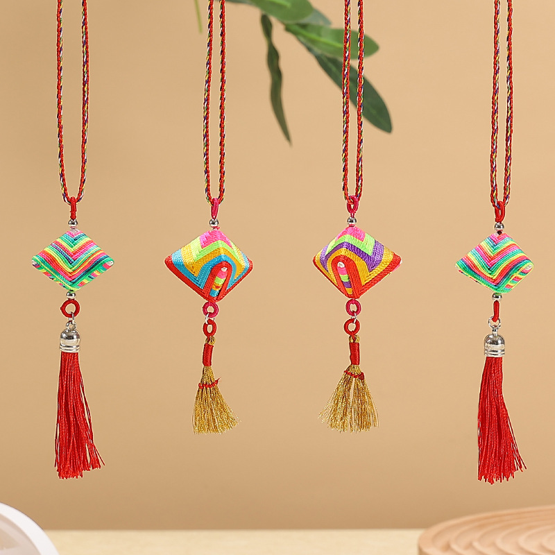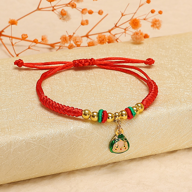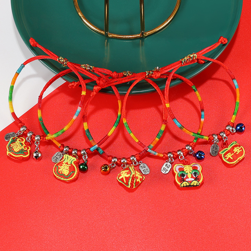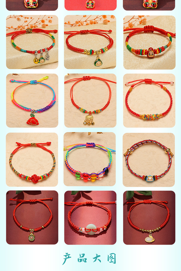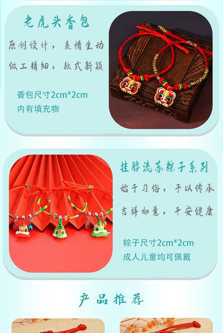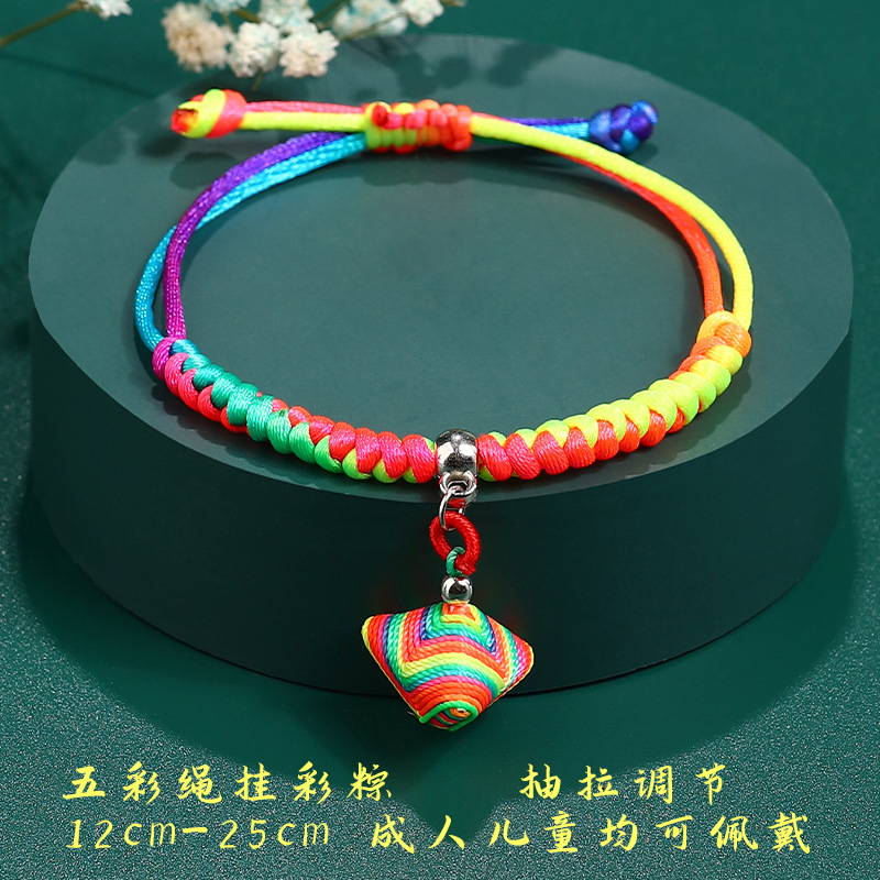 端午节五彩绳手工编织手链儿童宝宝绕线红绳手环老虎粽子香包手绳