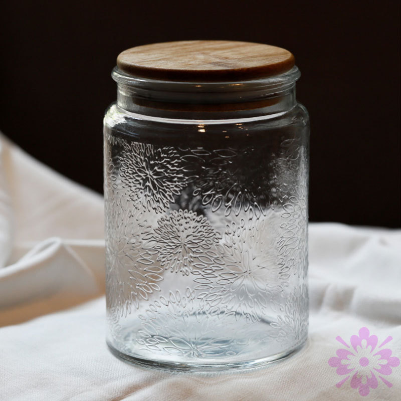 玻璃储物罐密封罐食品级大号浮雕糖果罐竹盖零食茶叶厨房收纳罐
