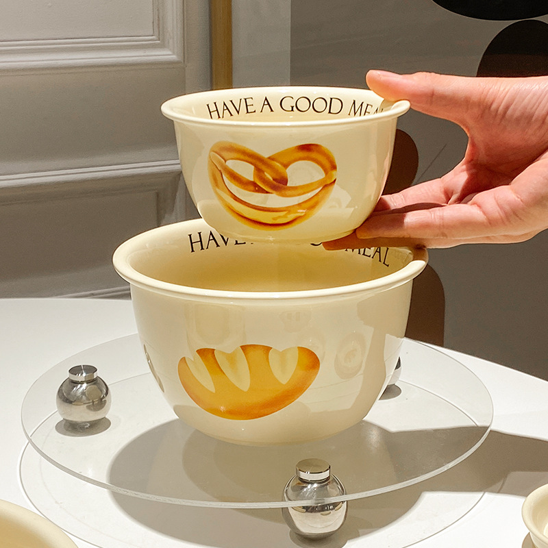 韩式ins风复古奶油面包系列餐具陶瓷碗家用餐盘早餐一人食沙拉碗