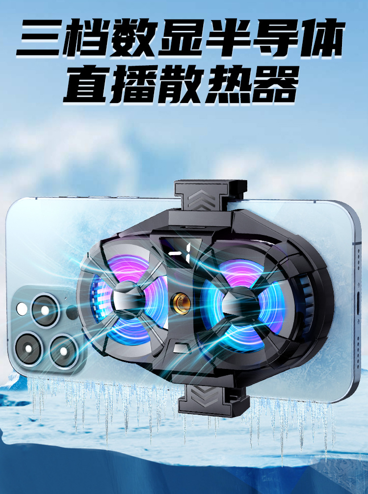 新款SL07手机散热器 双风扇三档数显半导体散热器 手游直播制冷器