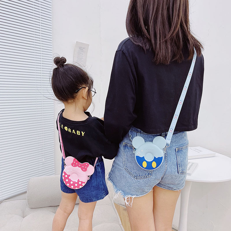 ins可爱硅胶儿童零钱包织带配饰斜跨单肩包超萌迷你休闲个性出众