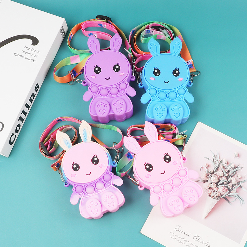 现货兔子儿童硅胶零钱包包益智卡通解压泡泡可捏斜挎包旅游零钱包