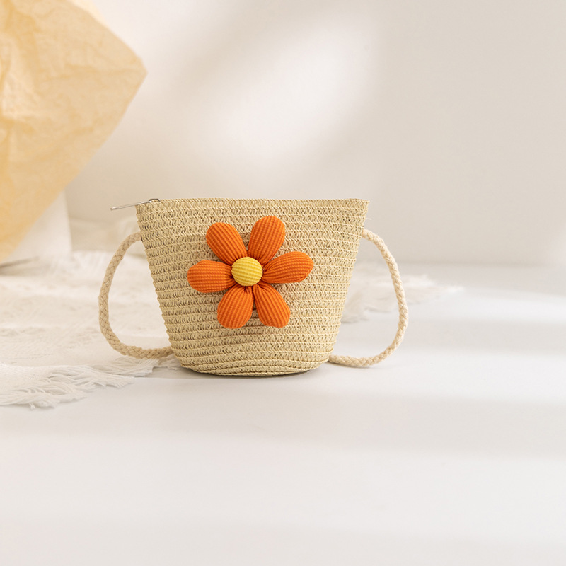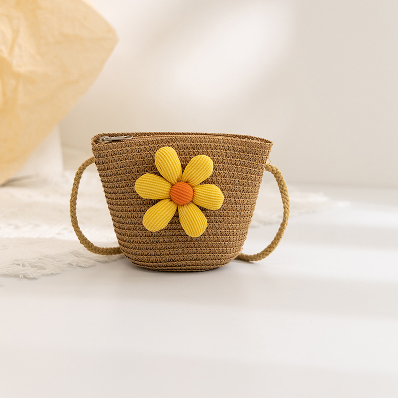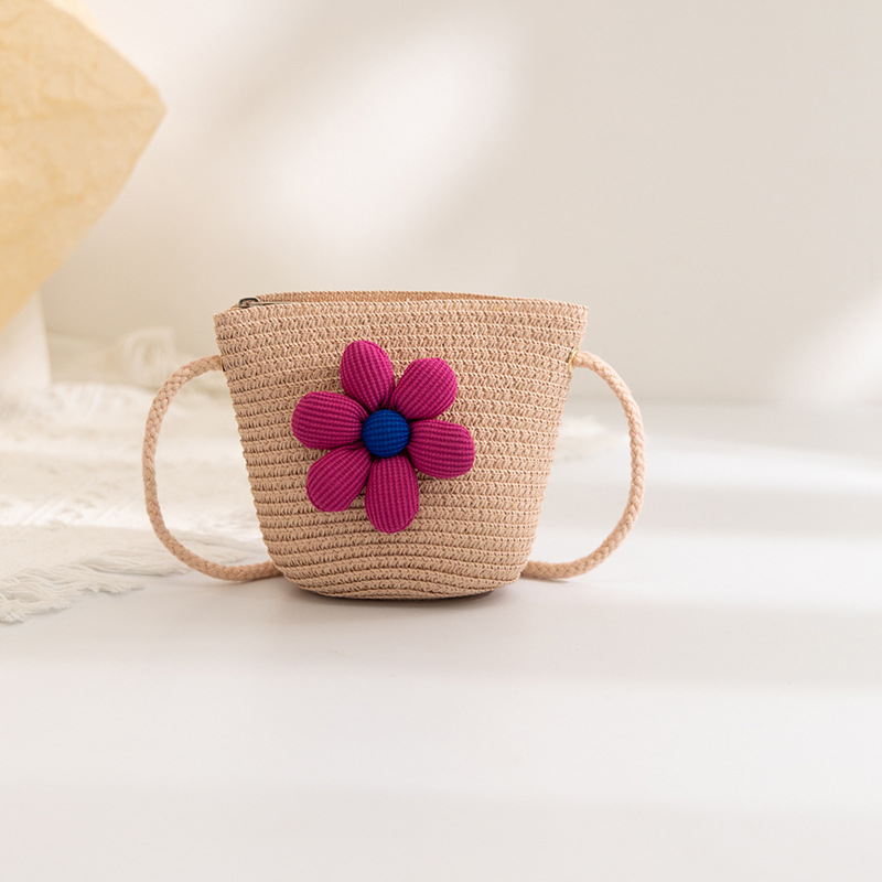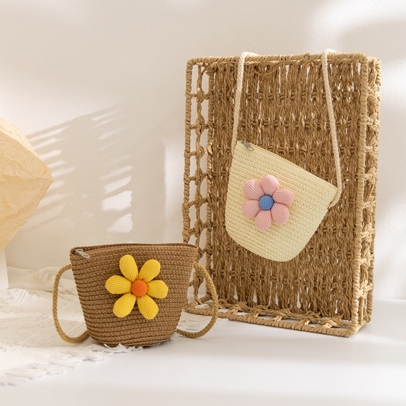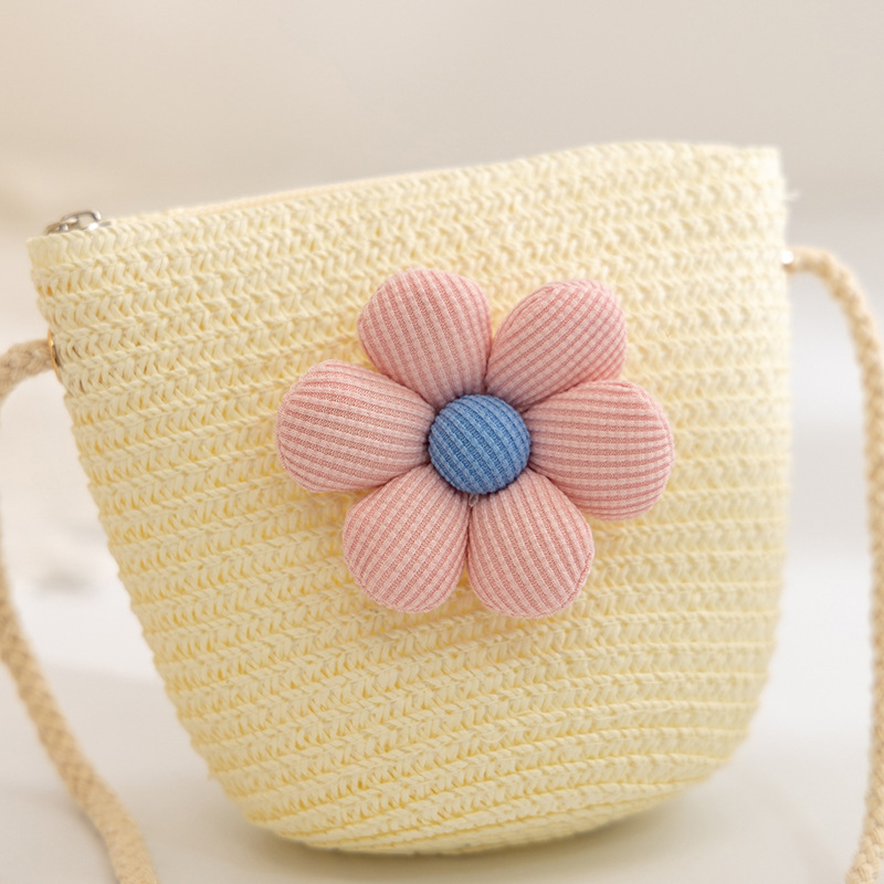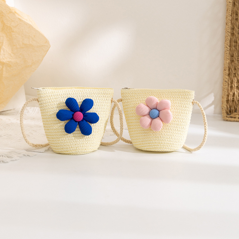 儿童包包韩版花朵草编斜挎包公主小清新出游收纳包女童宝宝零钱包