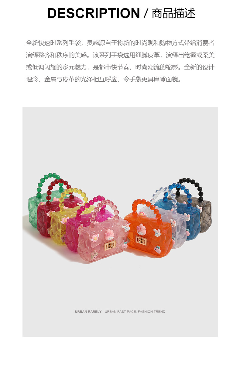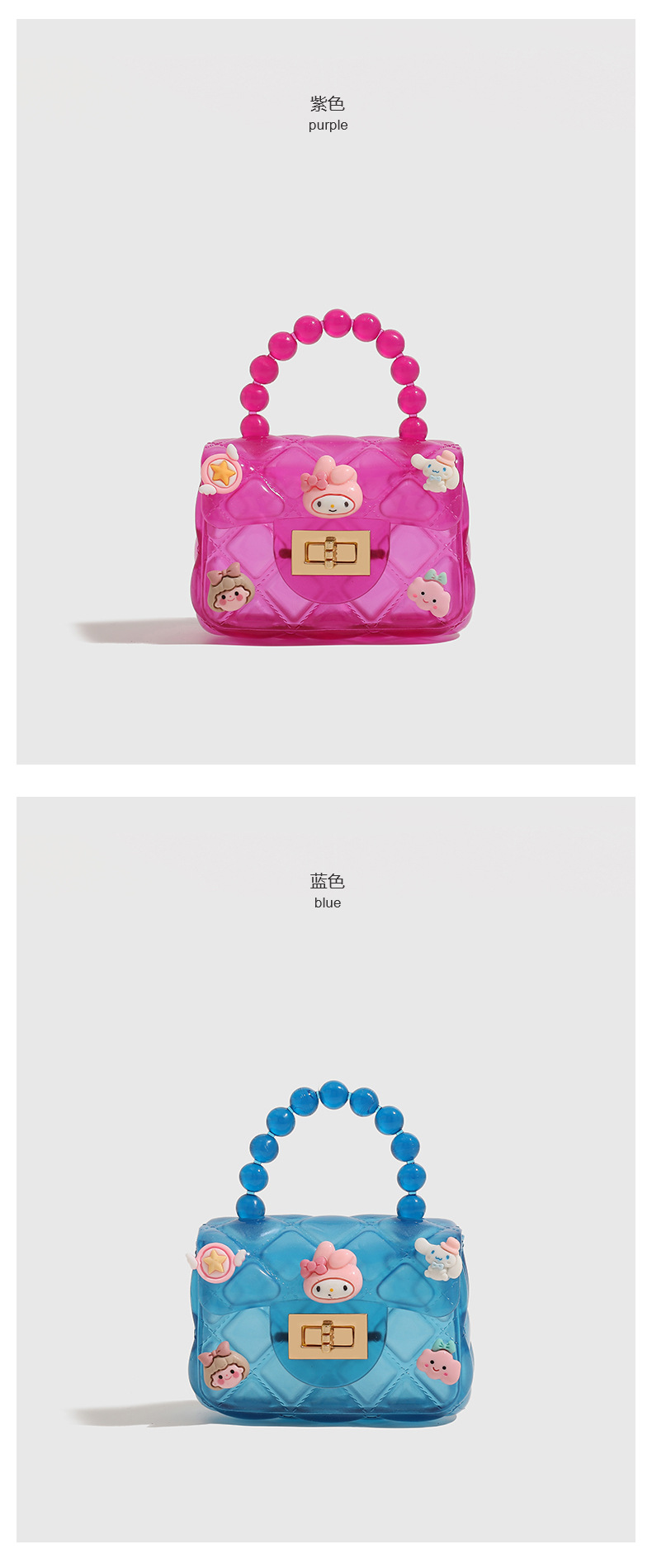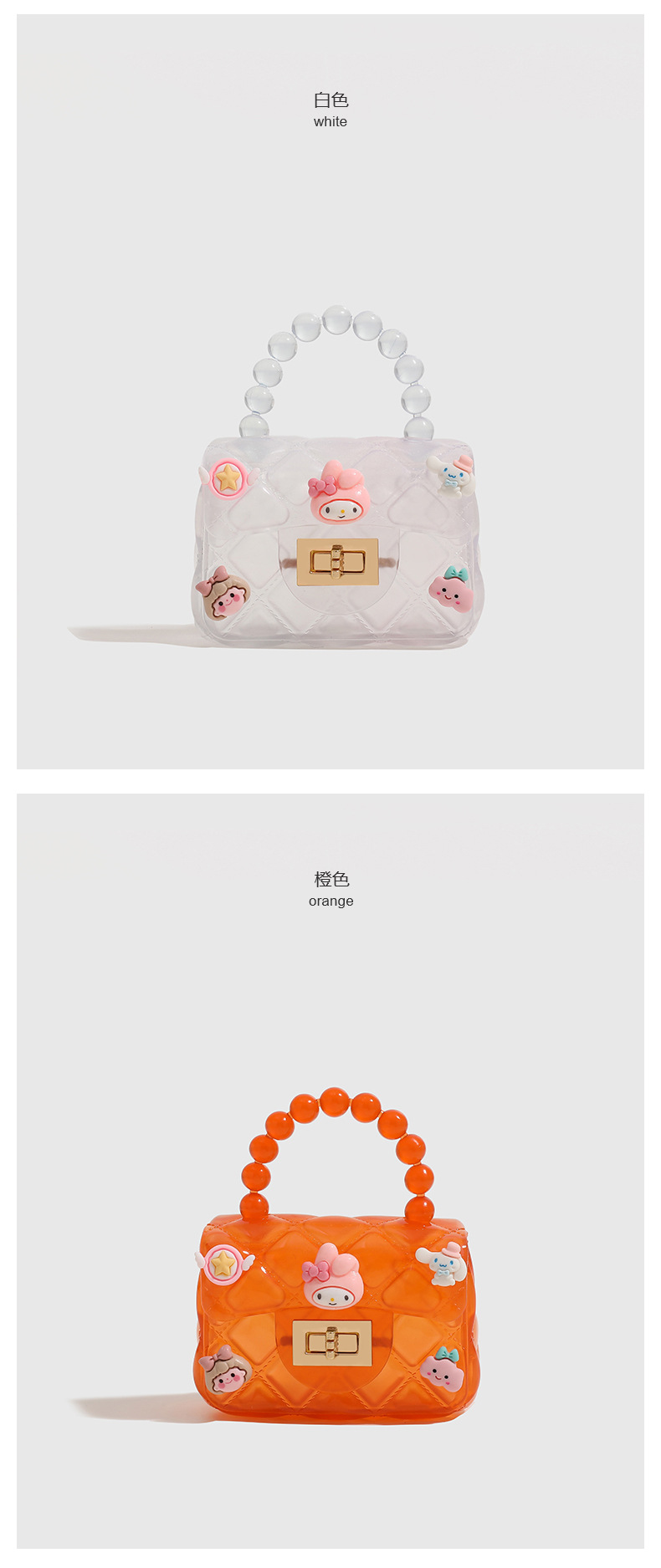 新款透明果冻包女童包包珍珠链条卡通硅胶斜挎包可爱卡通手提小包