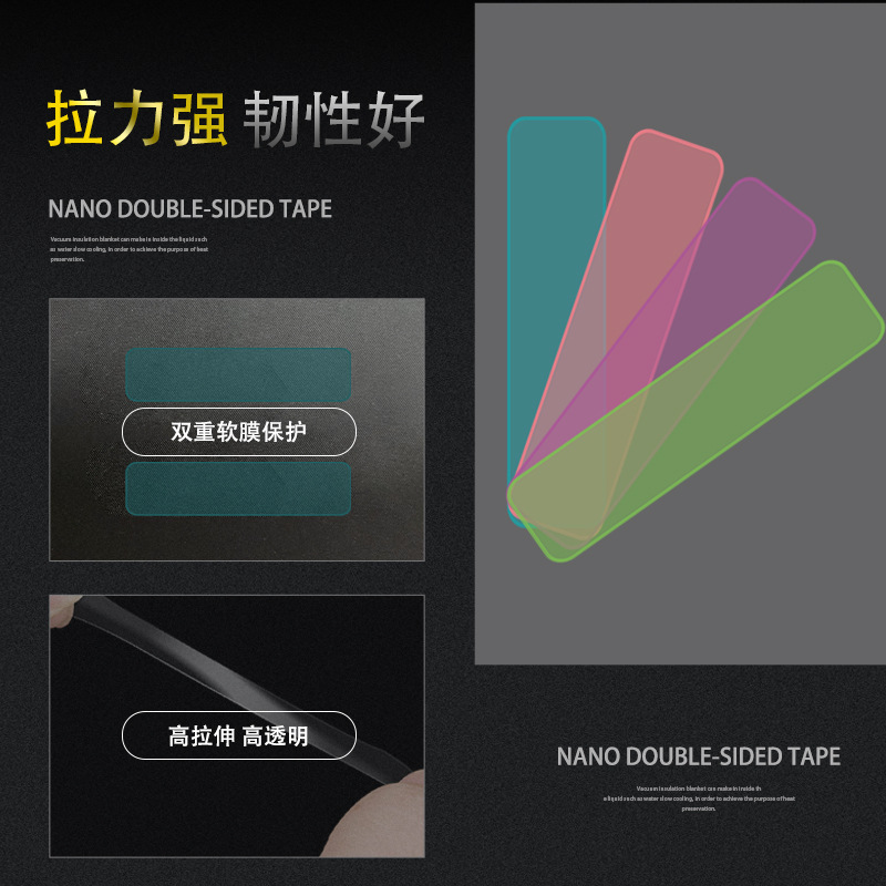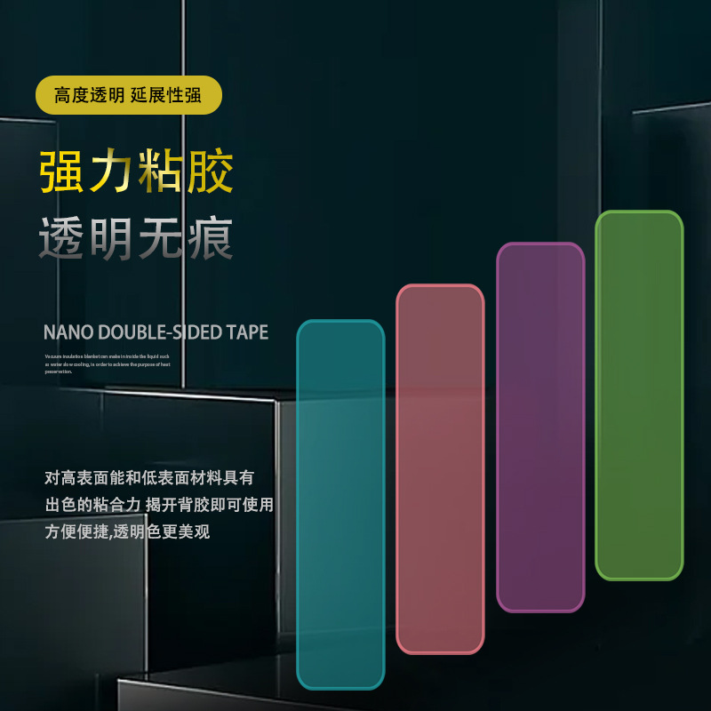 彩色纳米双面胶片亚克力无痕胶可移动墙面魔力无痕胶贴工厂批发