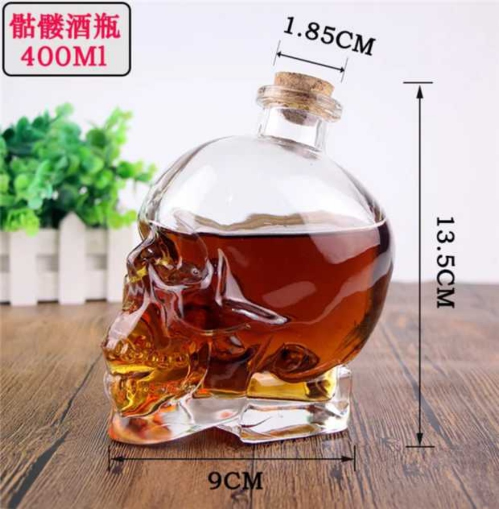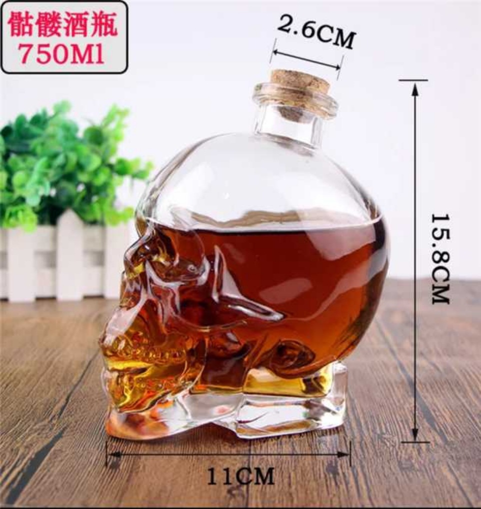 网红奶茶瓶骷髅头空酒瓶酒吧商用饮料瓶玻璃骷髅鸡尾酒红酒瓶
