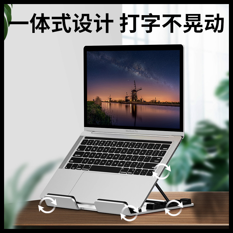 | 产品名称:铝合金笔记本支架 | 材质: ABS+铝合金+硅胶垫 |