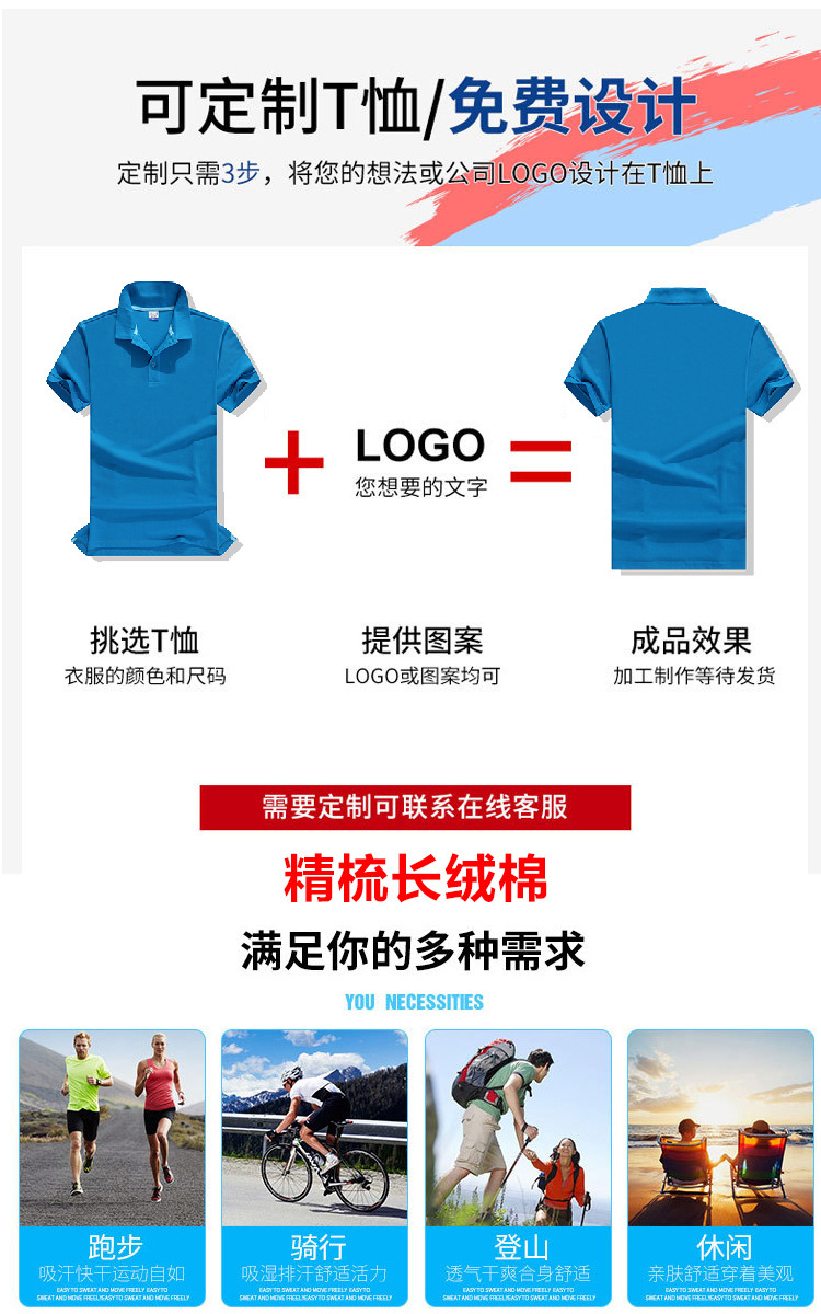 精梳棉翻领t恤定制logo团体工作服印字短袖polo衫订做文化广告衫