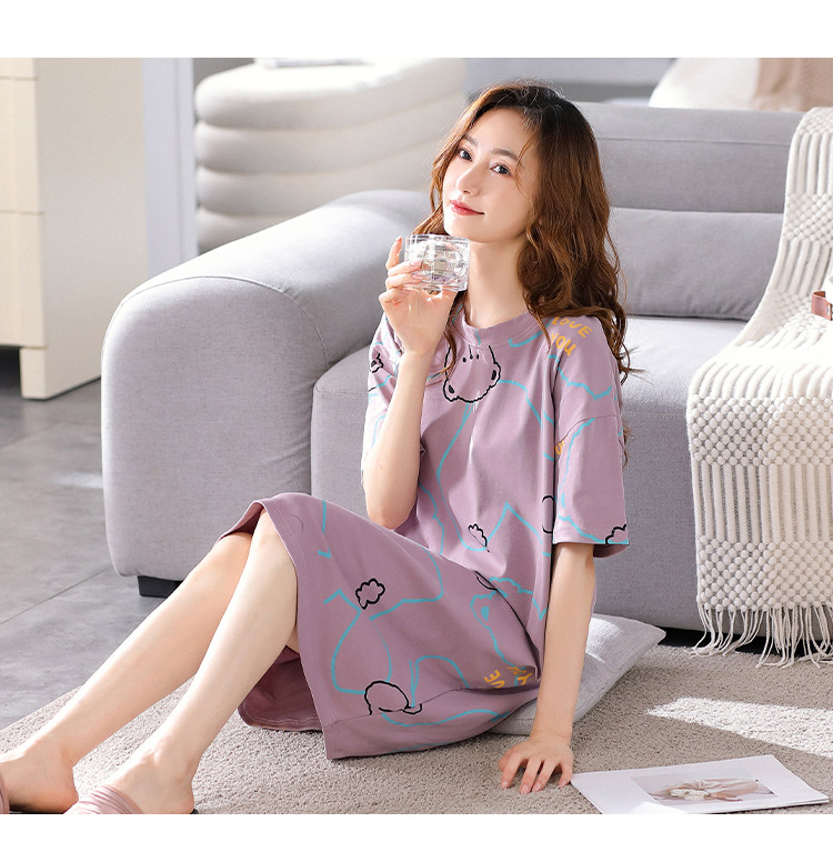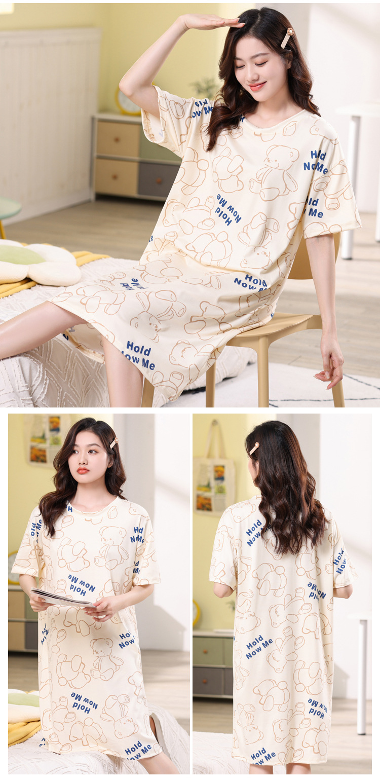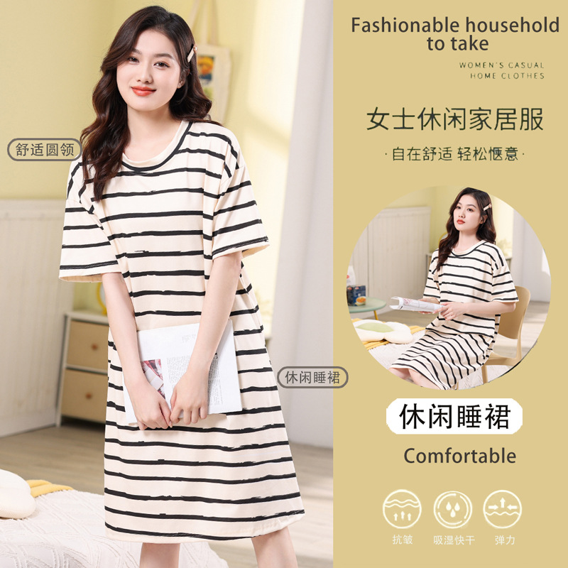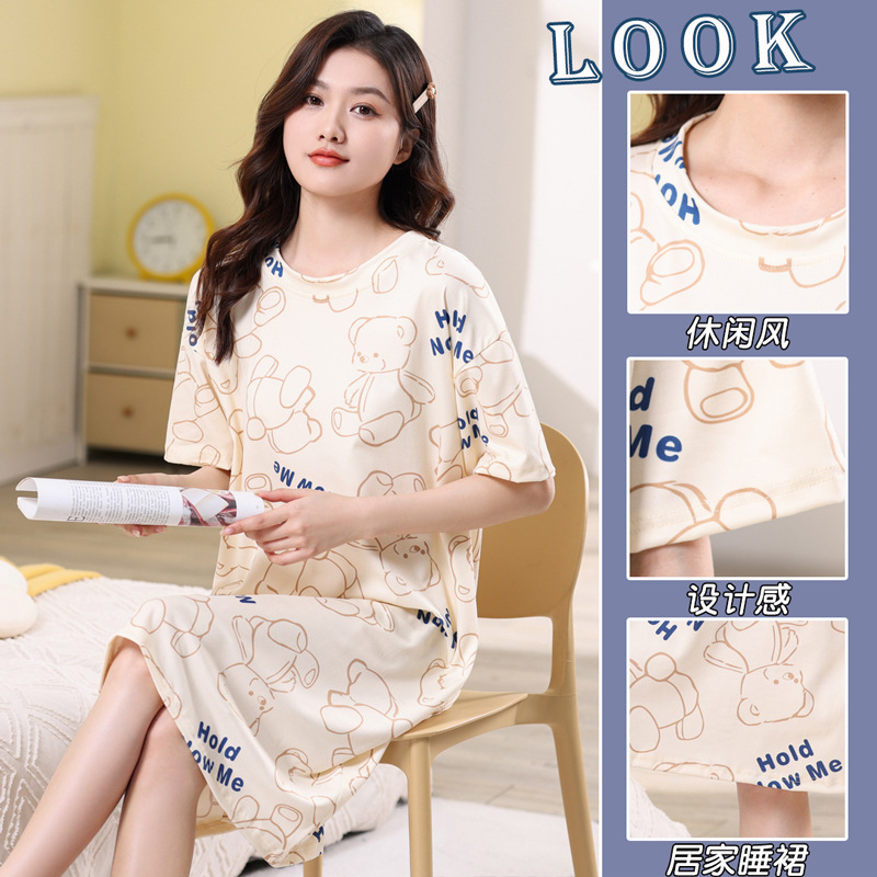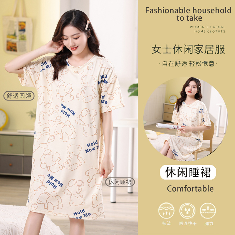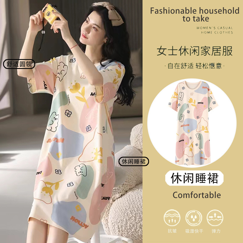 夏天睡裙2023新款睡衣女中长款夏季家居服夏款休闲春秋大码连衣裙