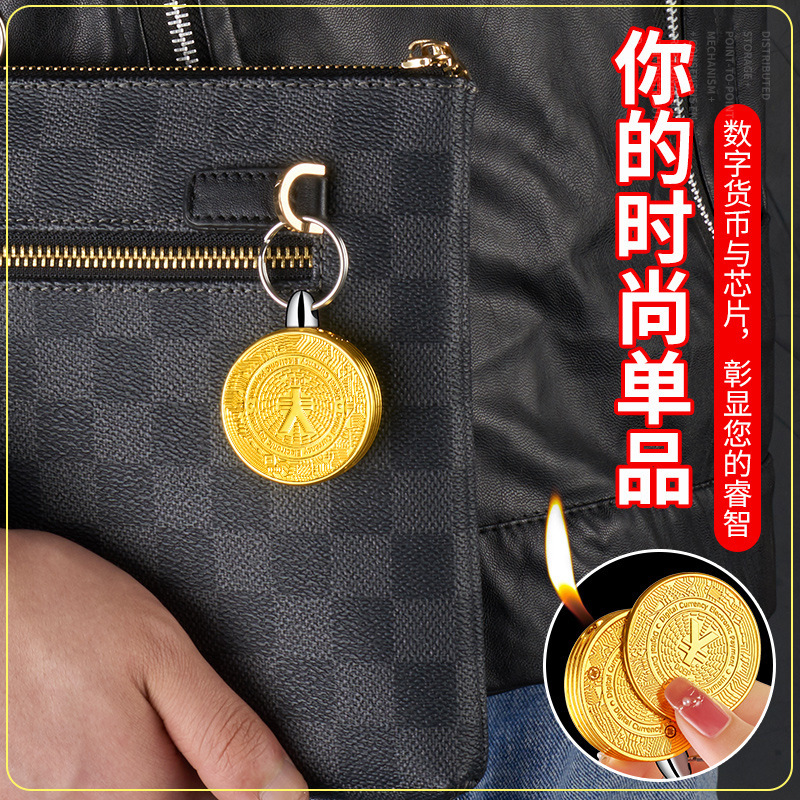 创意个性数字金币形状明火挂件打火机新奇特充气打火机厂家批发