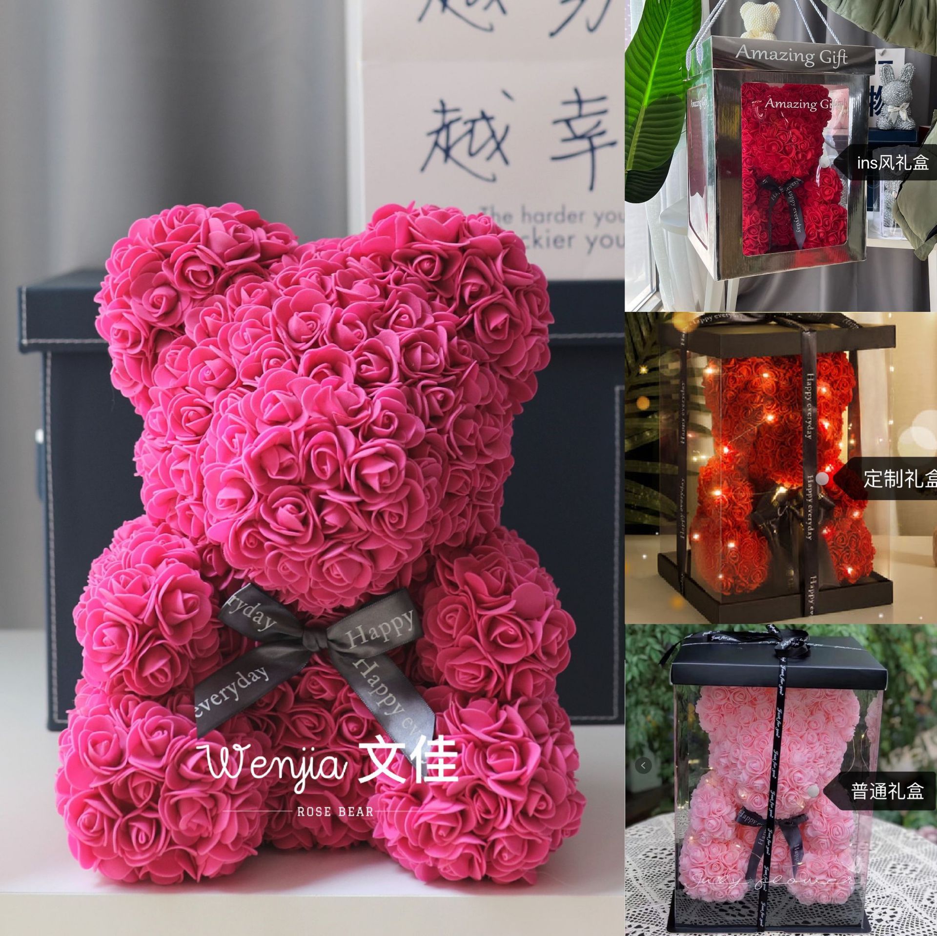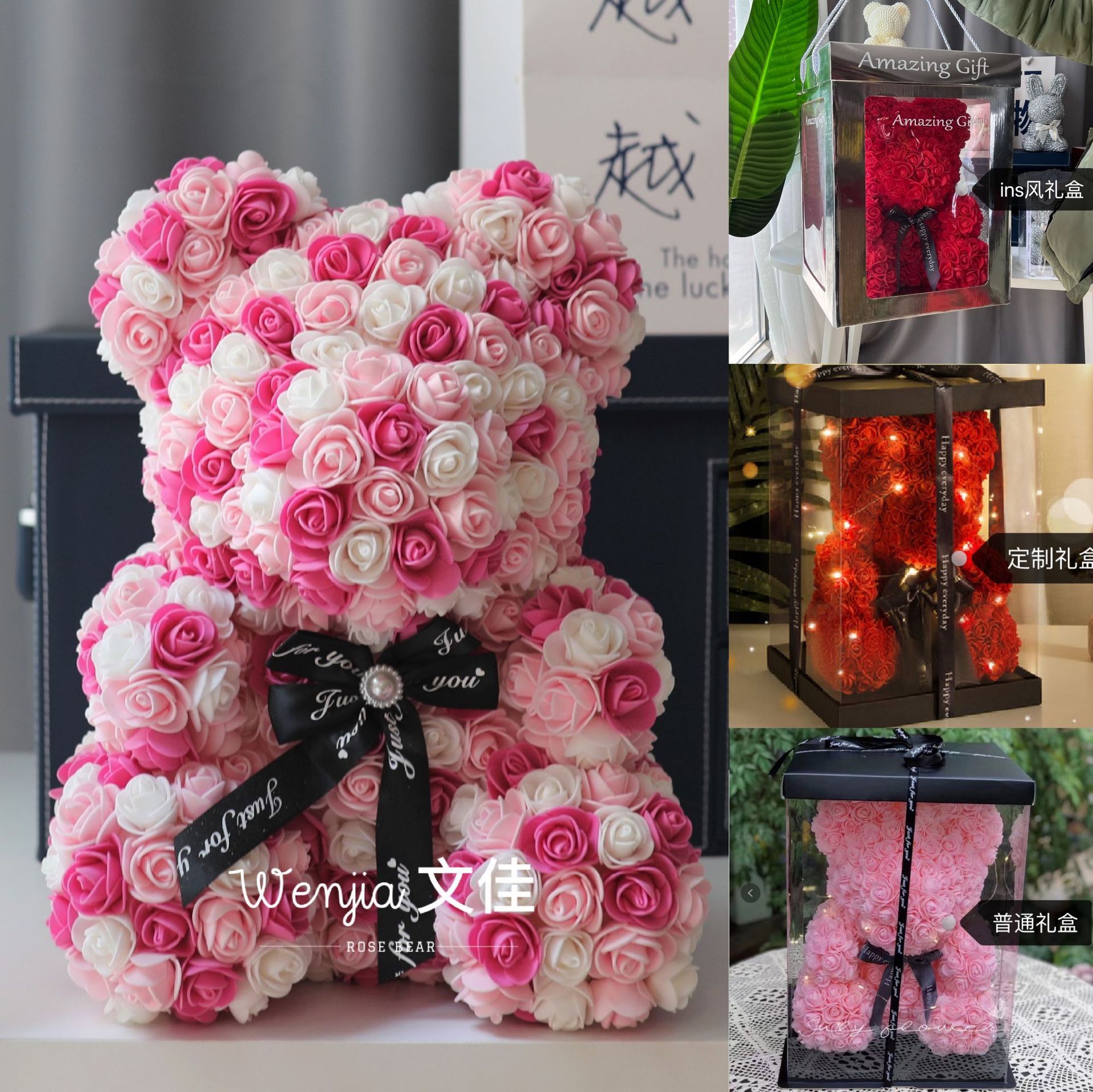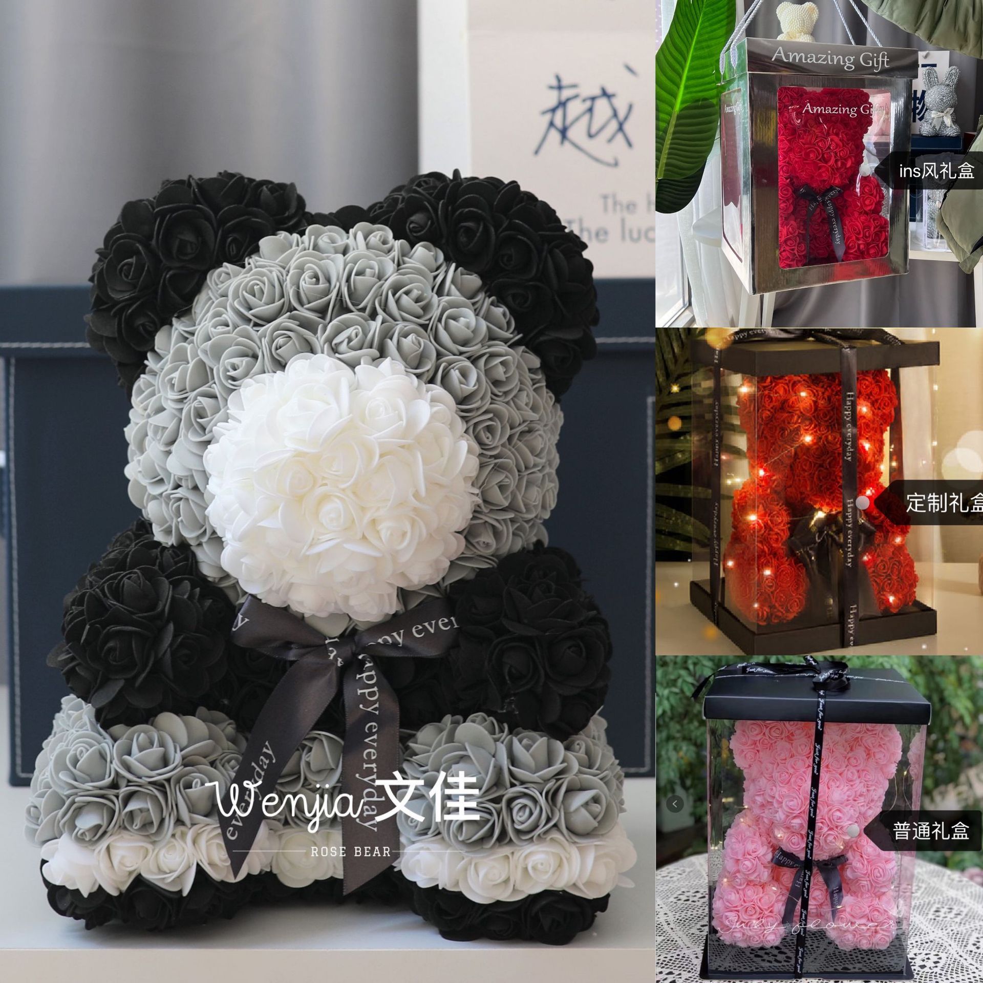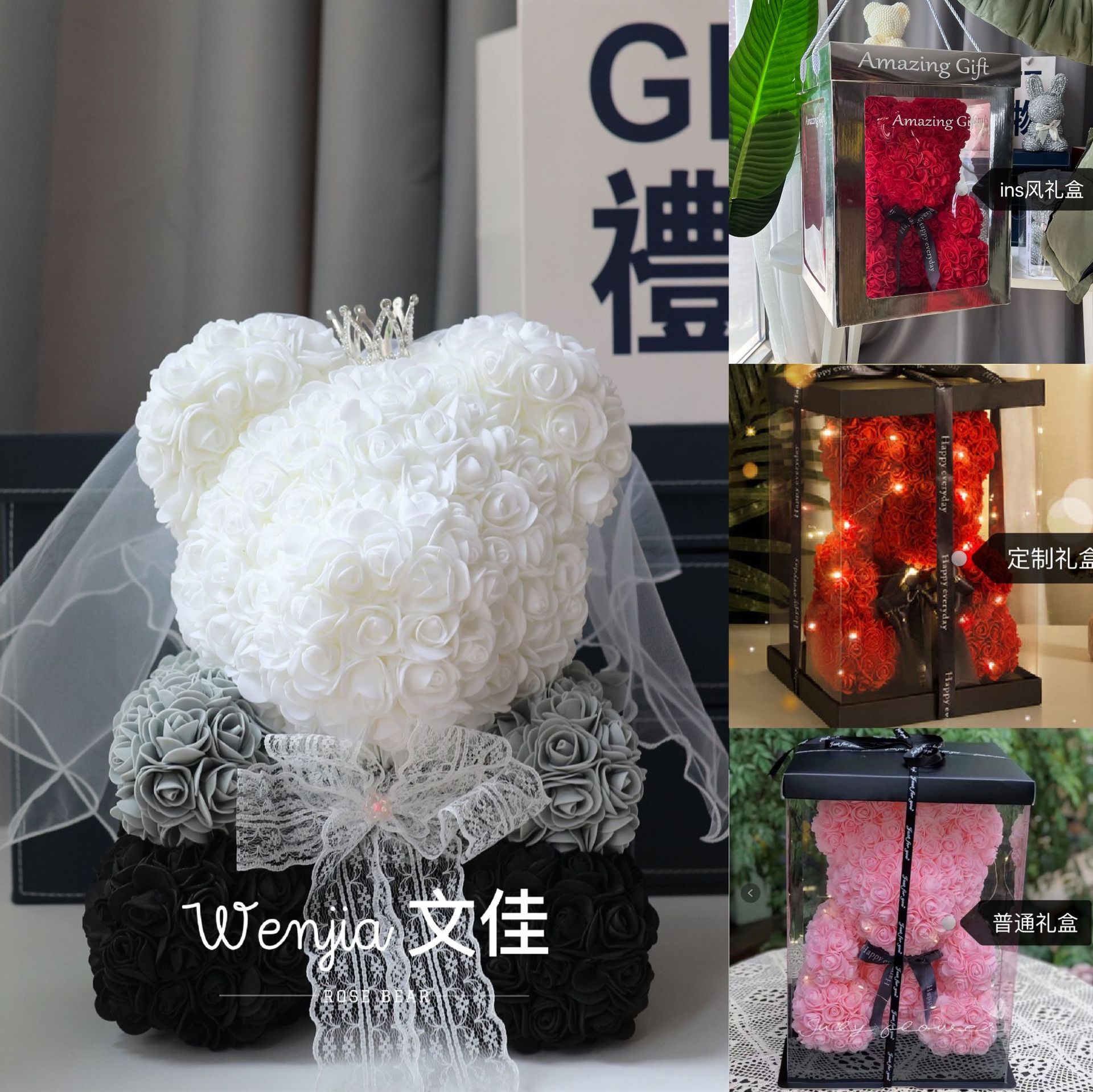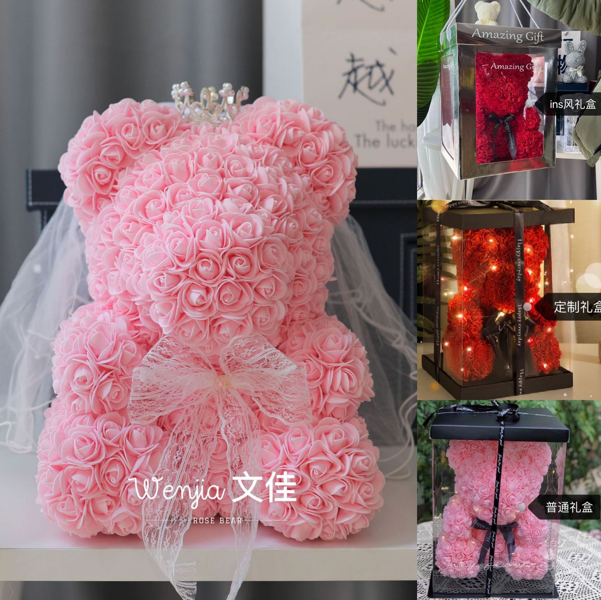 永生花玫瑰熊520情人节礼物送女友创意仿真花七夕礼物玫瑰花熊