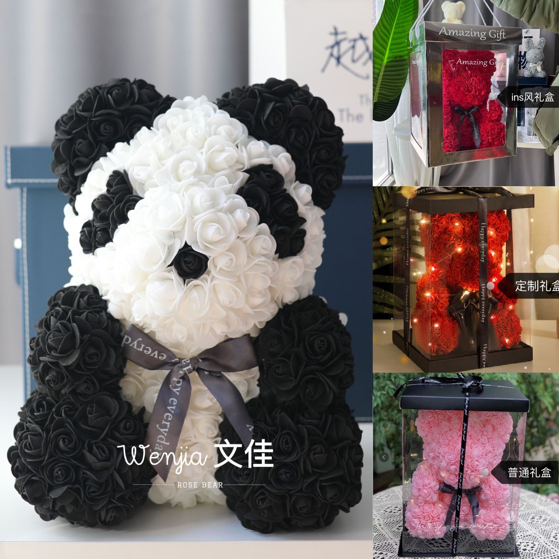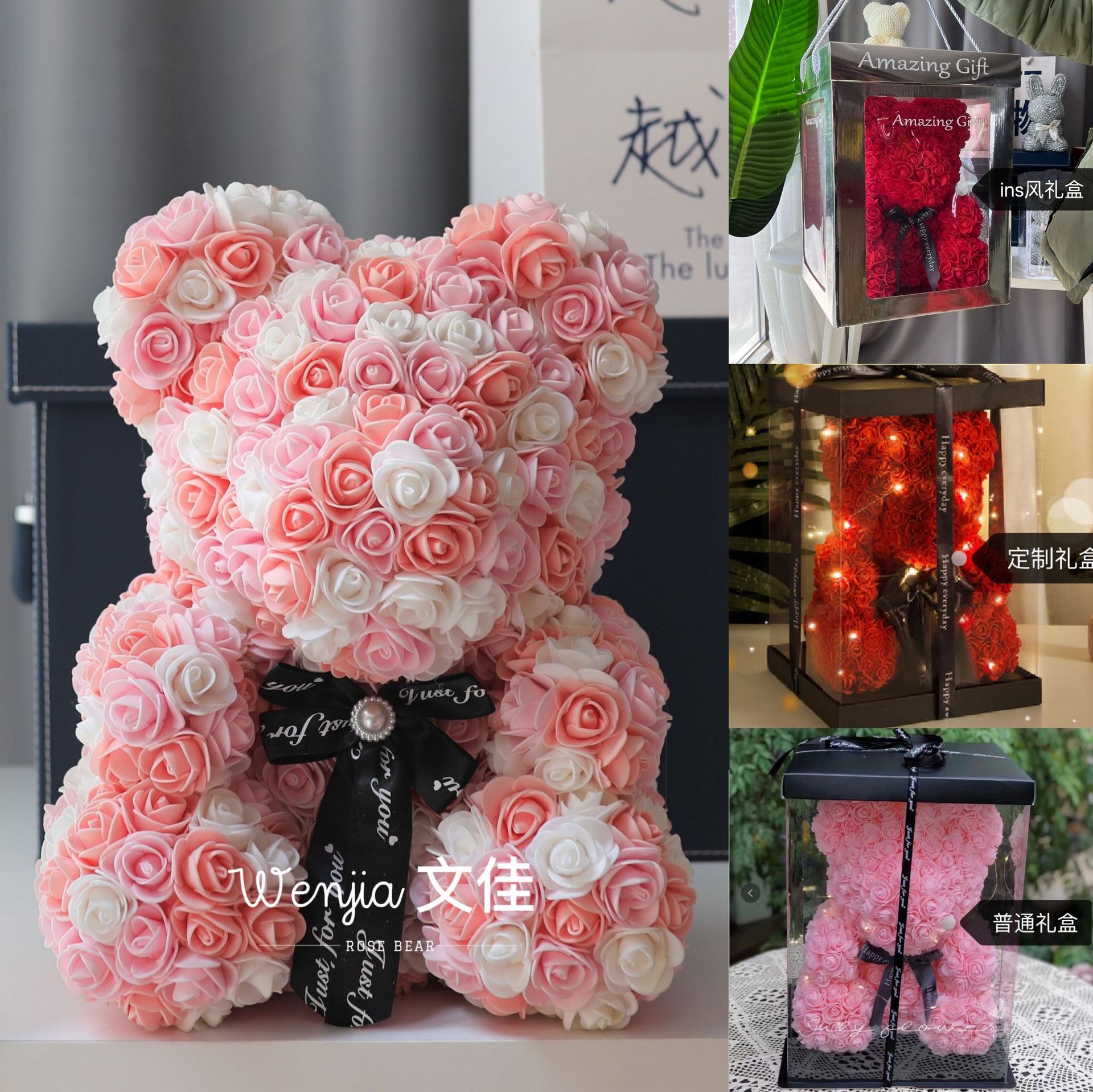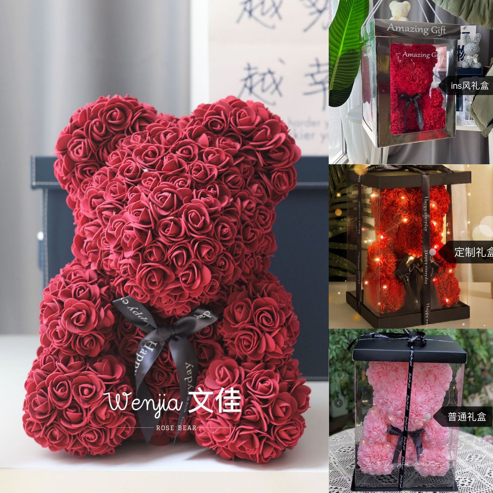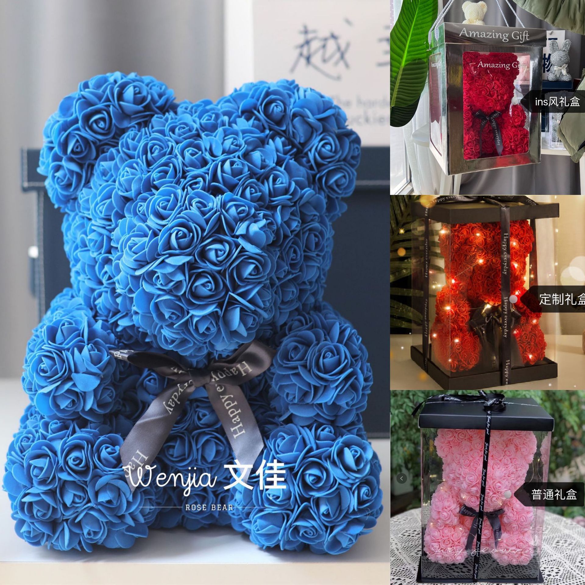 永生花玫瑰熊520情人节礼物送女友创意仿真花七夕礼物玫瑰花熊