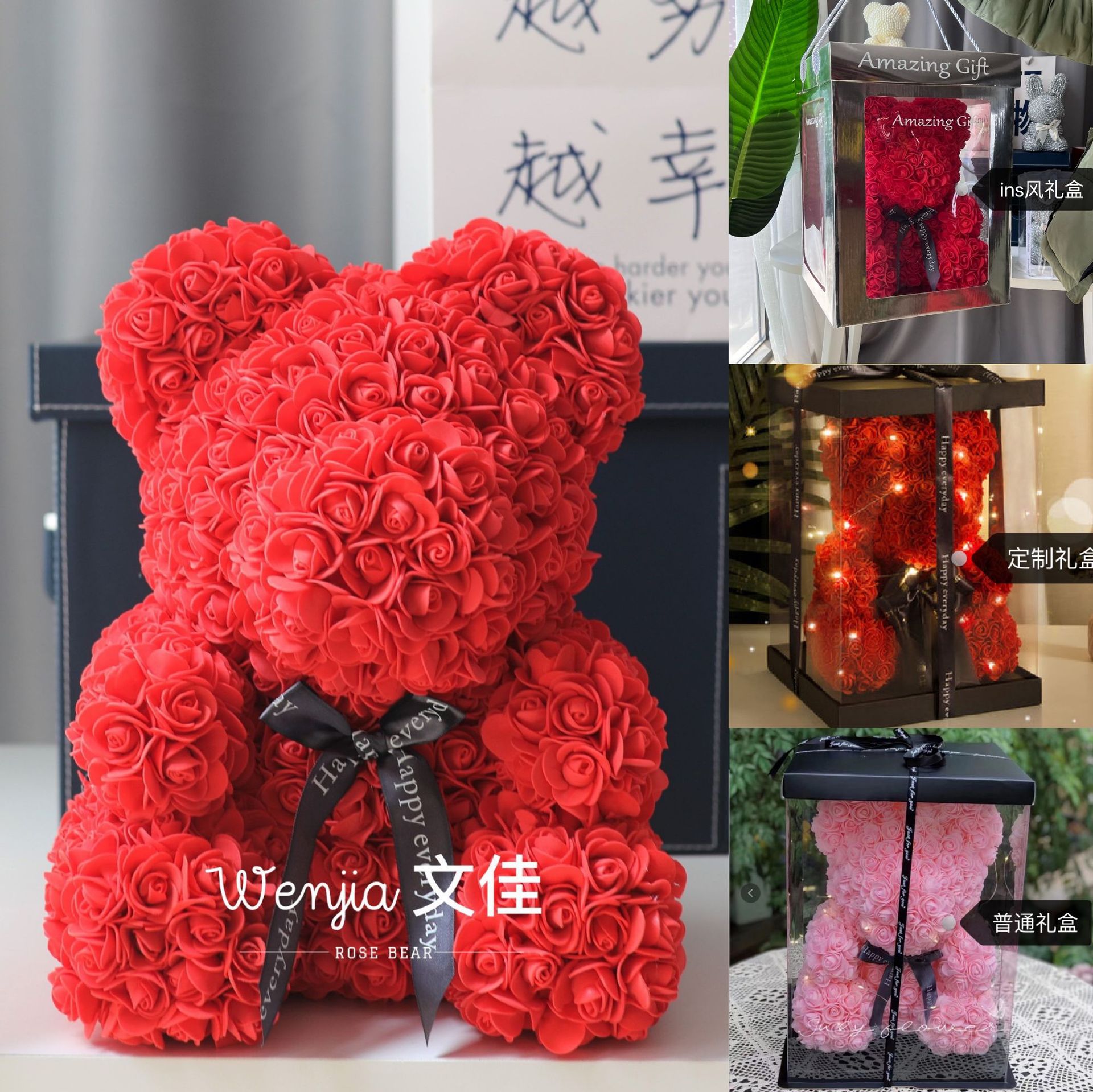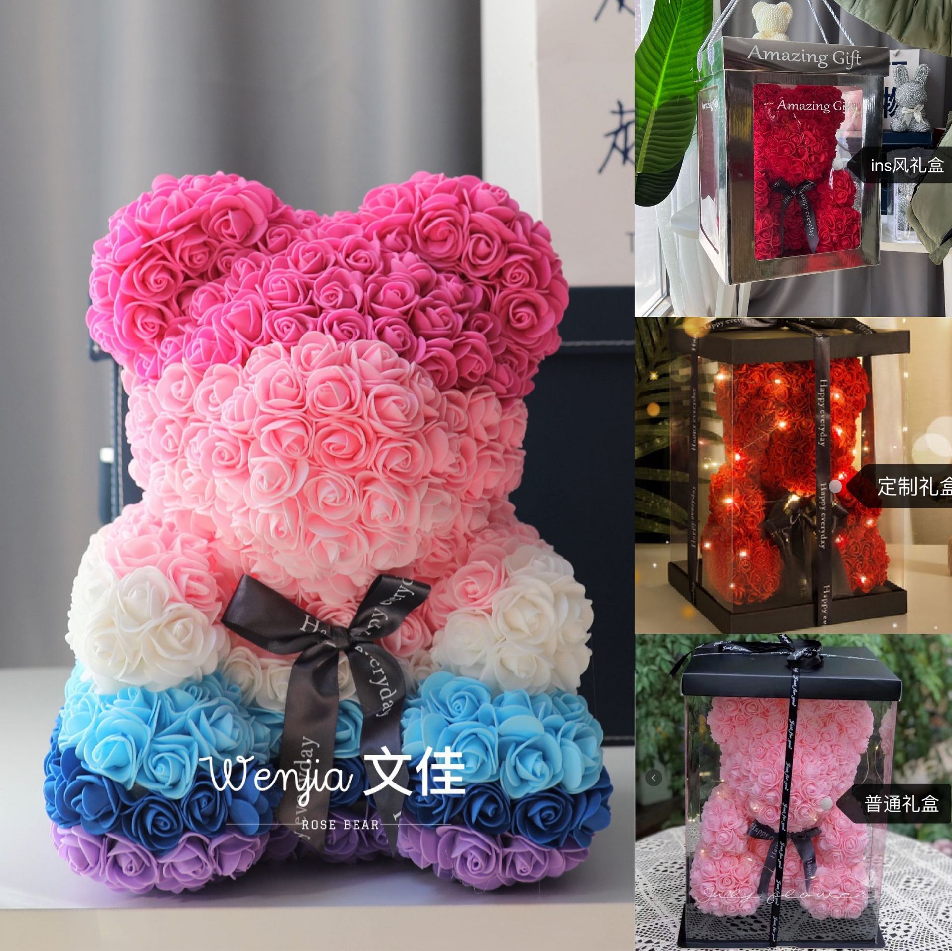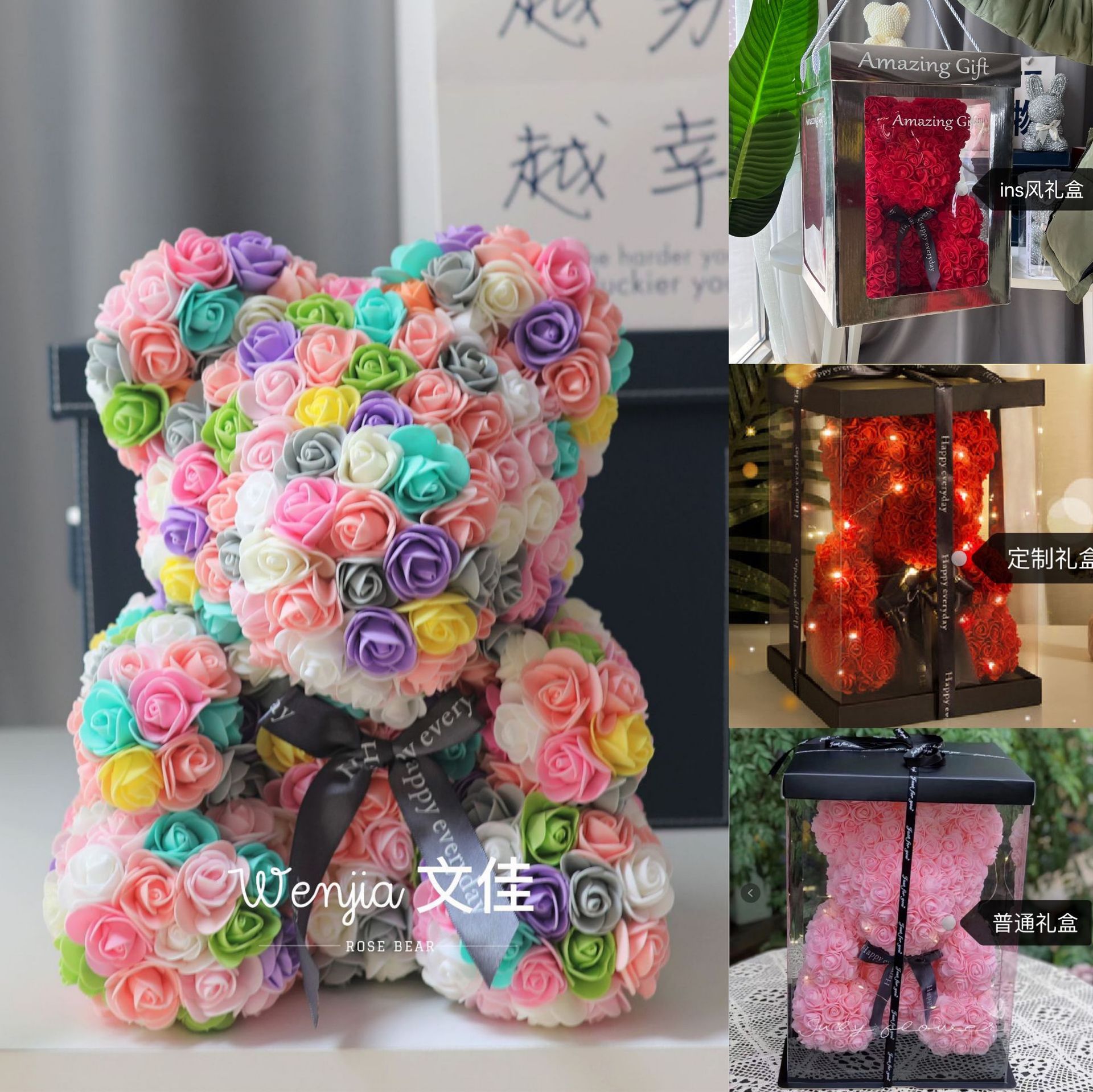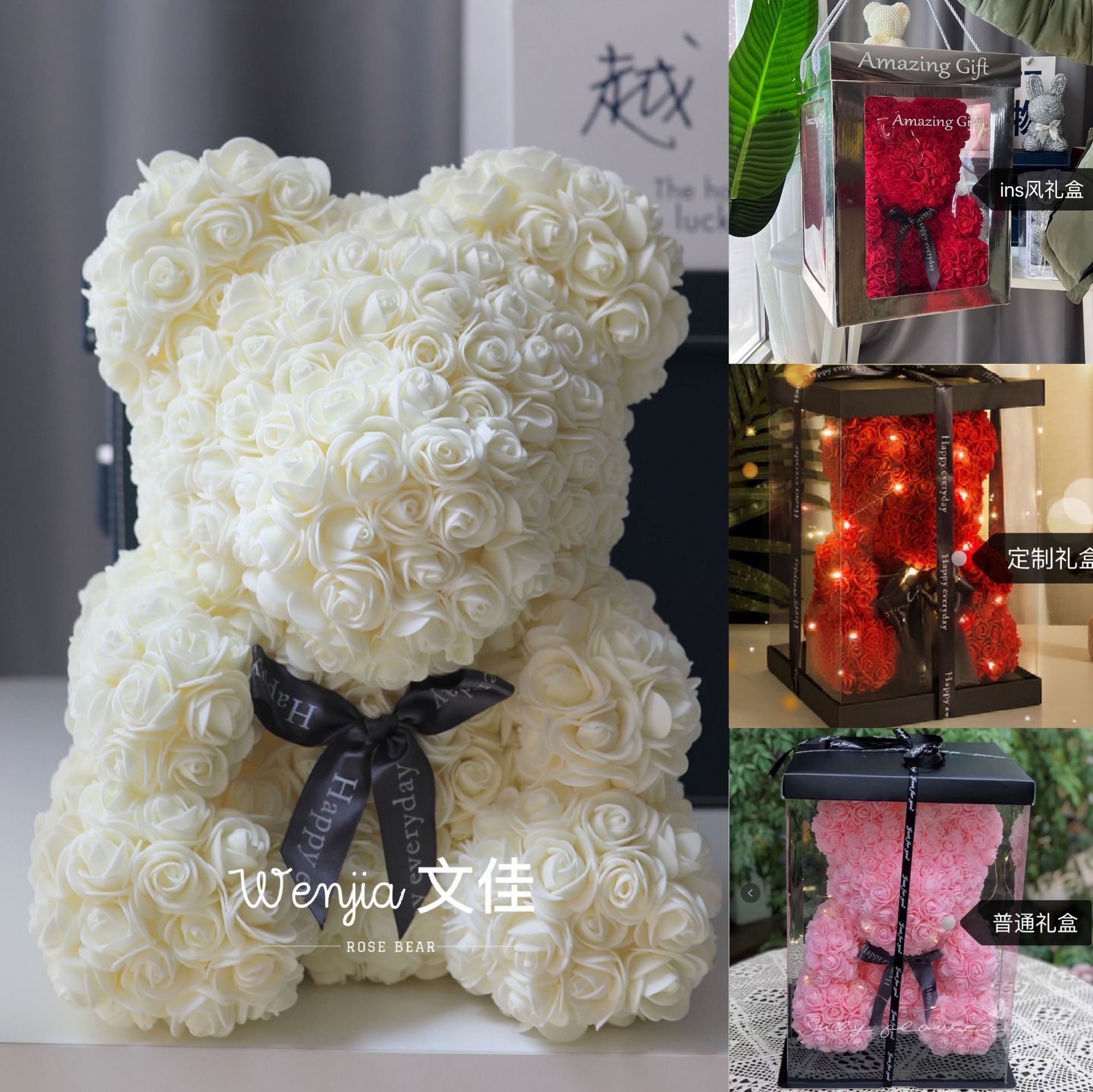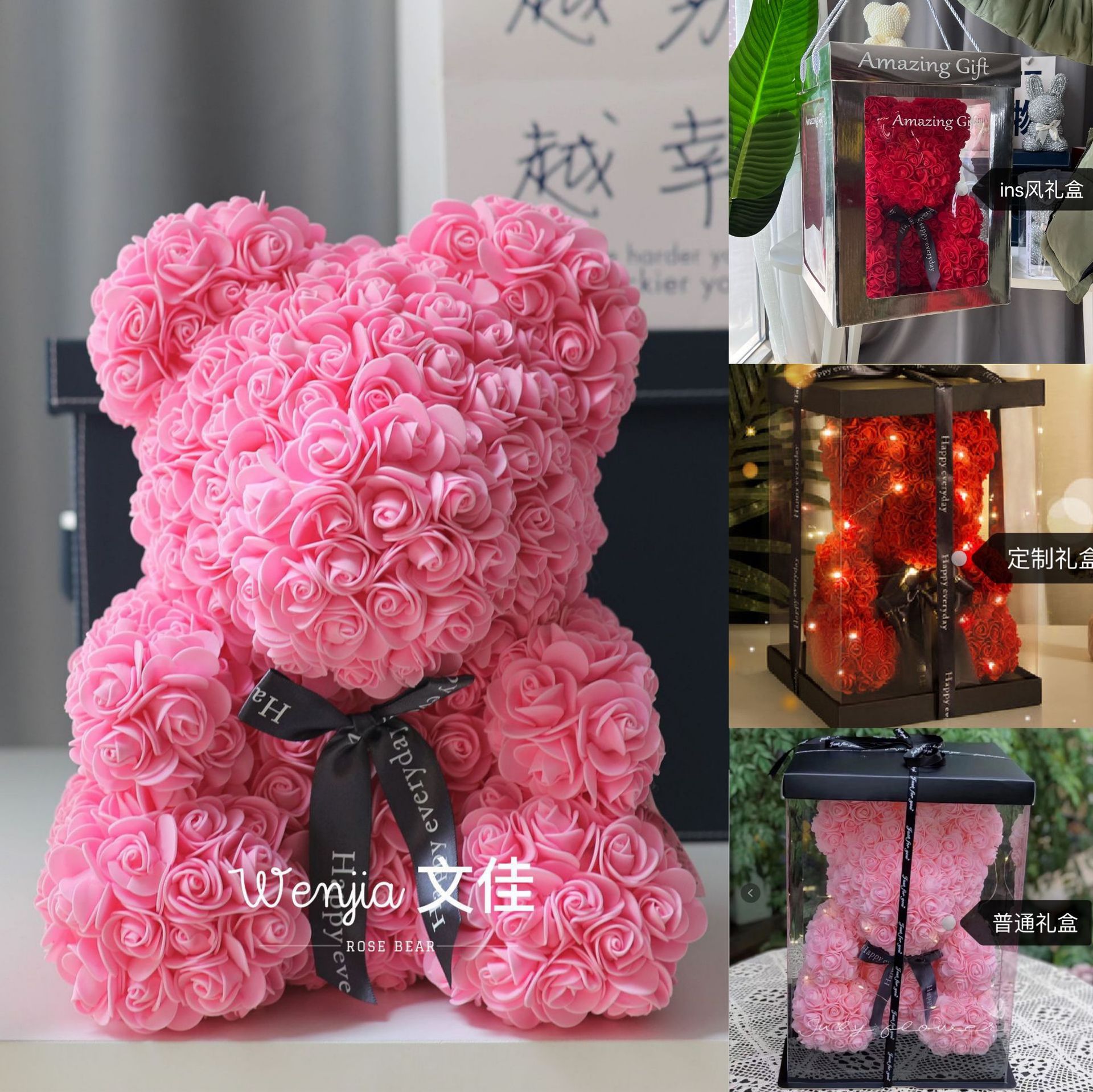 永生花玫瑰熊520情人节礼物送女友创意仿真花七夕礼物玫瑰花熊