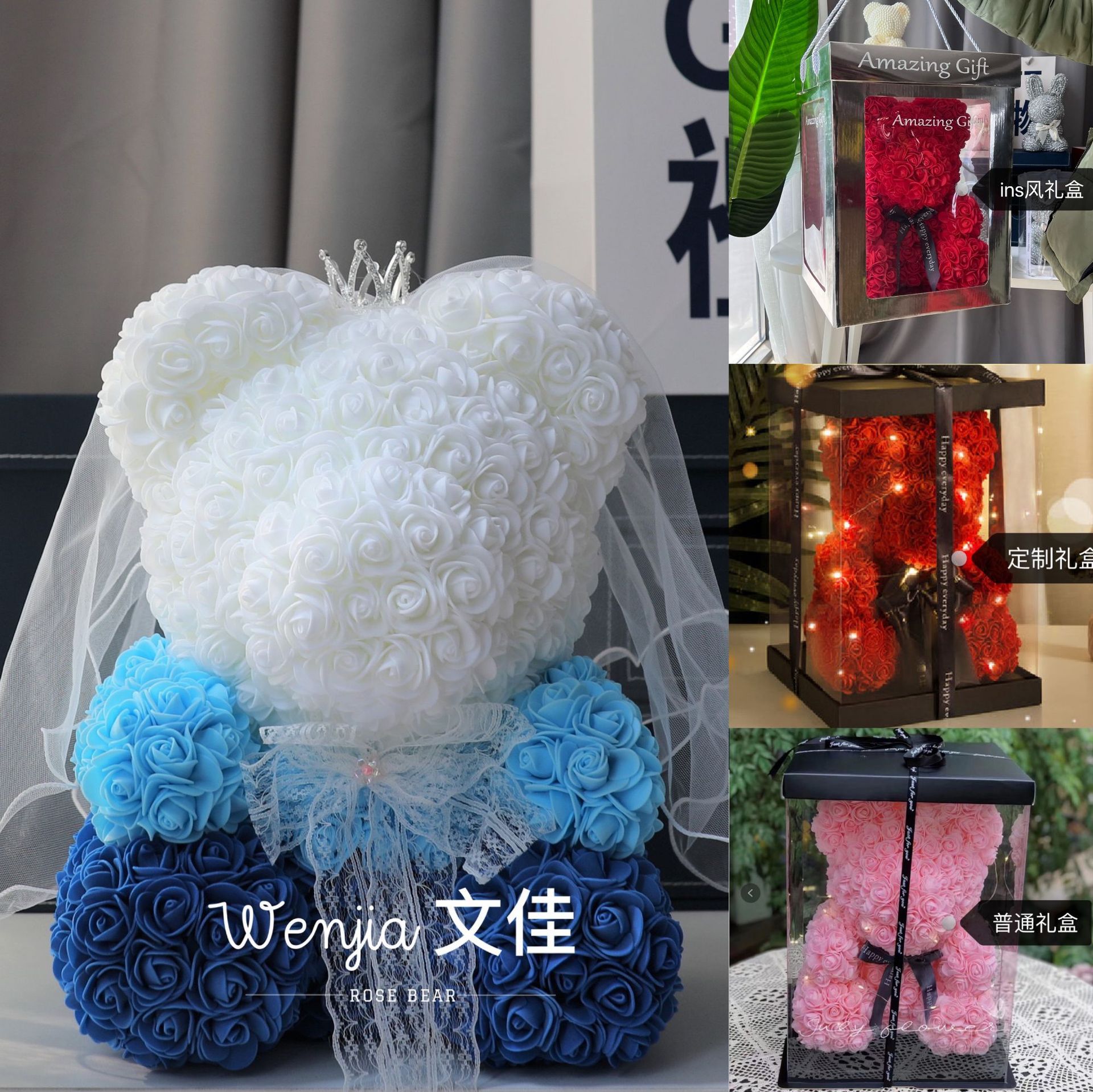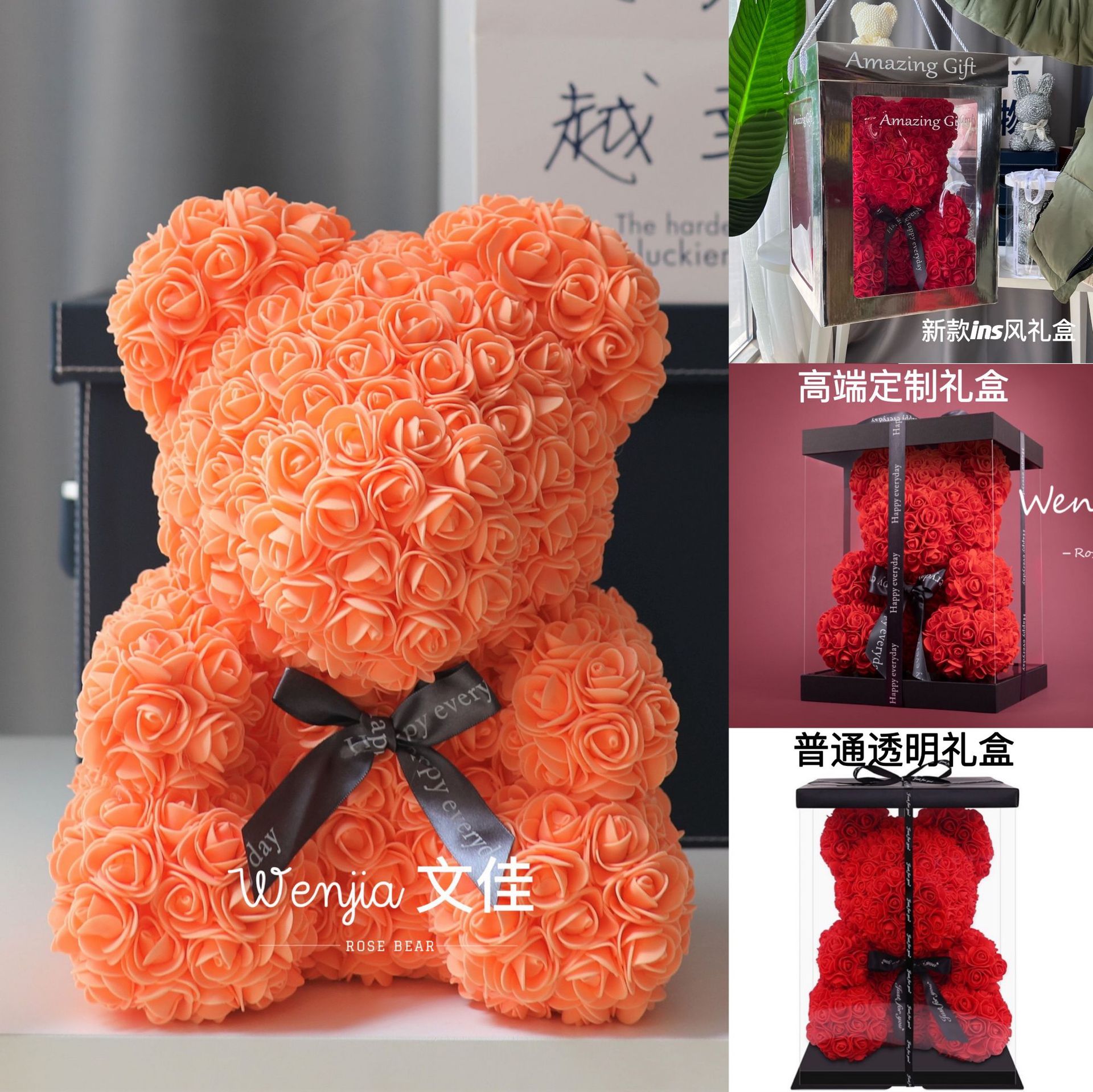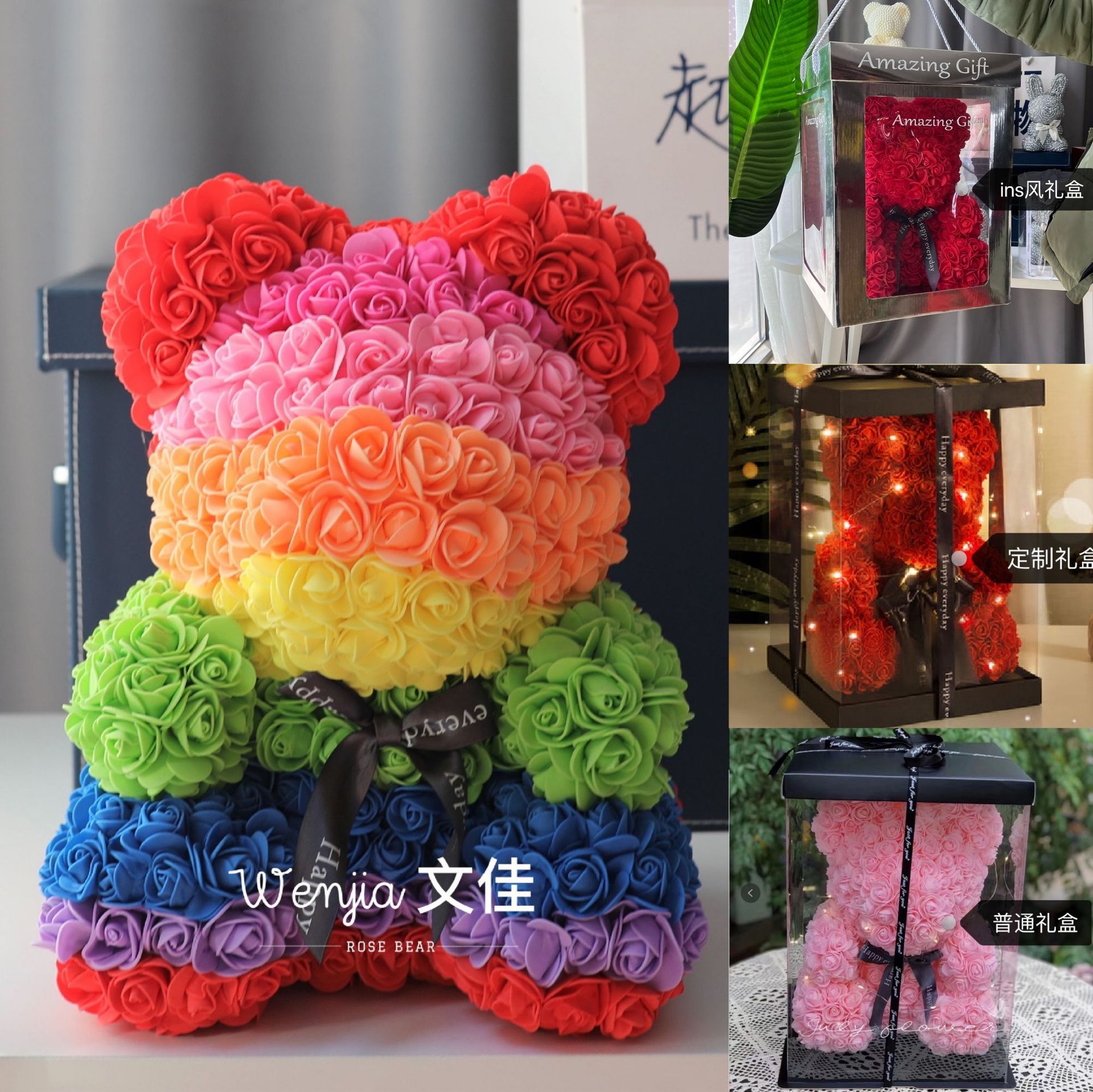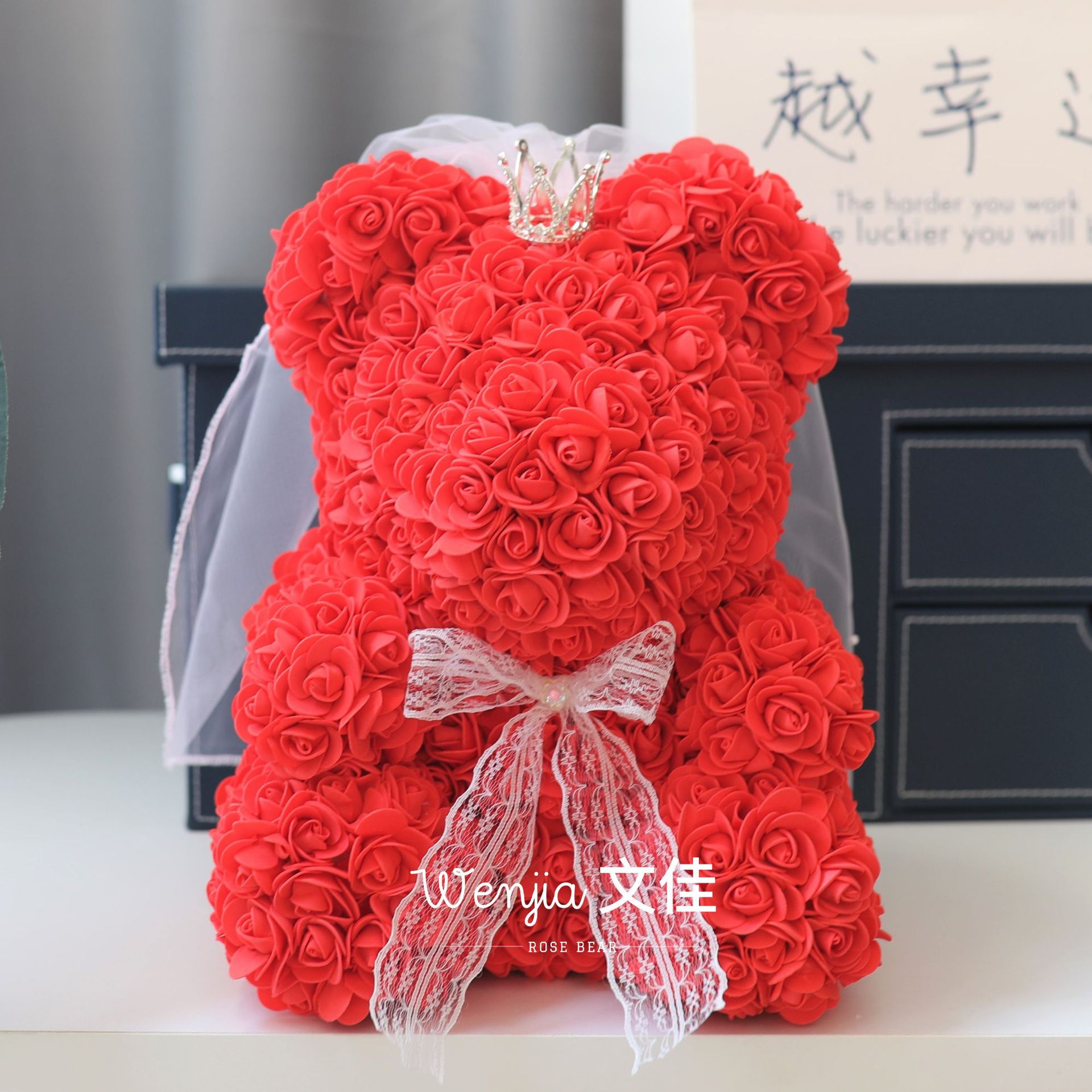 永生花玫瑰熊520情人节礼物送女友创意仿真花七夕礼物玫瑰花熊