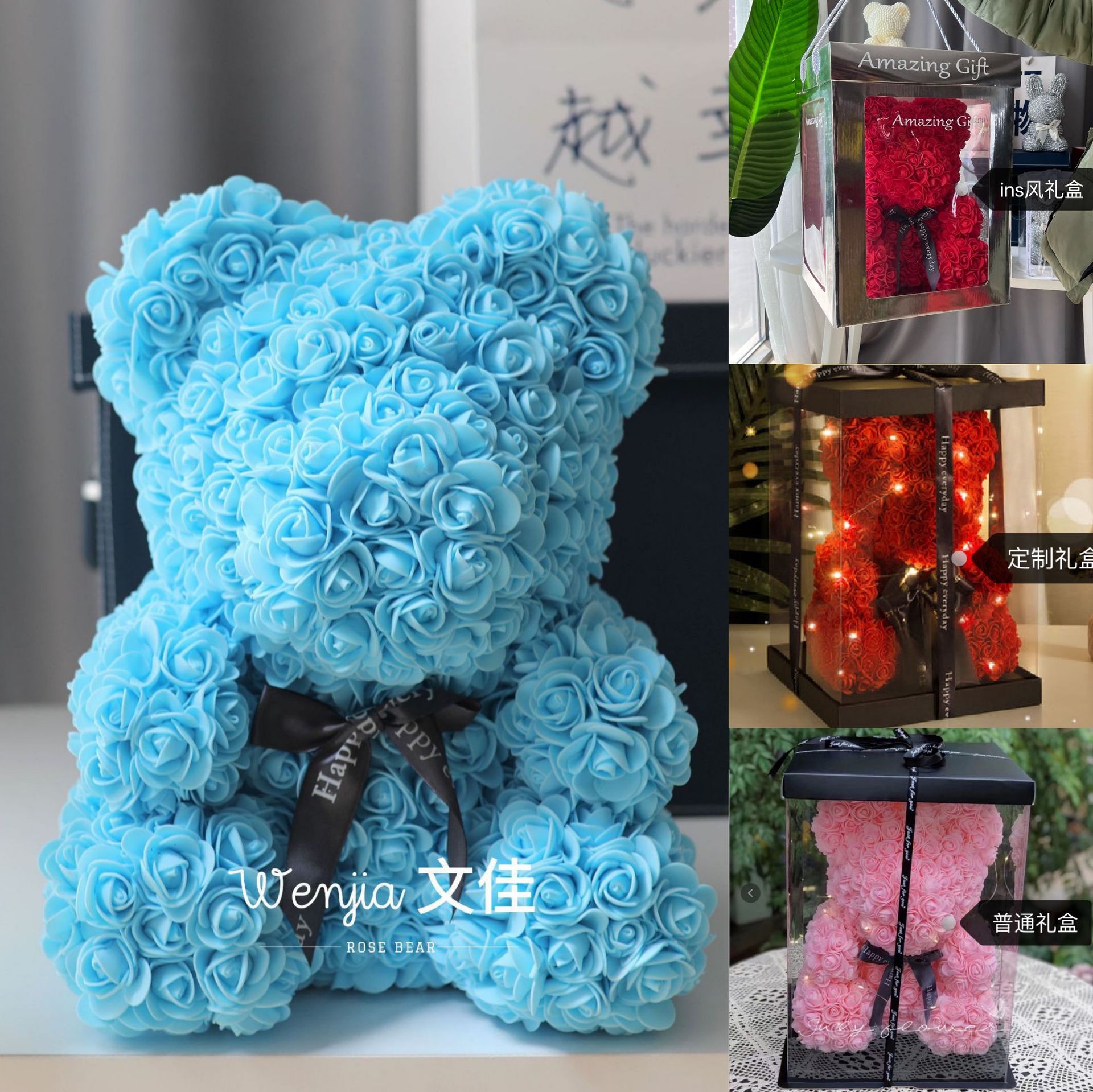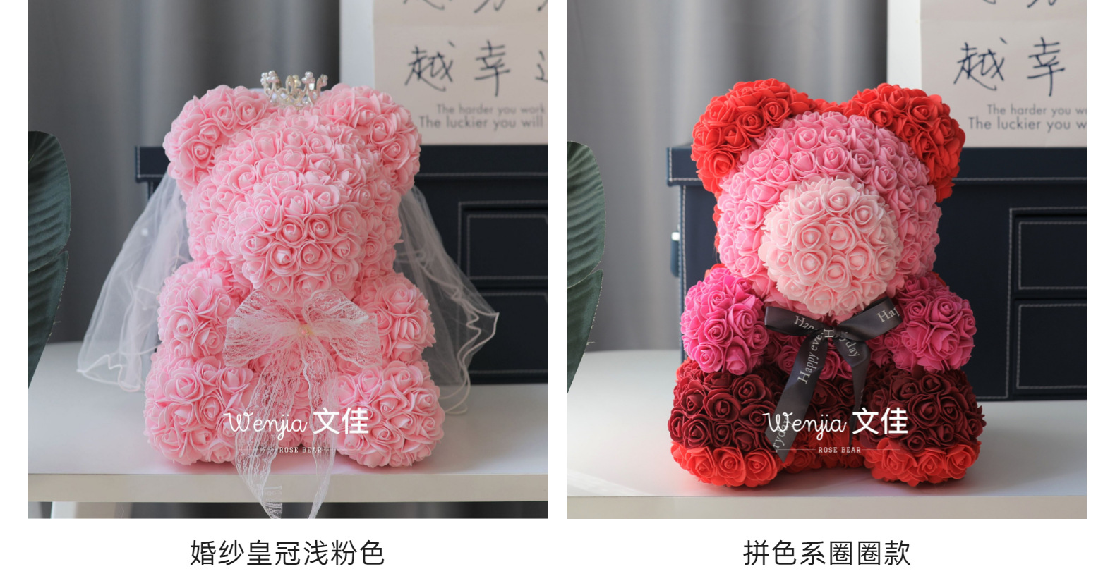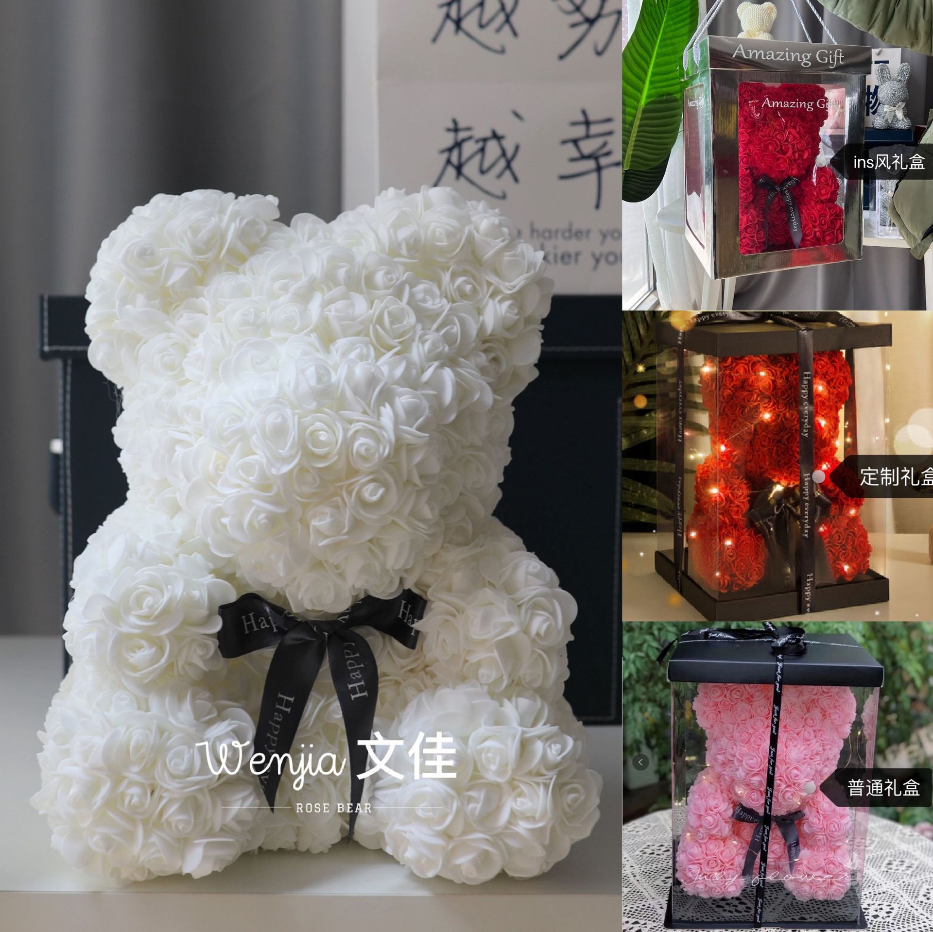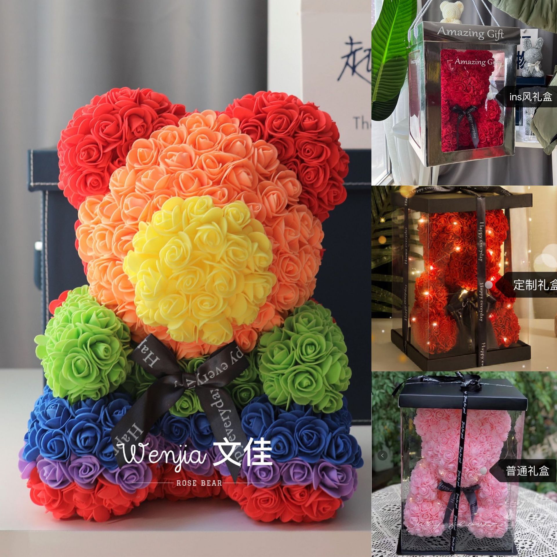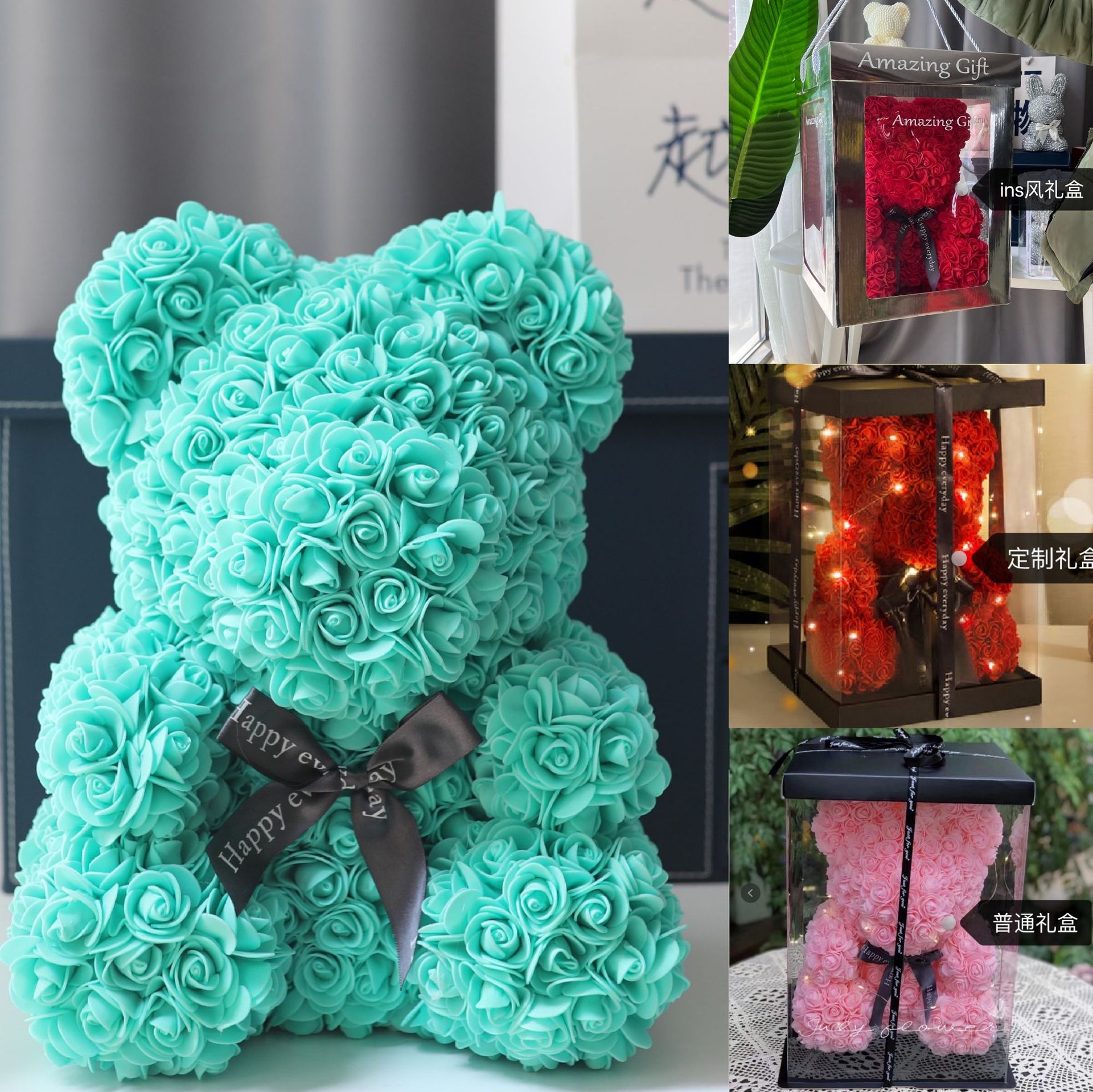 永生花玫瑰熊520情人节礼物送女友创意仿真花七夕礼物玫瑰花熊