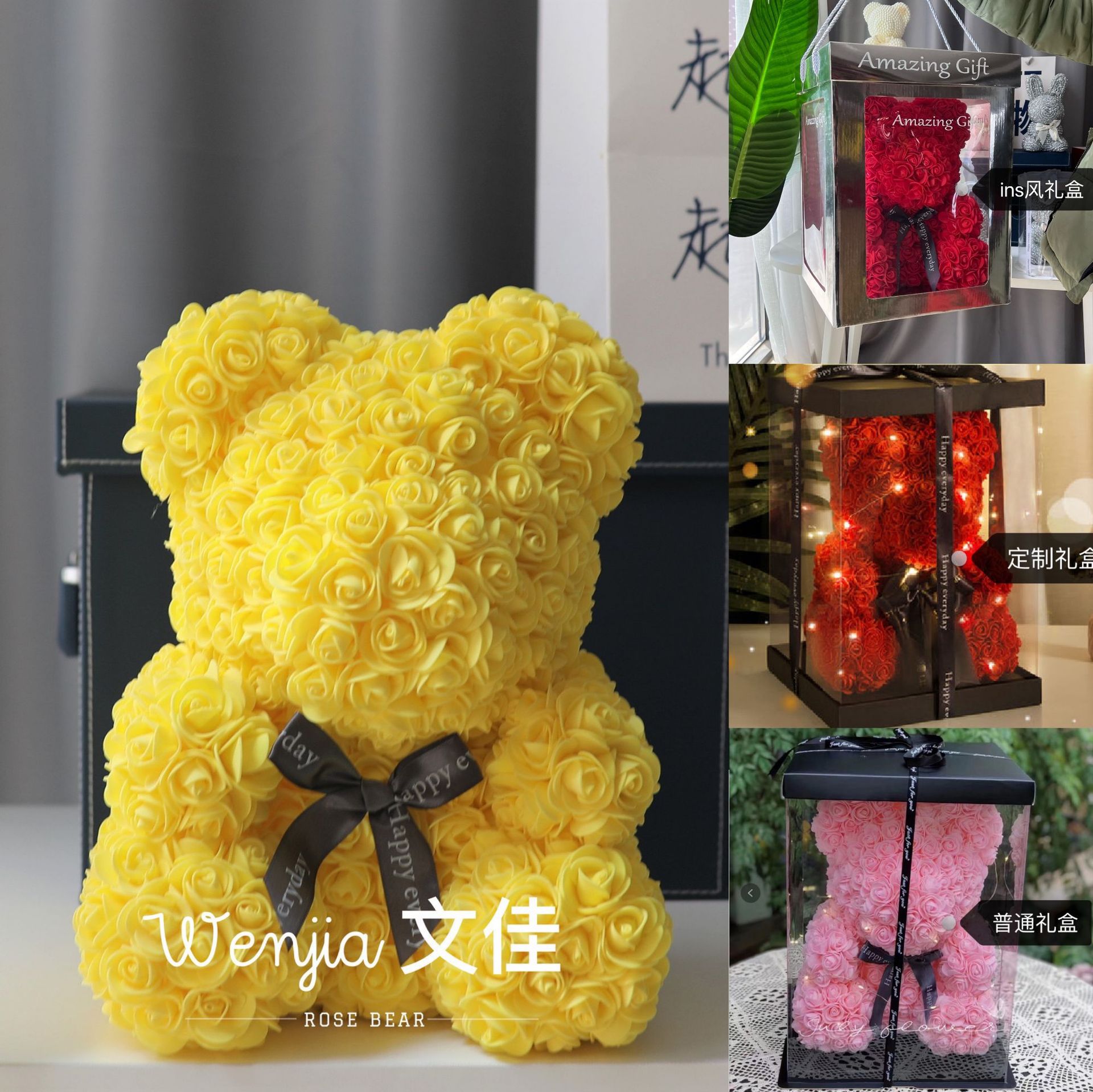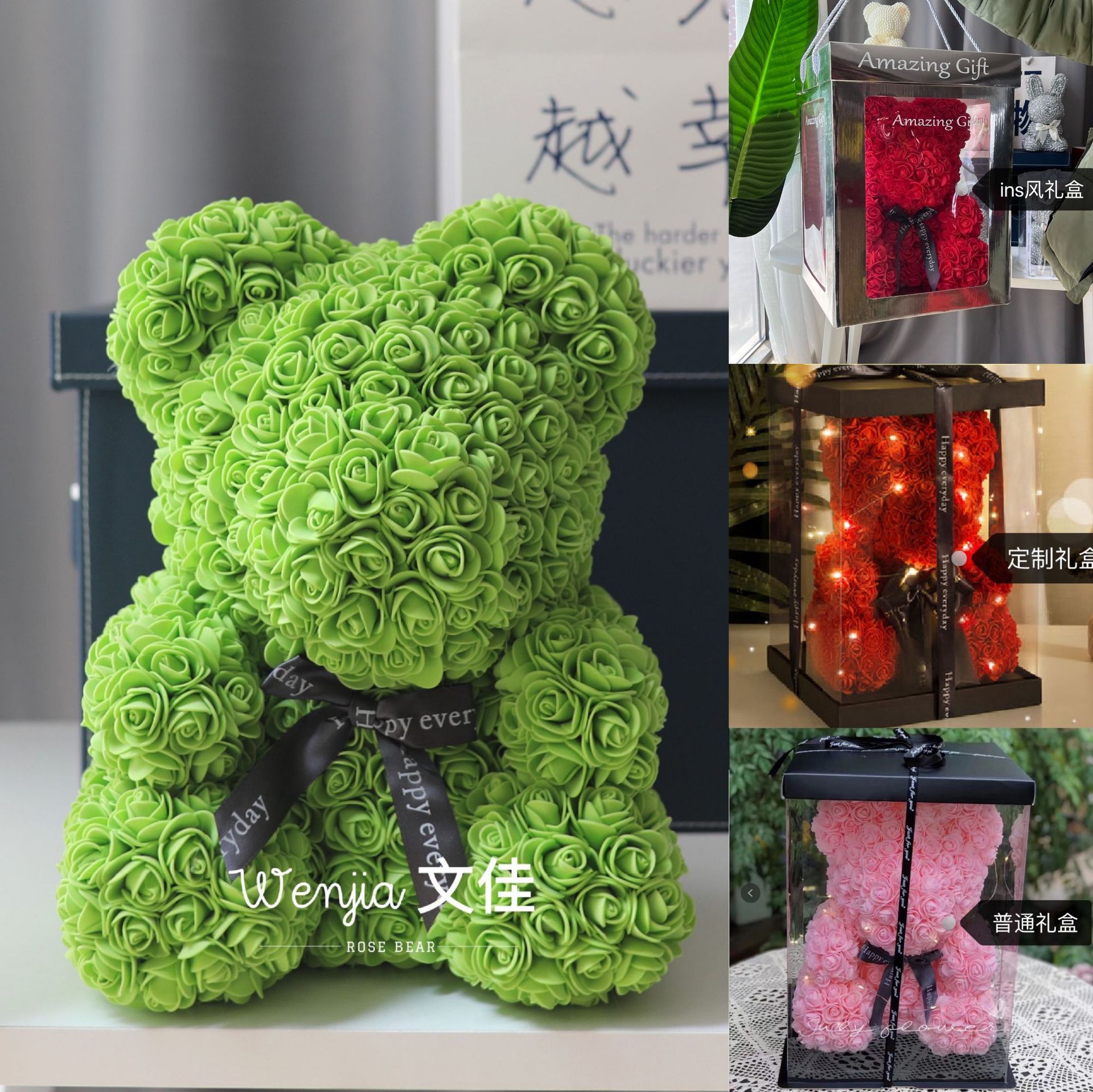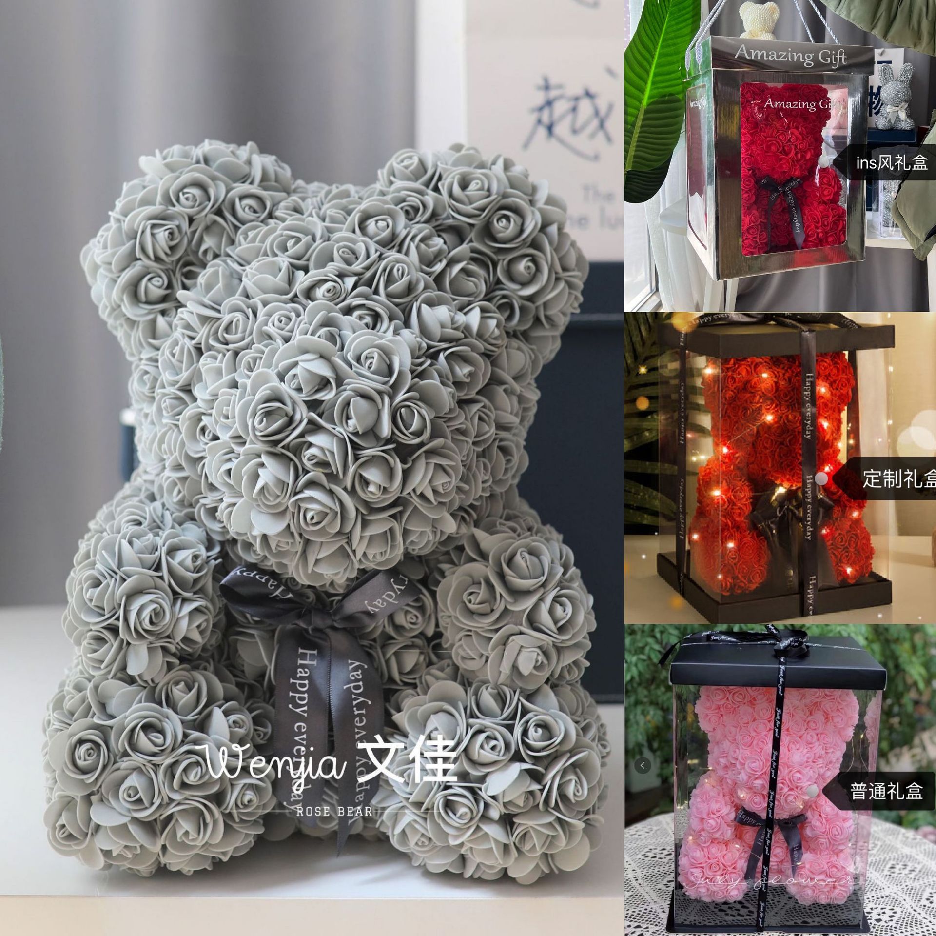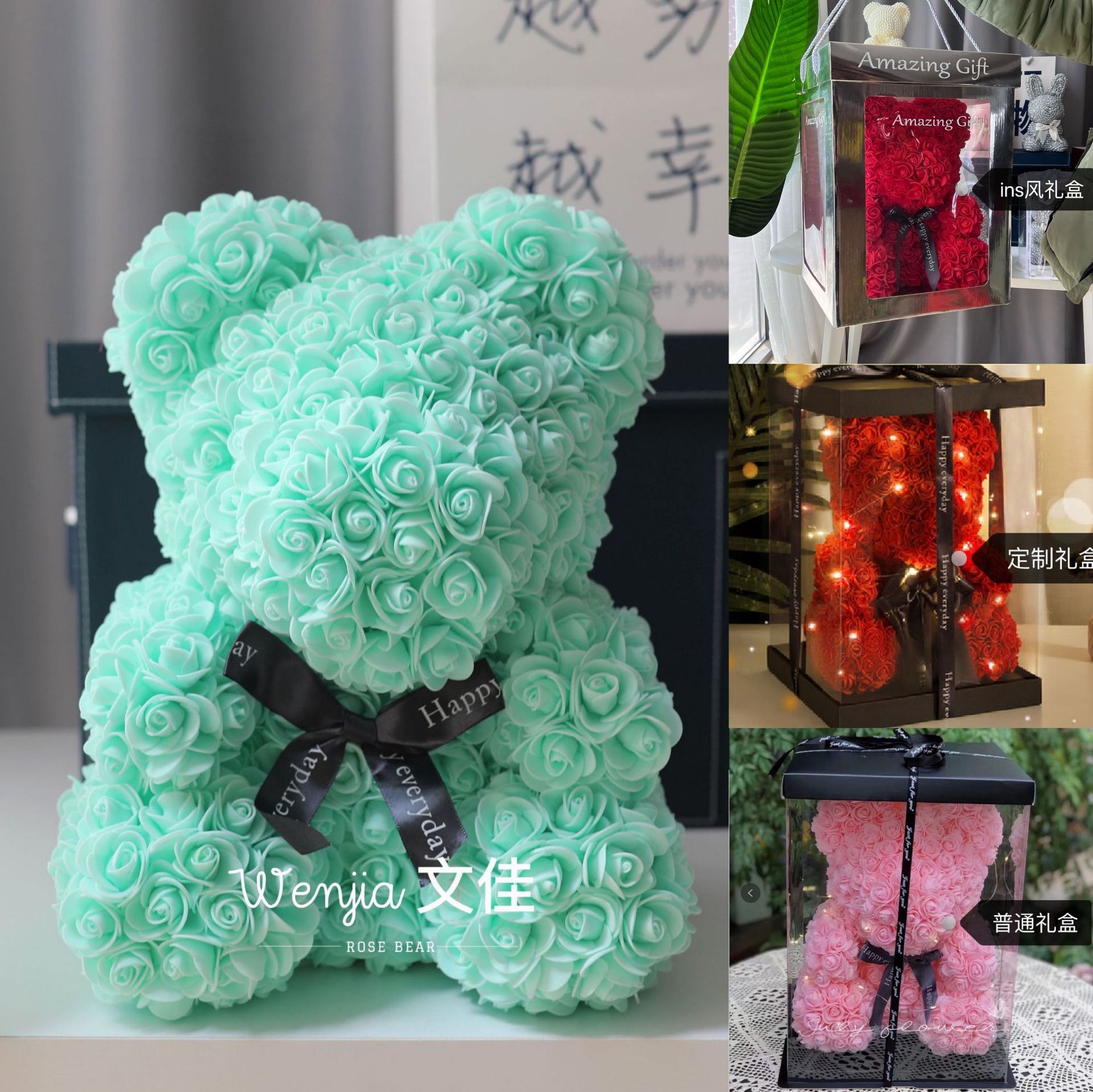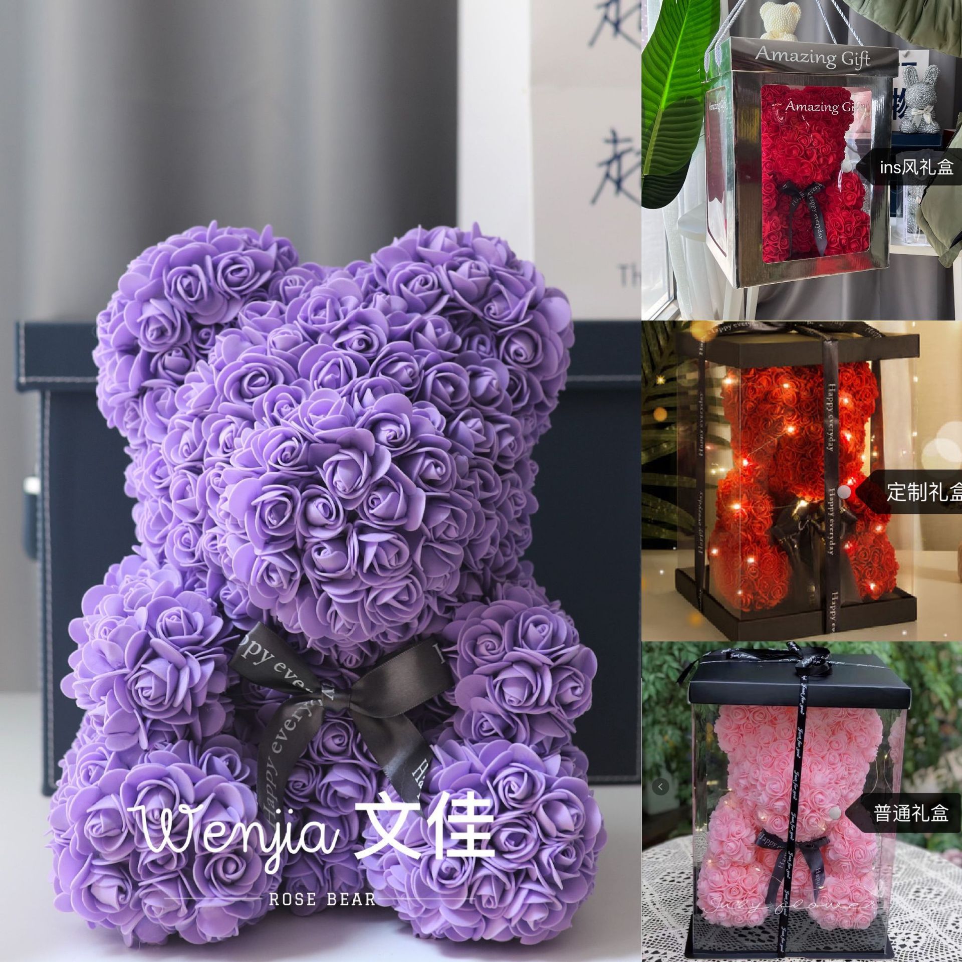 永生花玫瑰熊520情人节礼物送女友创意仿真花七夕礼物玫瑰花熊