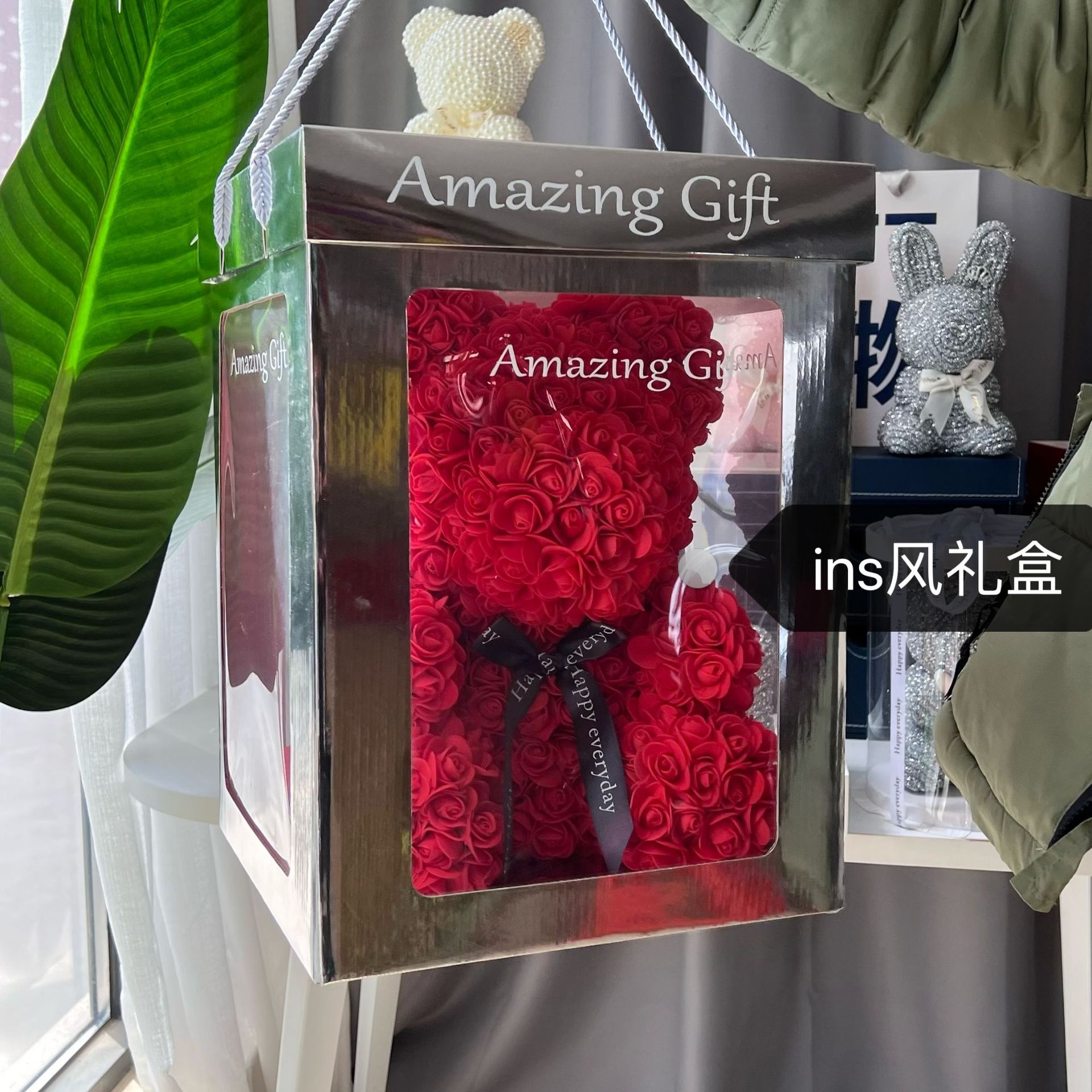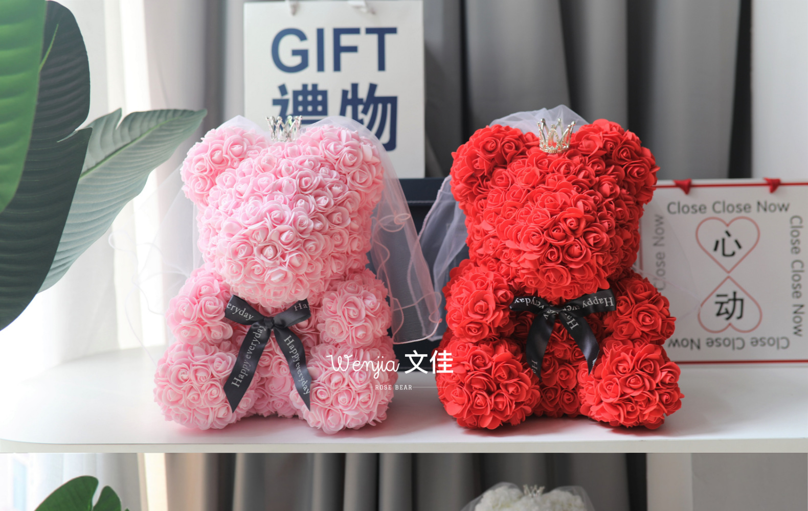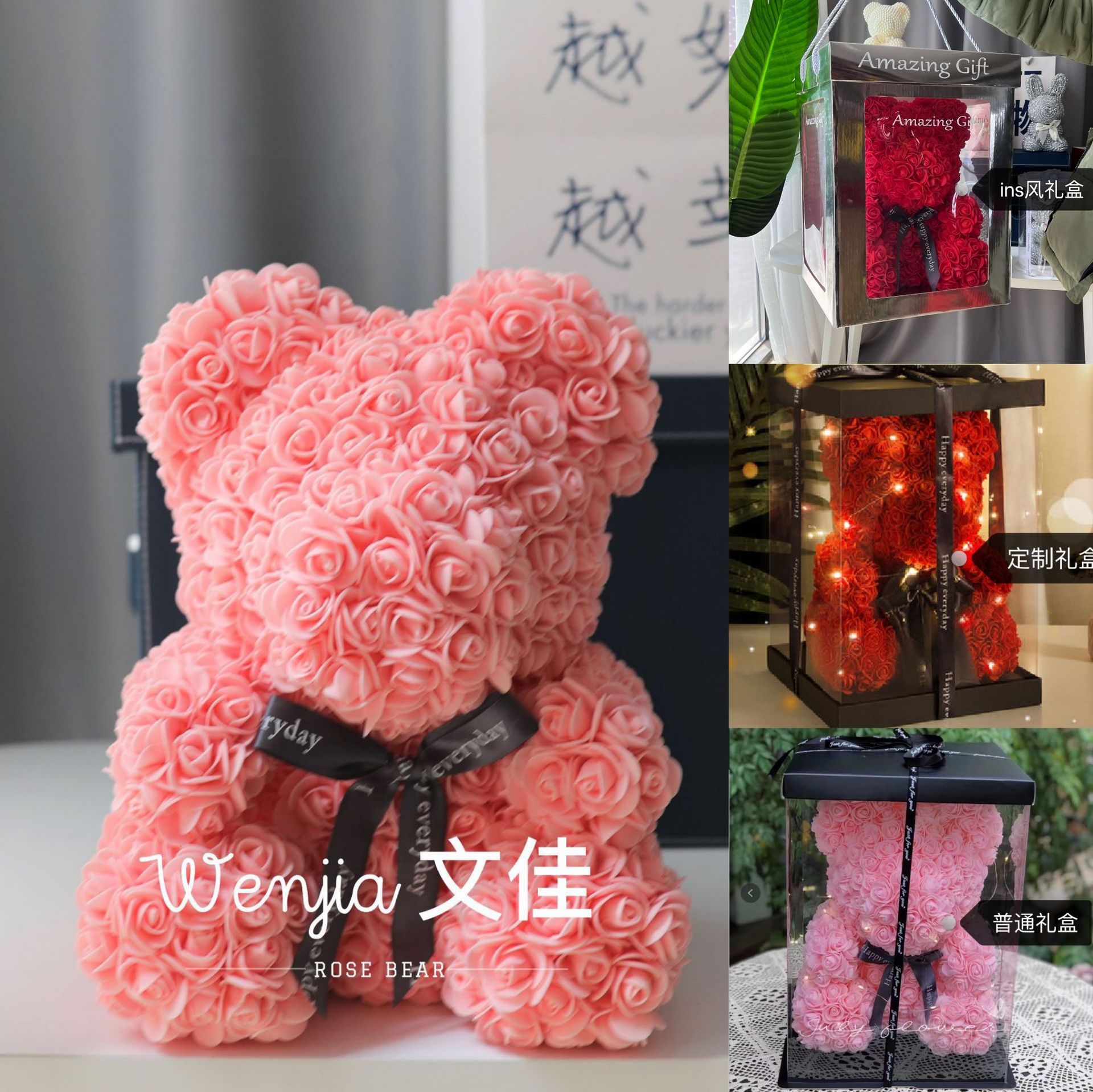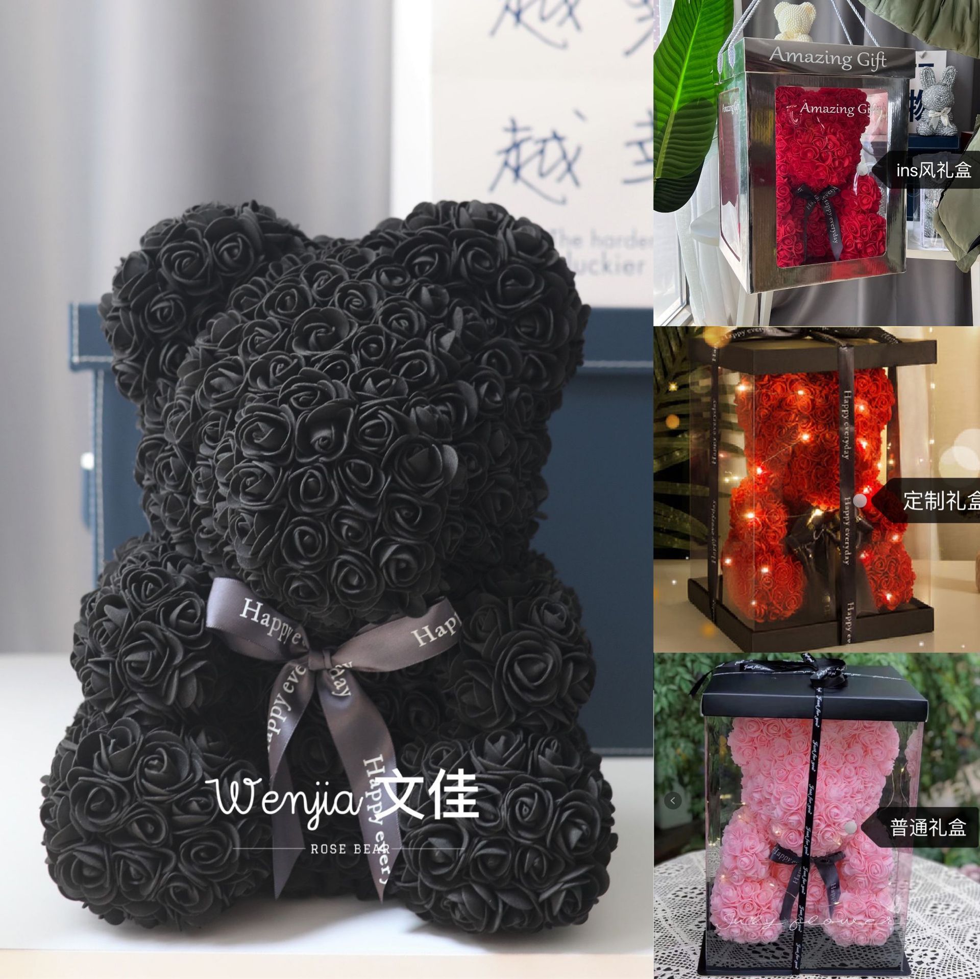 永生花玫瑰熊520情人节礼物送女友创意仿真花七夕礼物玫瑰花熊