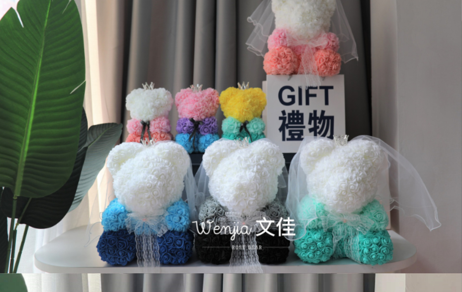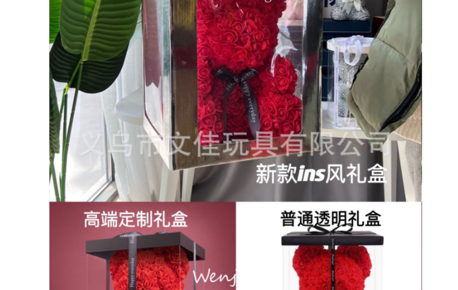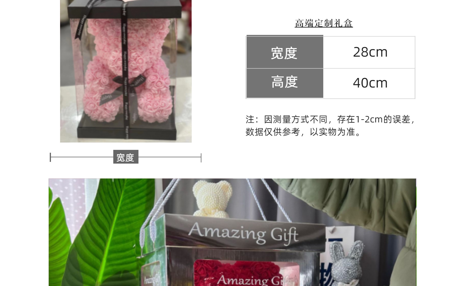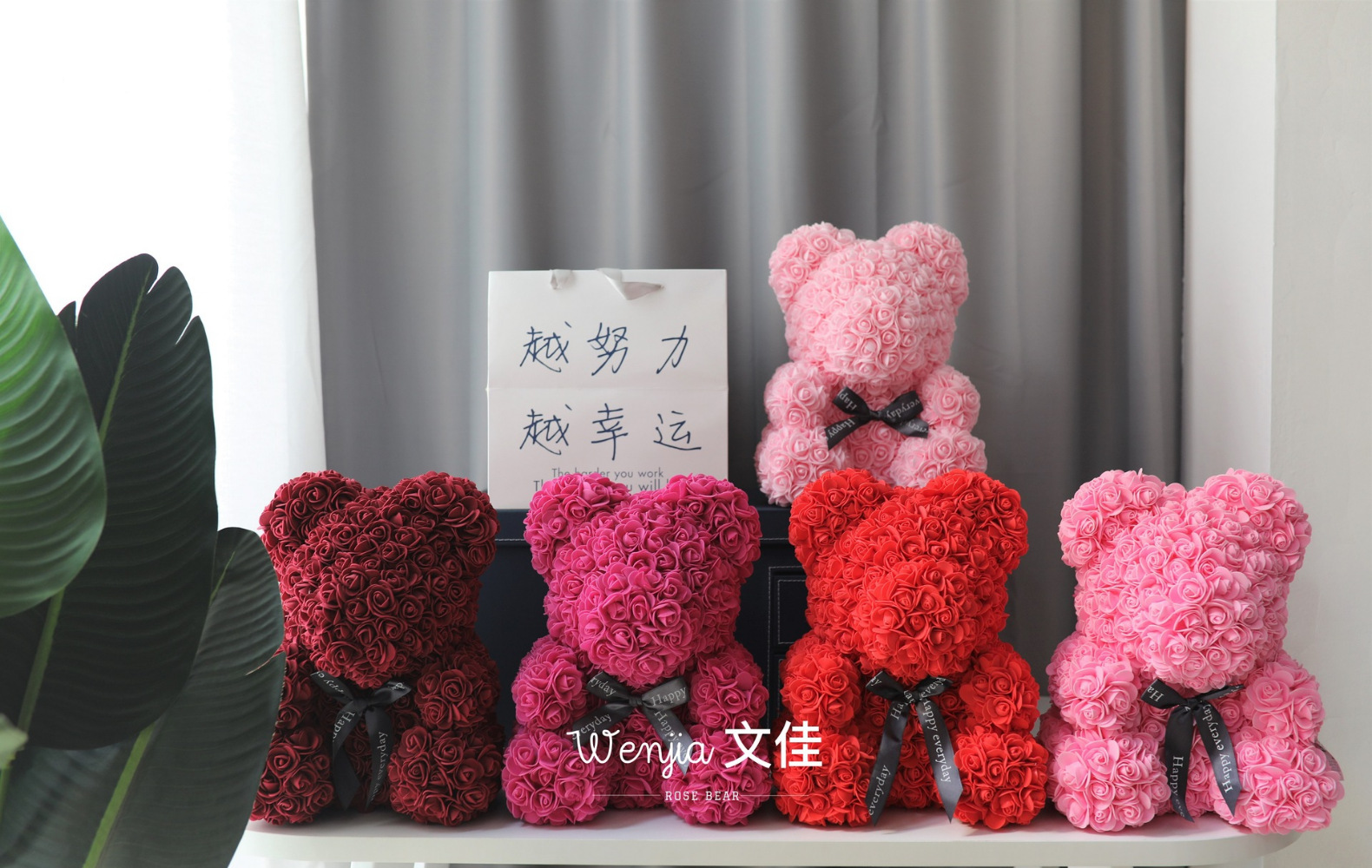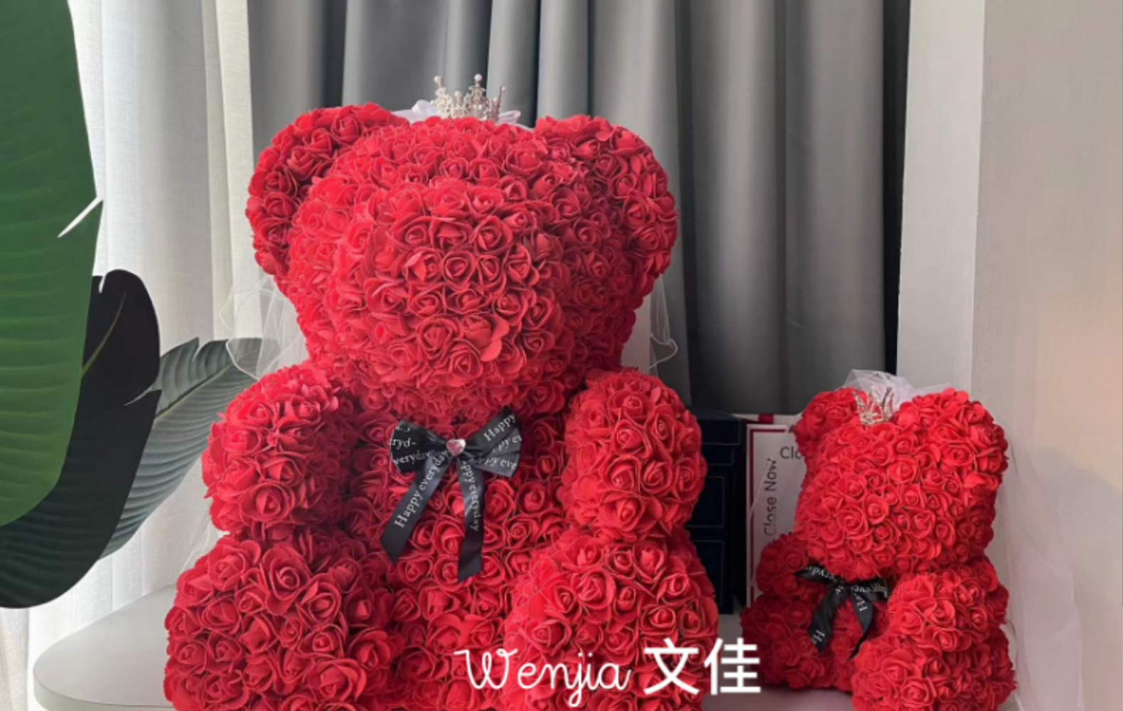 永生花玫瑰熊520情人节礼物送女友创意仿真花七夕礼物玫瑰花熊
