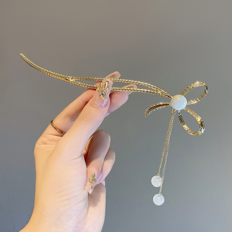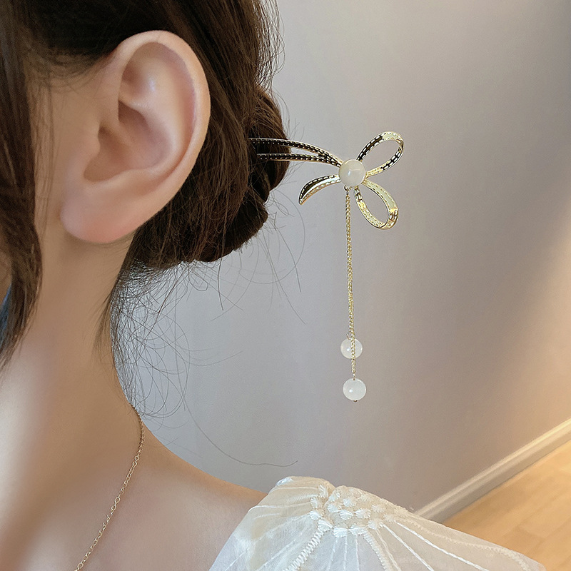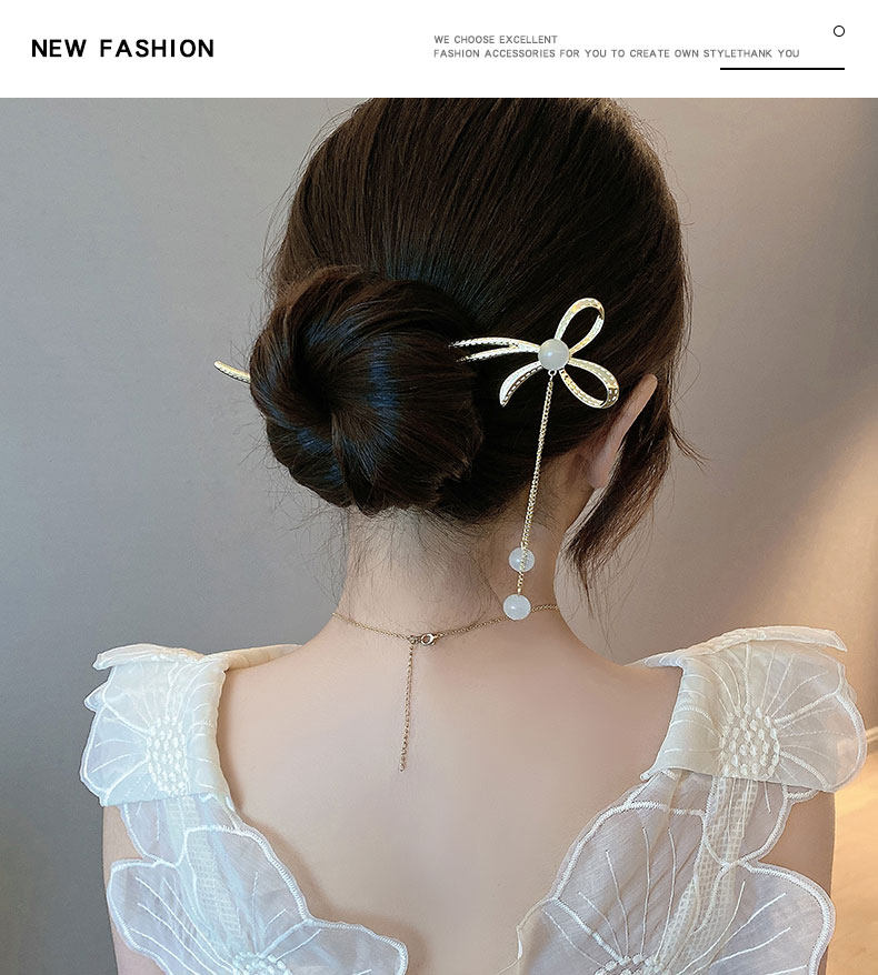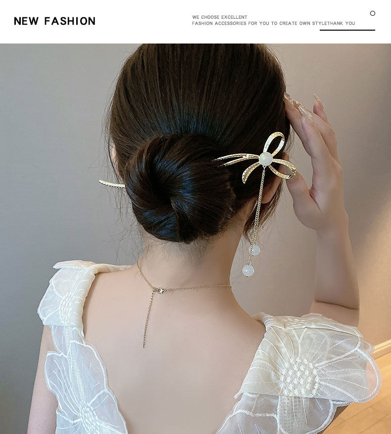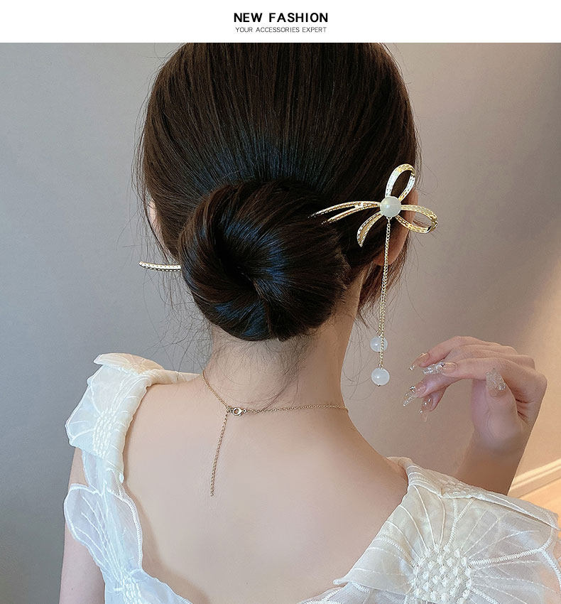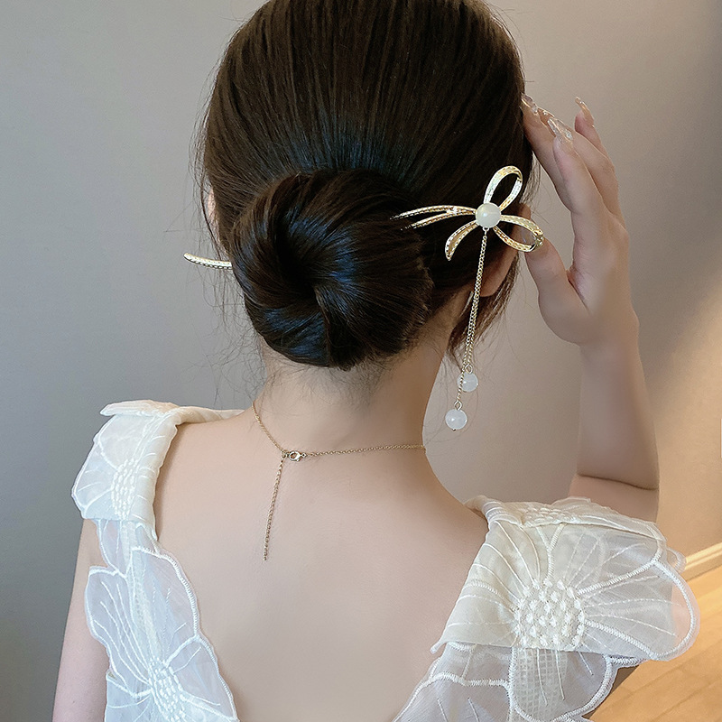 蝴蝶结珍珠发簪盘发簪子女夏季丸子头发饰新款