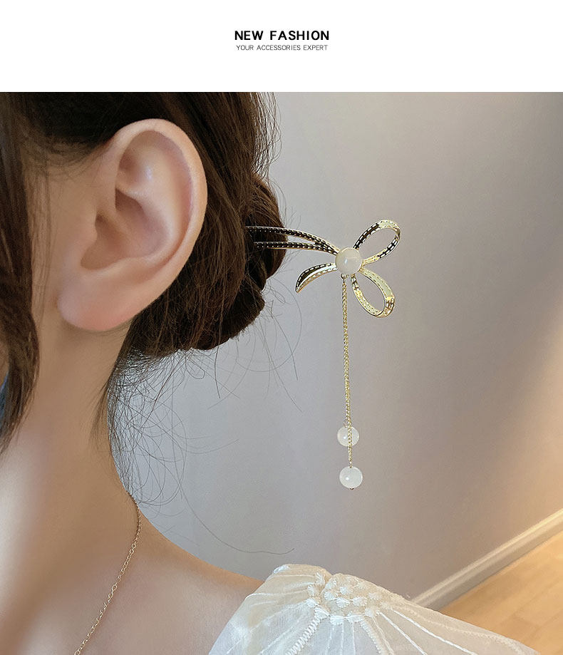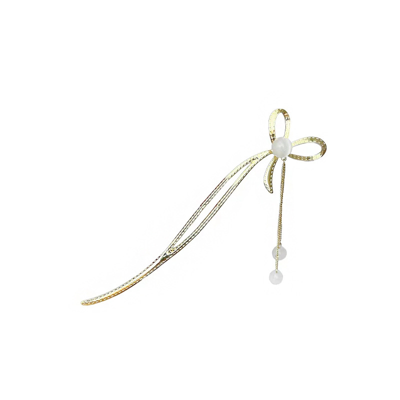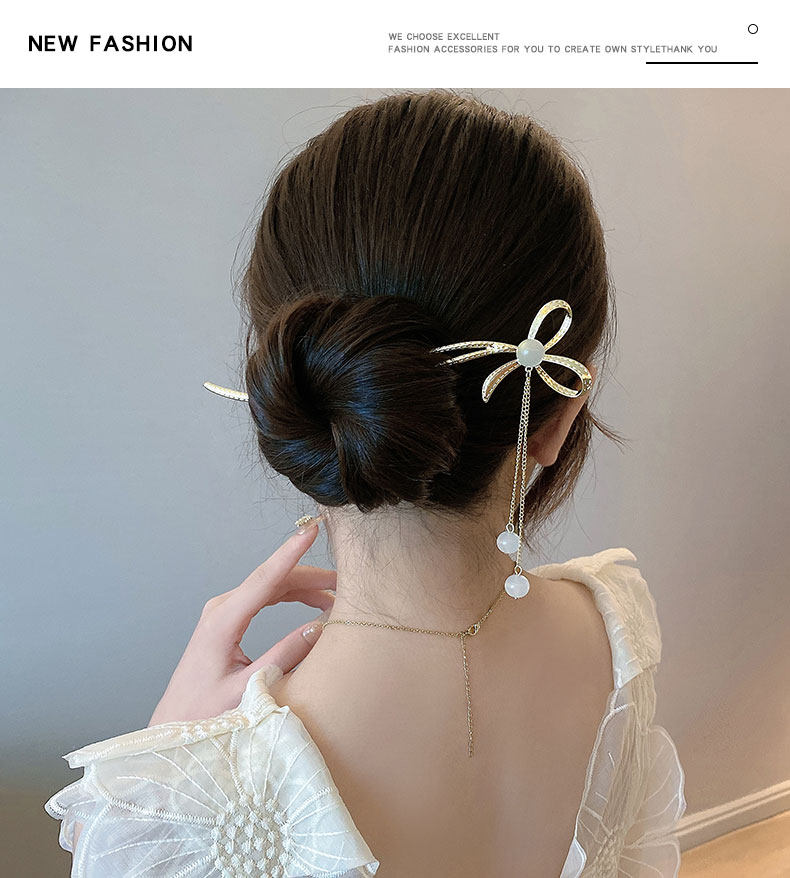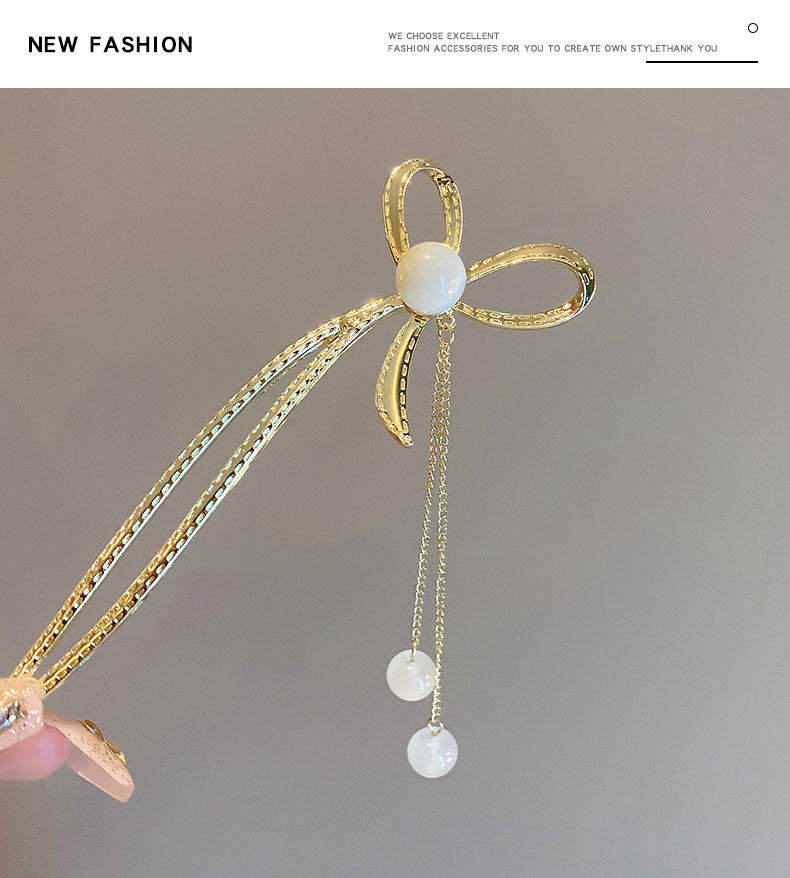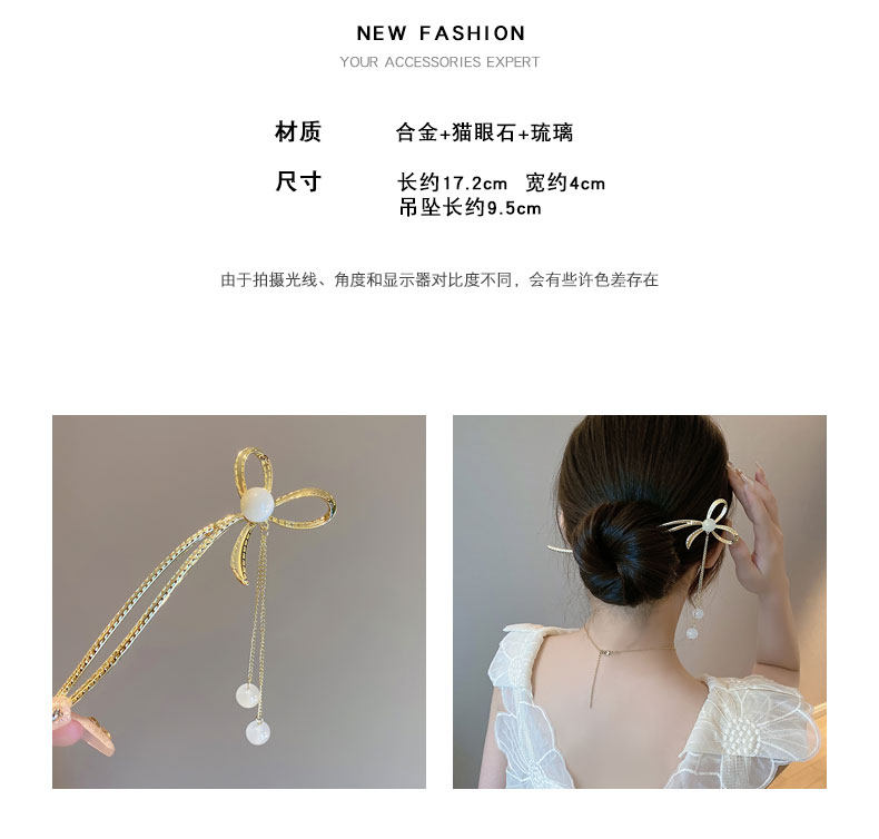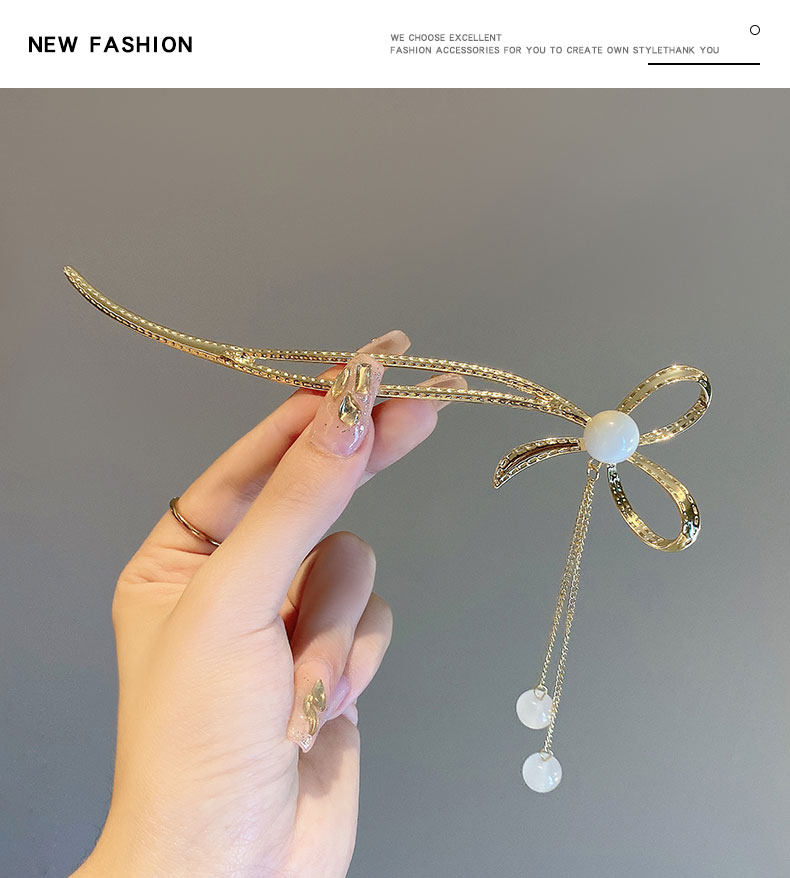 蝴蝶结珍珠发簪盘发簪子女夏季丸子头发饰新款