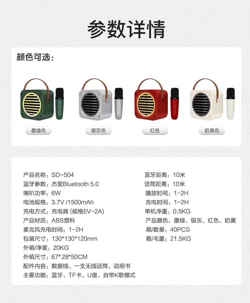 SD504蓝牙音箱MINI单麦克风手提户外便携手机无线K歌宝大音量音响