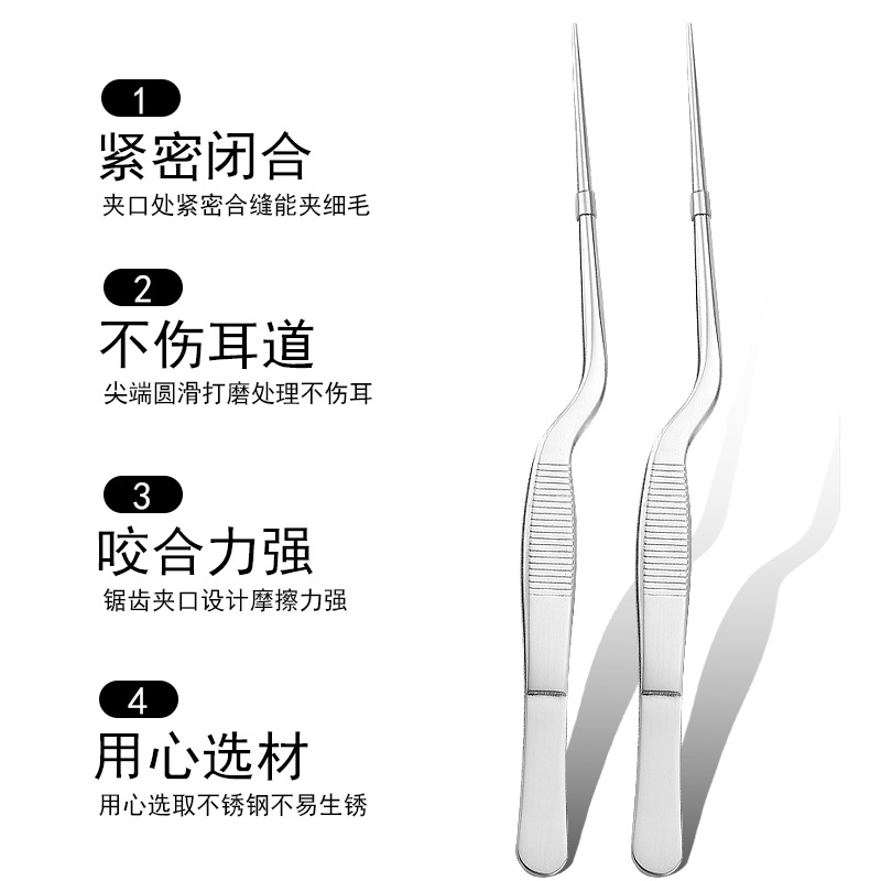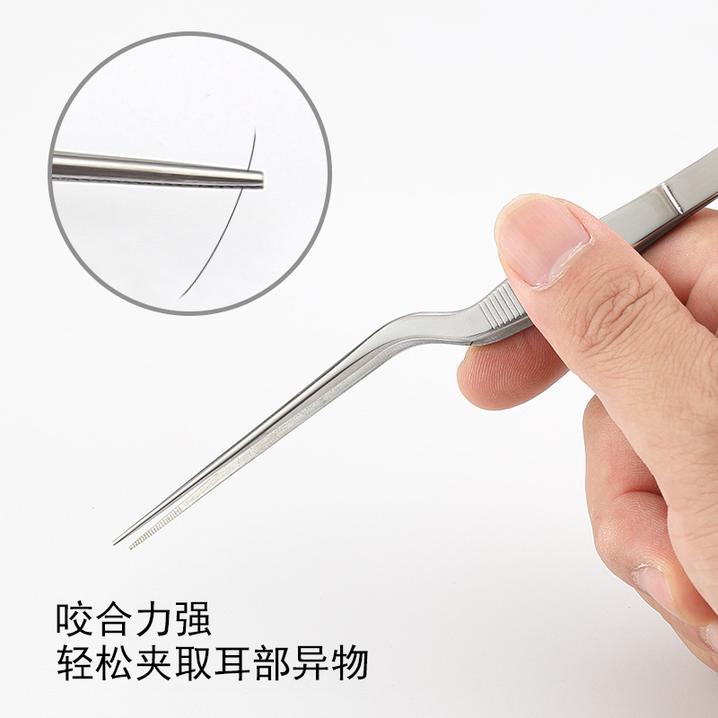 现货不锈钢枪状尖头镊子16.5cm采耳工具夹子弯头细长掏耳清洁镊子