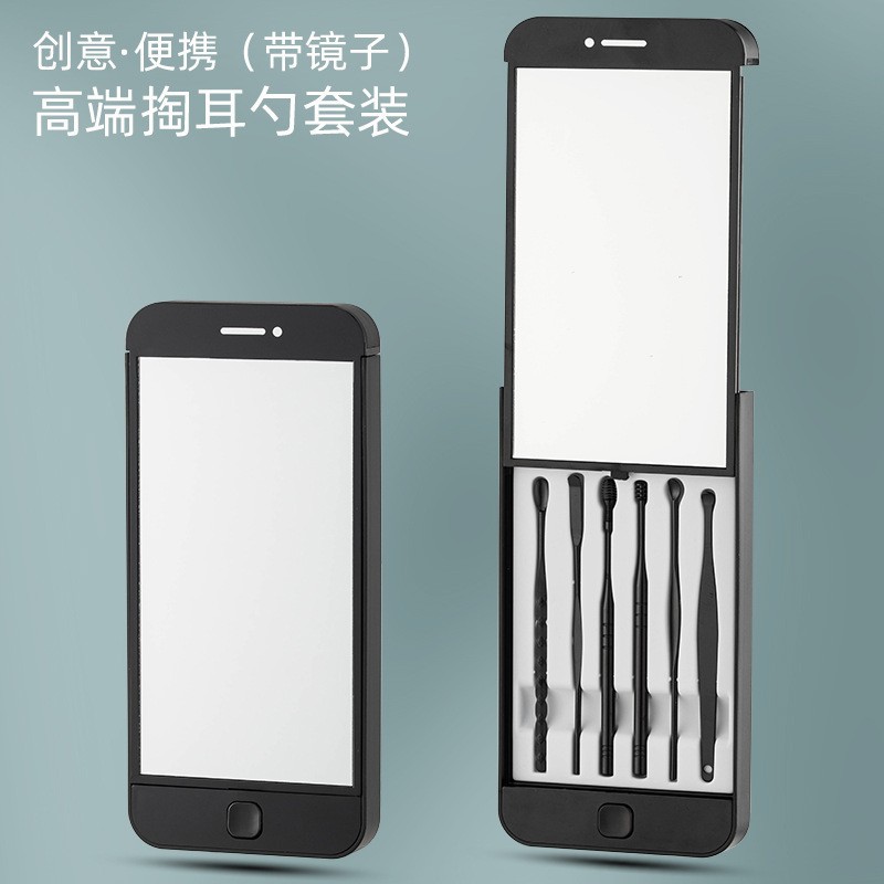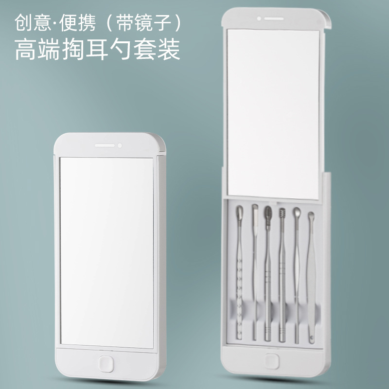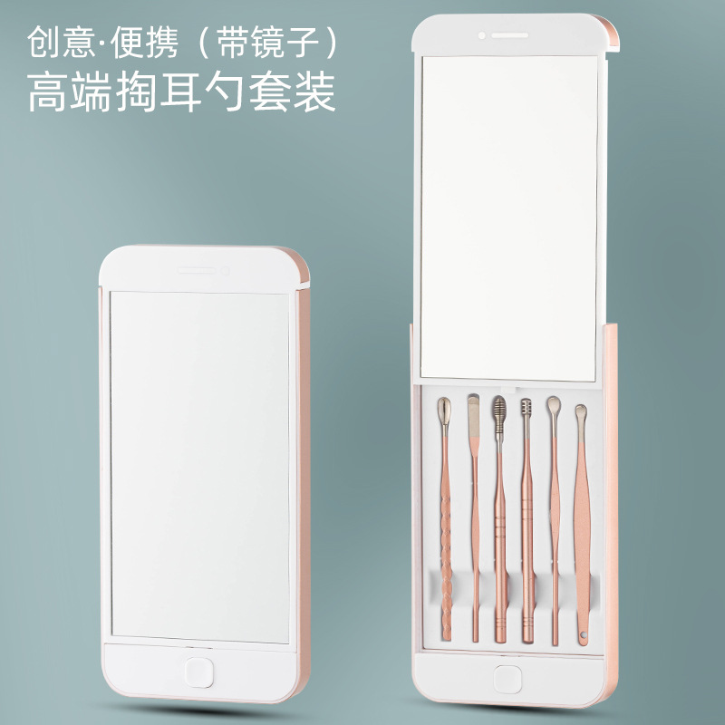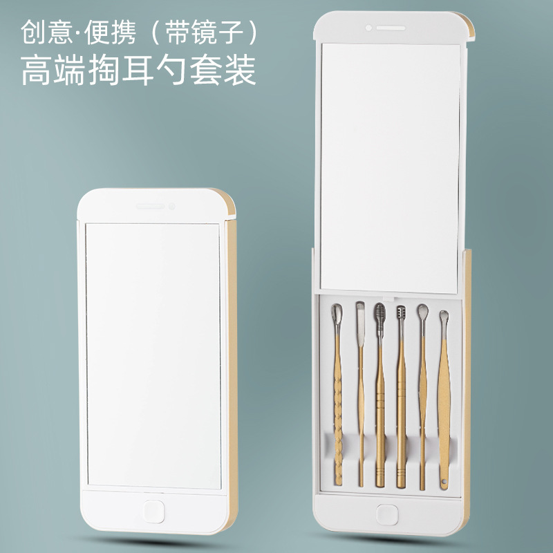 现货不锈钢掏耳勺双头螺旋挖耳勺耳朵清洁器掏耳采耳工具6件套装