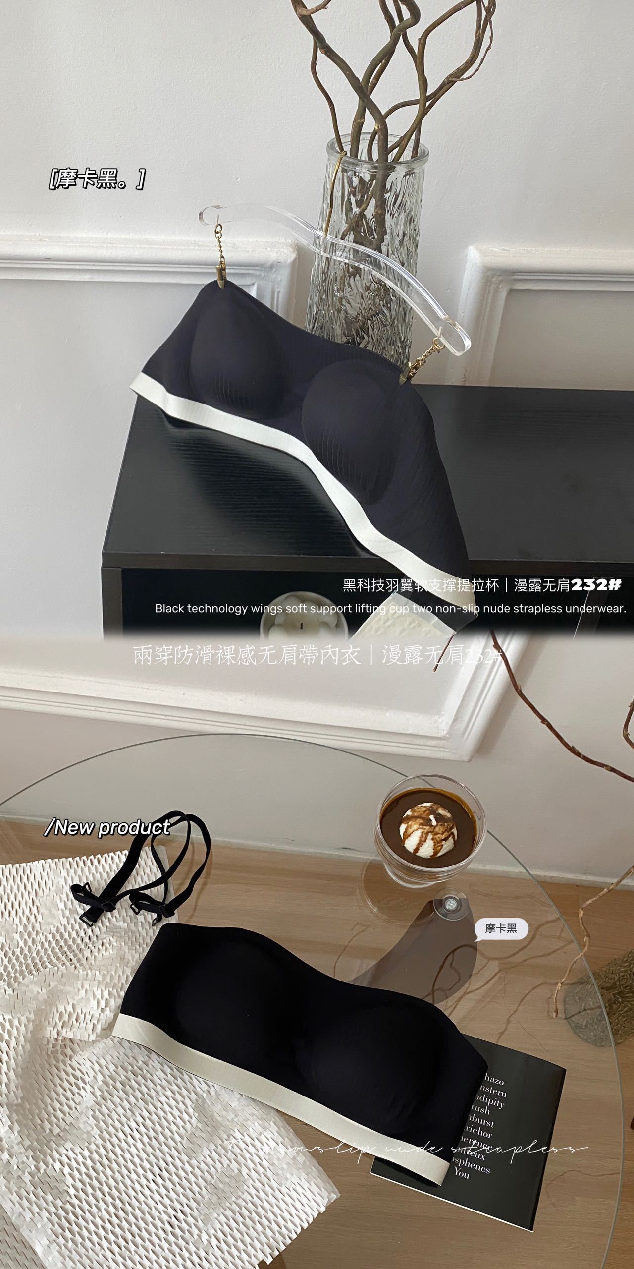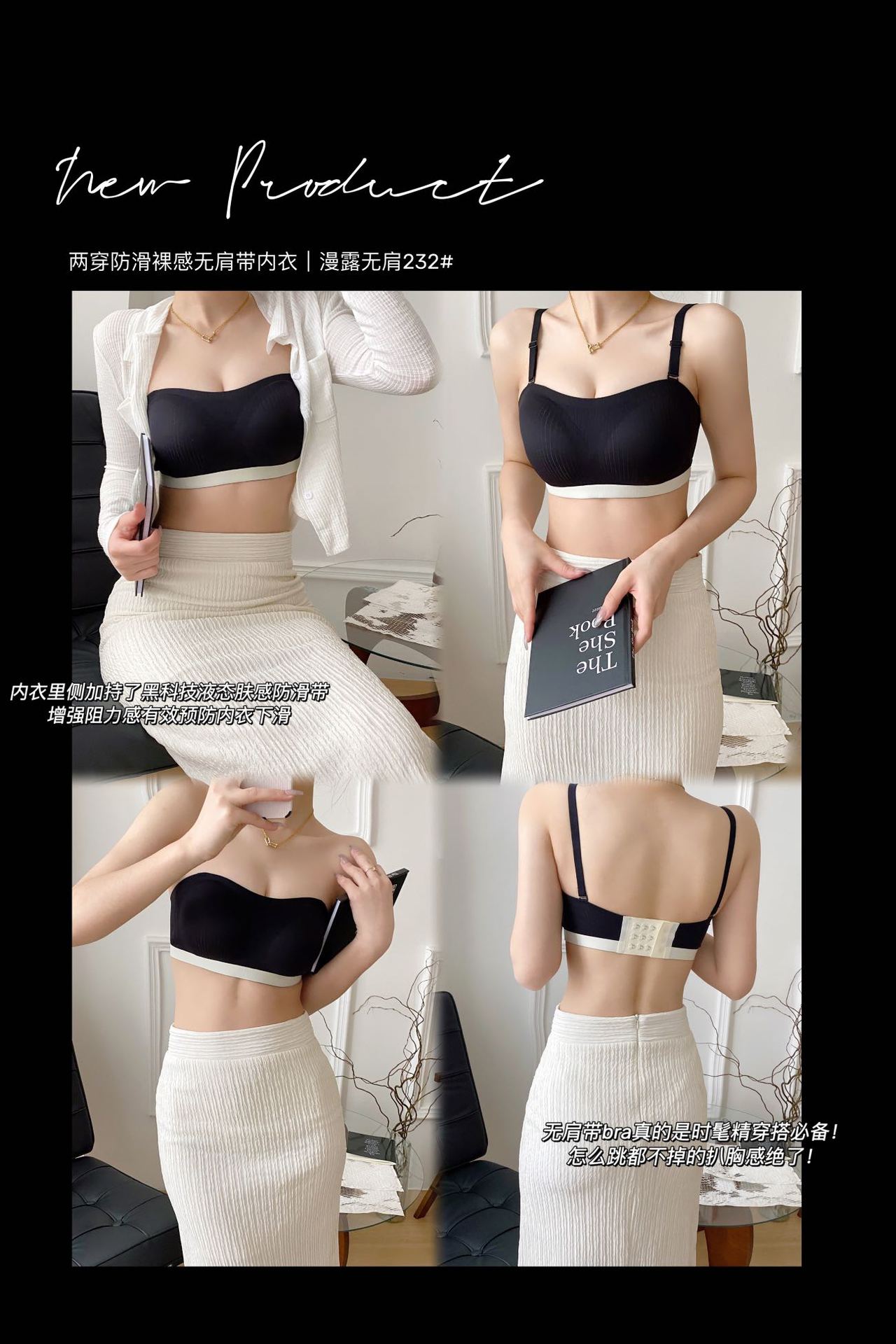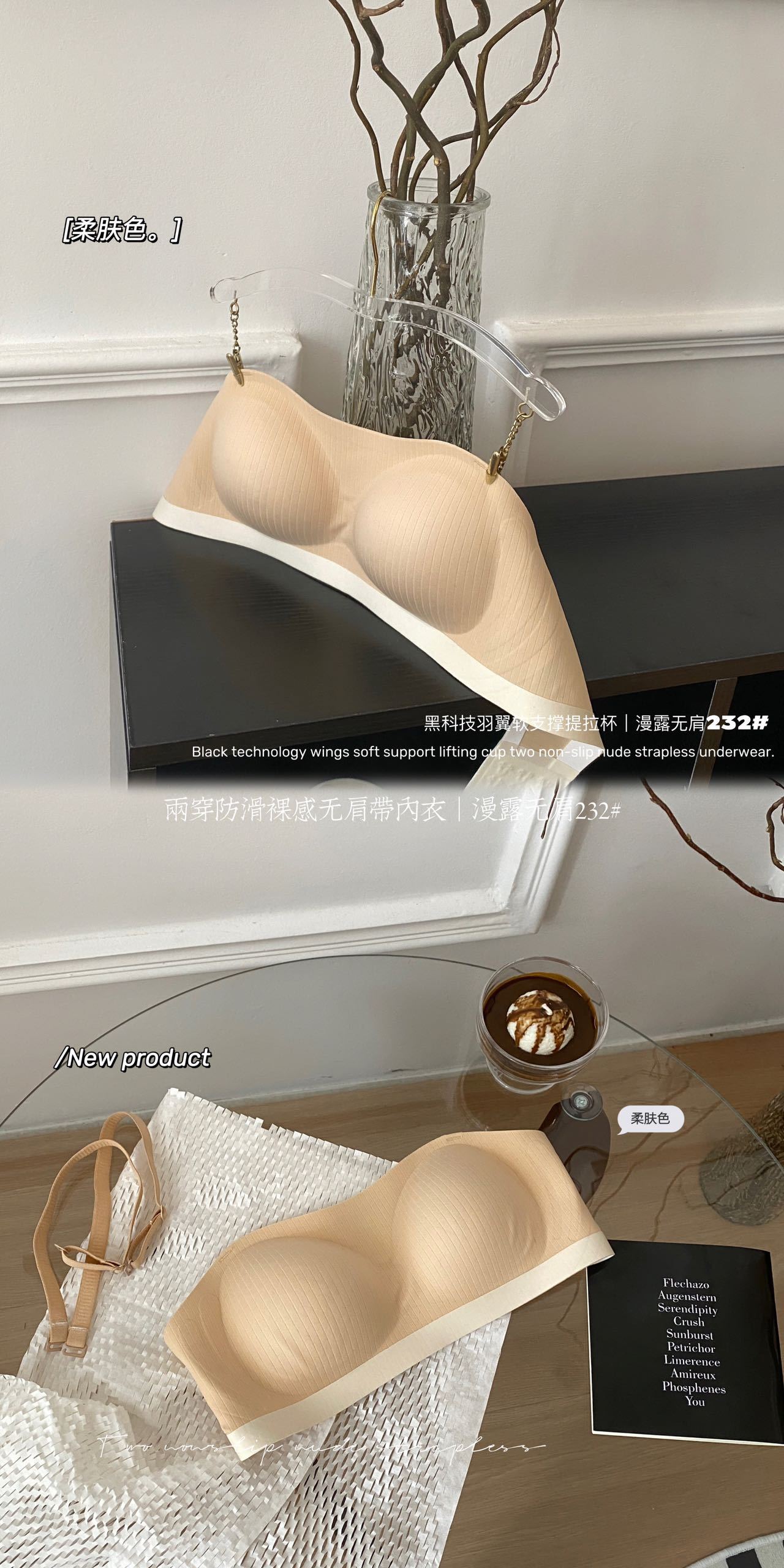 W8097辣妹肌理软支撑防滑无肩带内衣无痕防走光固定杯裹胸文胸爆