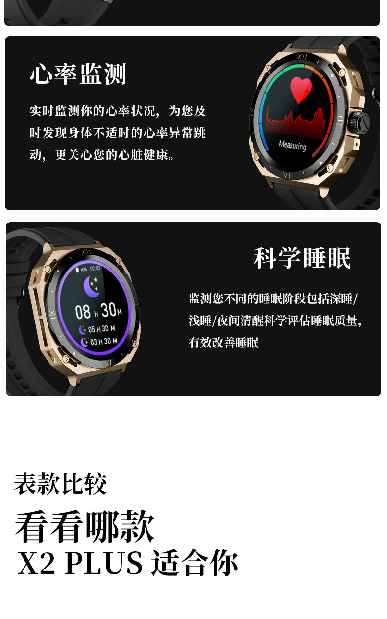X2plus运动智能手表血压心率监测手环防水蓝牙通话手表跨境货源