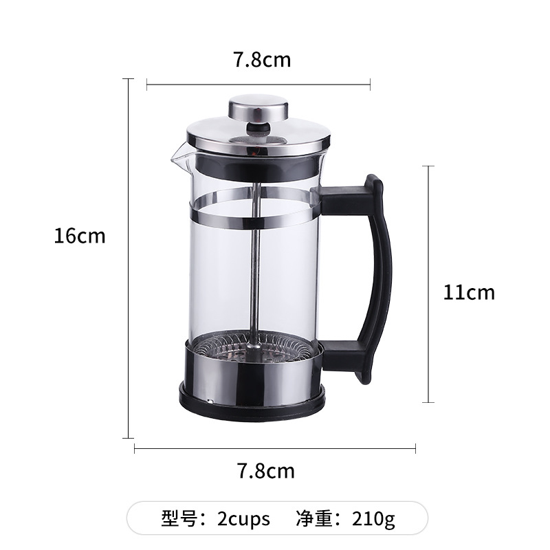 跨境爆款 新款不锈钢法压壶 按压式冲茶器 耐热高鹏硅玻璃手冲壶