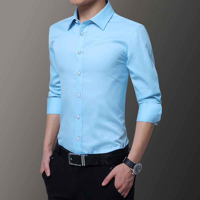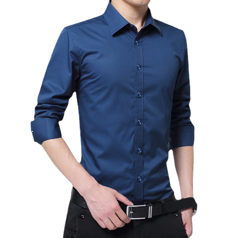 新款男装长袖衬衫免烫修身韩版商白衬衣务休闲纯色帅气打底衫衬潮