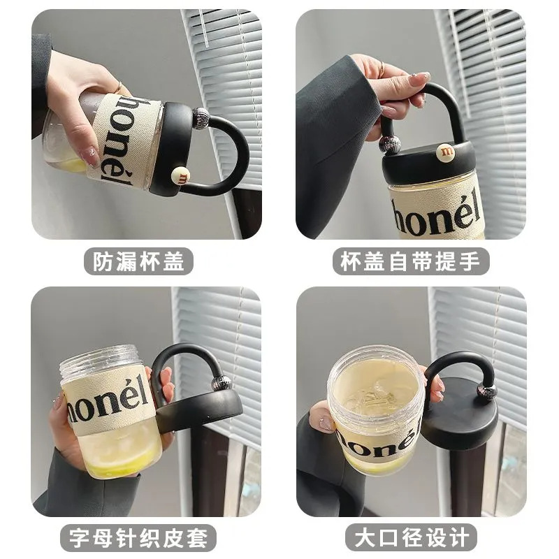 小香风女生玻璃杯简约便携手提水杯防漏随身高颜值少女杯子批发