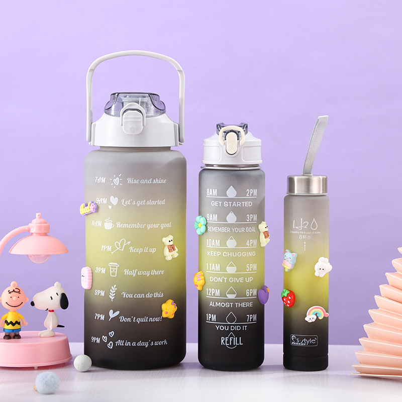 三色渐变杯子外贸现货跨境专供南美骑行水瓶户外磨砂彩虹运动水杯