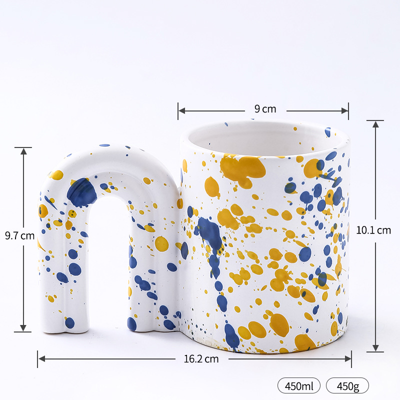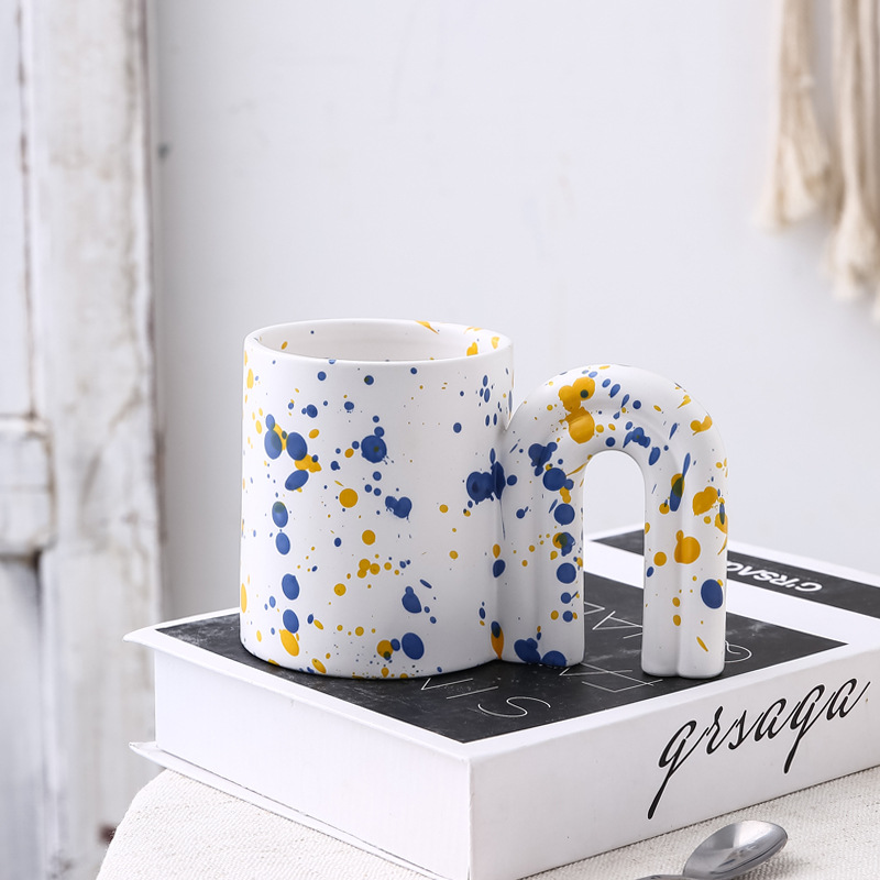 韩国ins情侣马克杯陶瓷牛奶杯创意泼墨杯手工礼品个性门把水杯