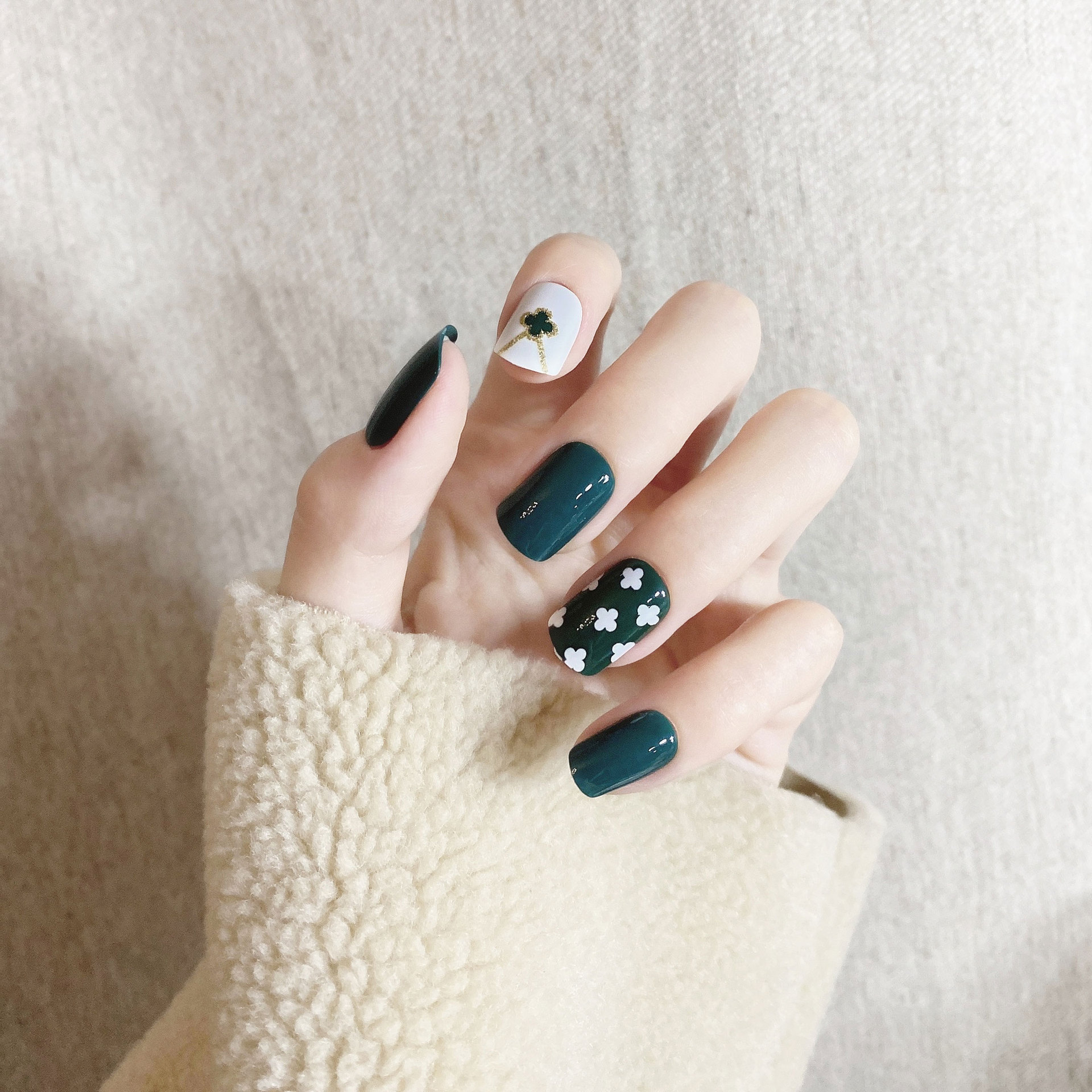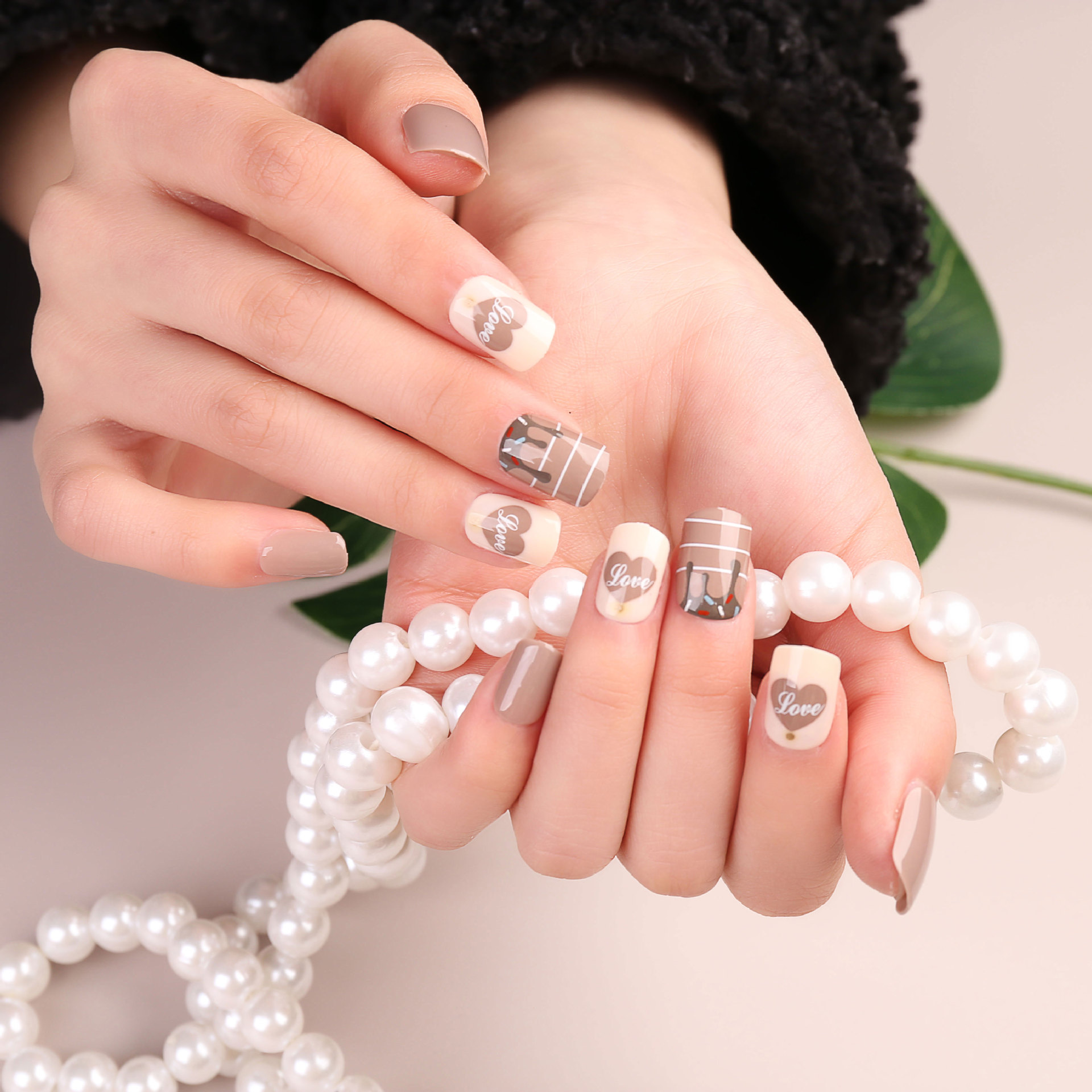 外贸专供手工高级长岛冰茶美甲短款方头假指甲贴片工厂批发定制